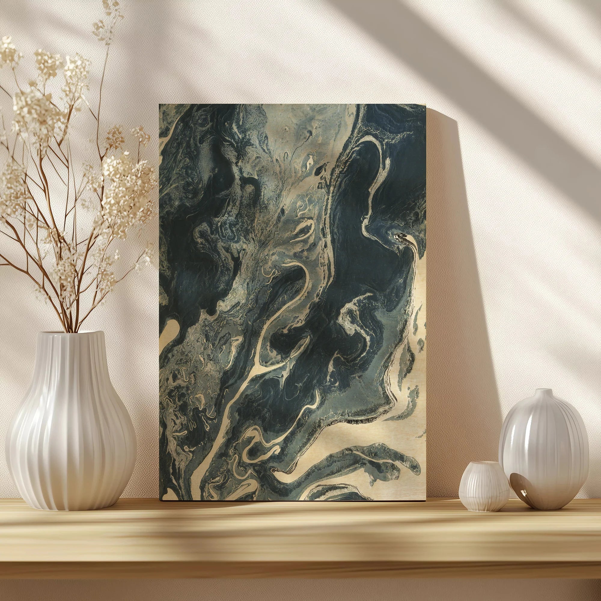 Big Blue Marble I by Alicia Longley is an abstract art print that adds depth and warmth to contemporary home décor. A versatile statement piece, perfect for living spaces, bedrooms, or creative interiors. Printed on premium 12mm Italian Poplar Plywood – finished & printed in Britain.