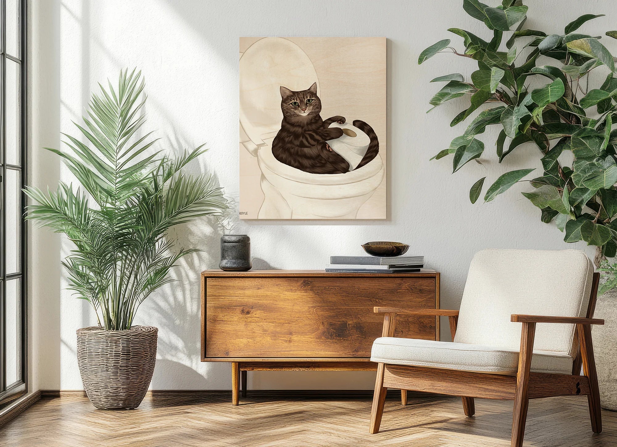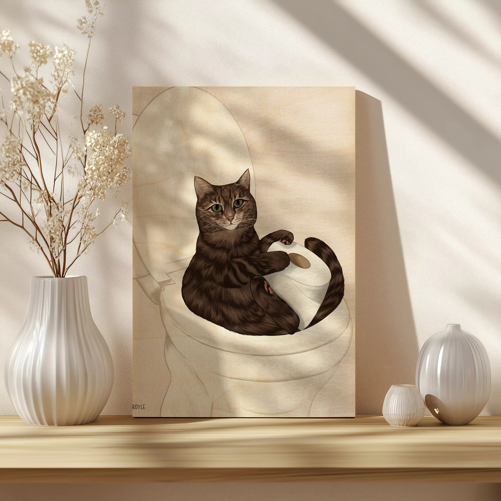 Rascal Cat III by Tara Royle is an abstract art print that adds depth and warmth to contemporary home décor. A versatile statement piece, perfect for living spaces, bedrooms, or creative interiors. Printed on premium 12mm Italian Poplar Plywood – finished & printed in Britain.