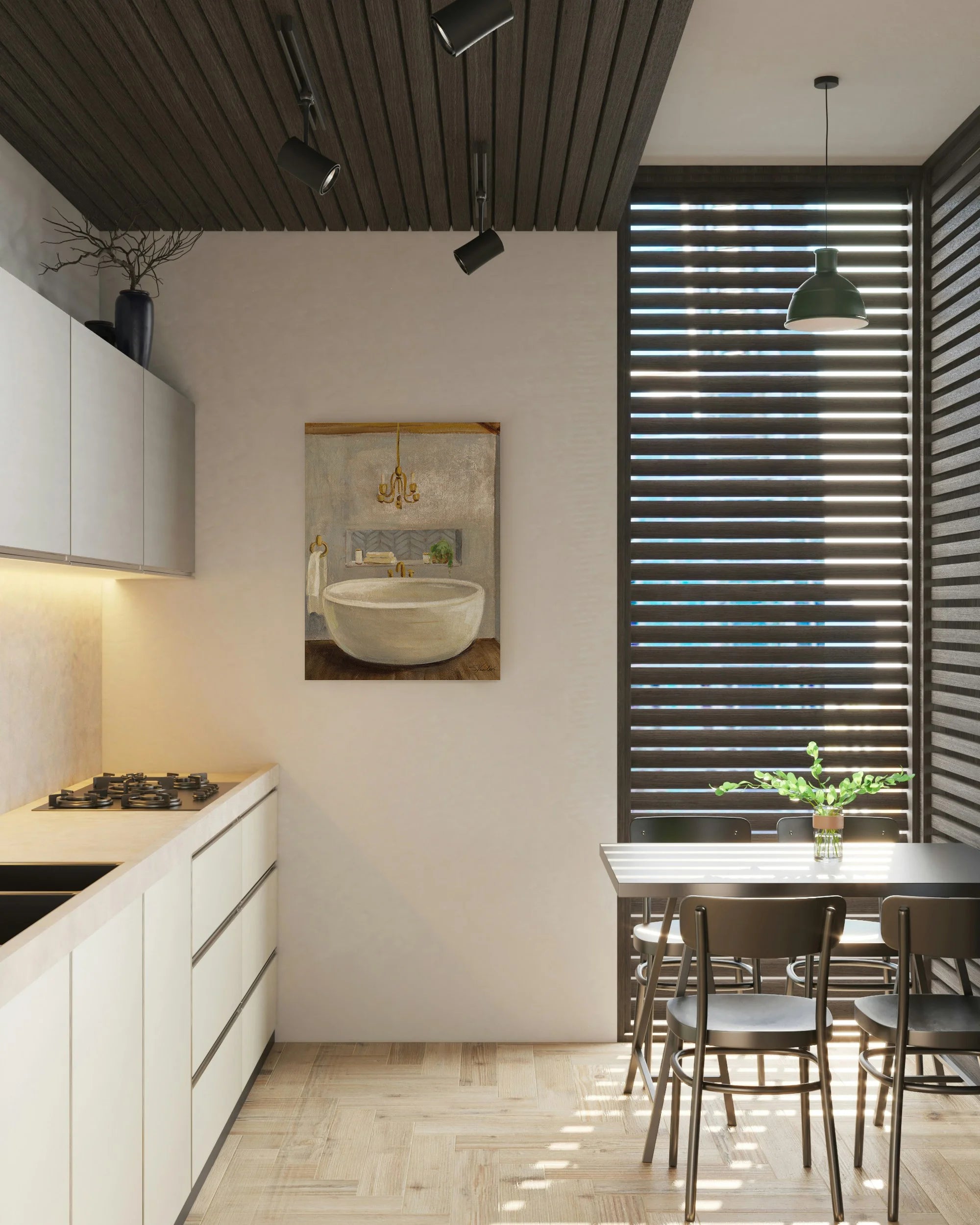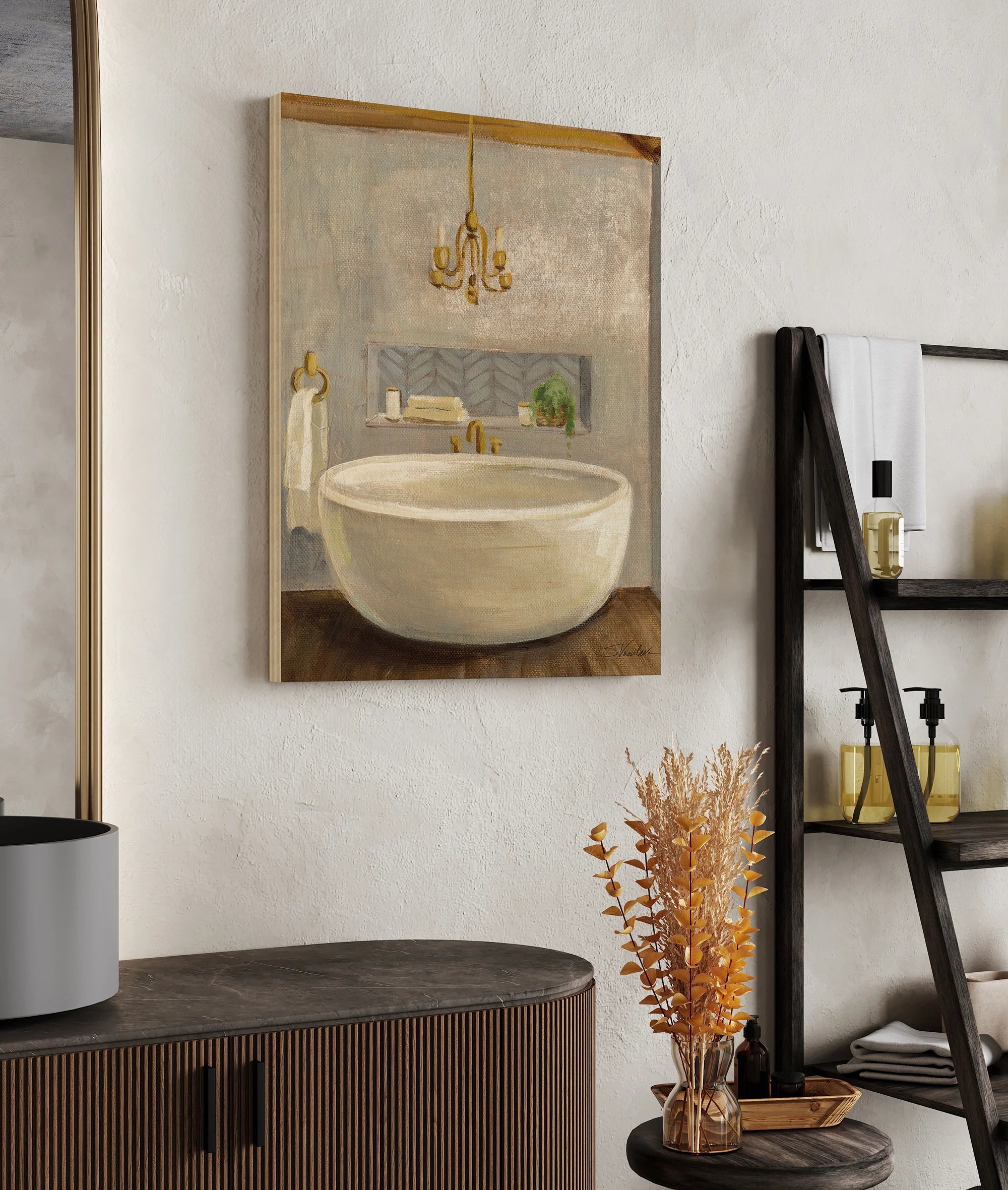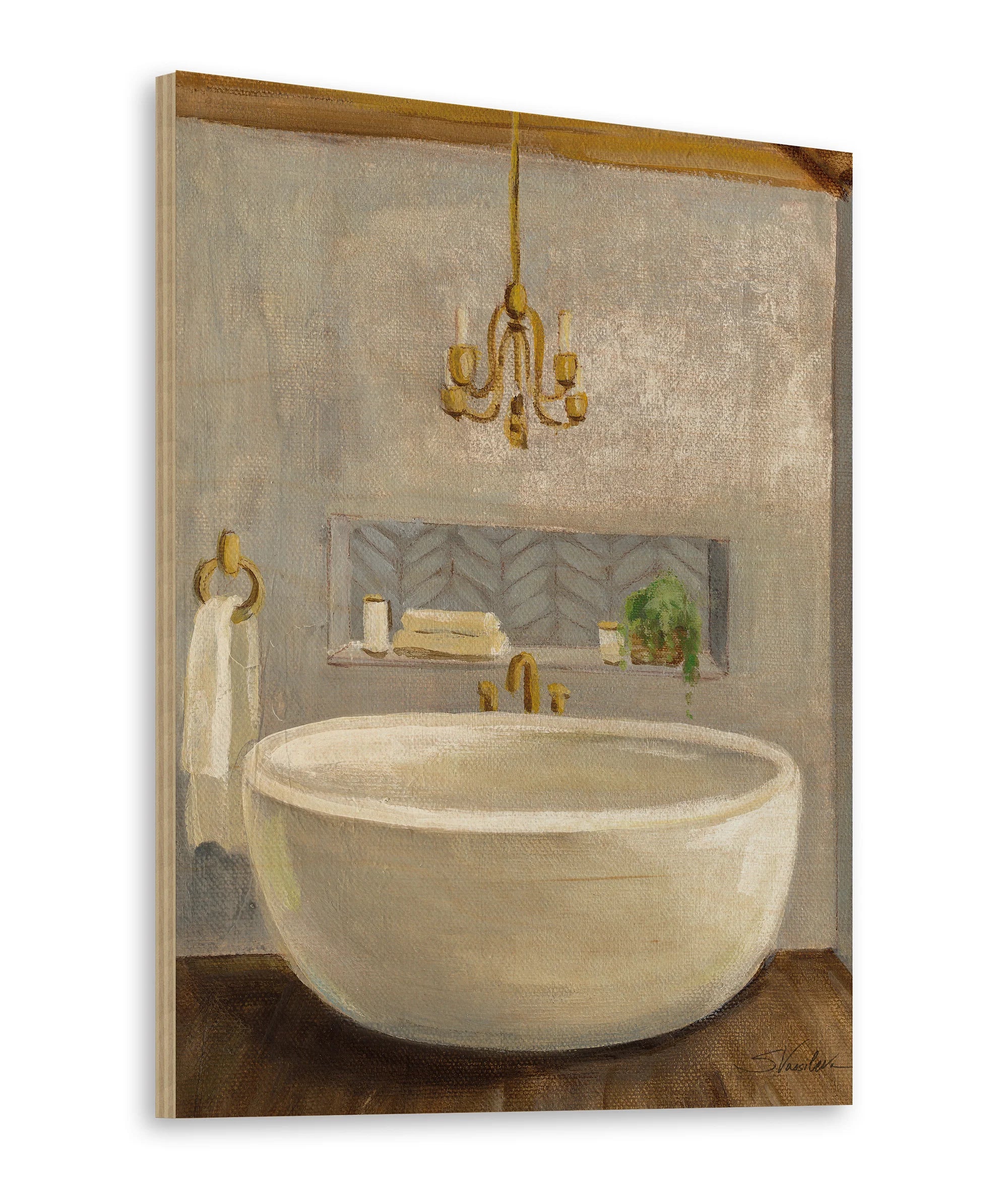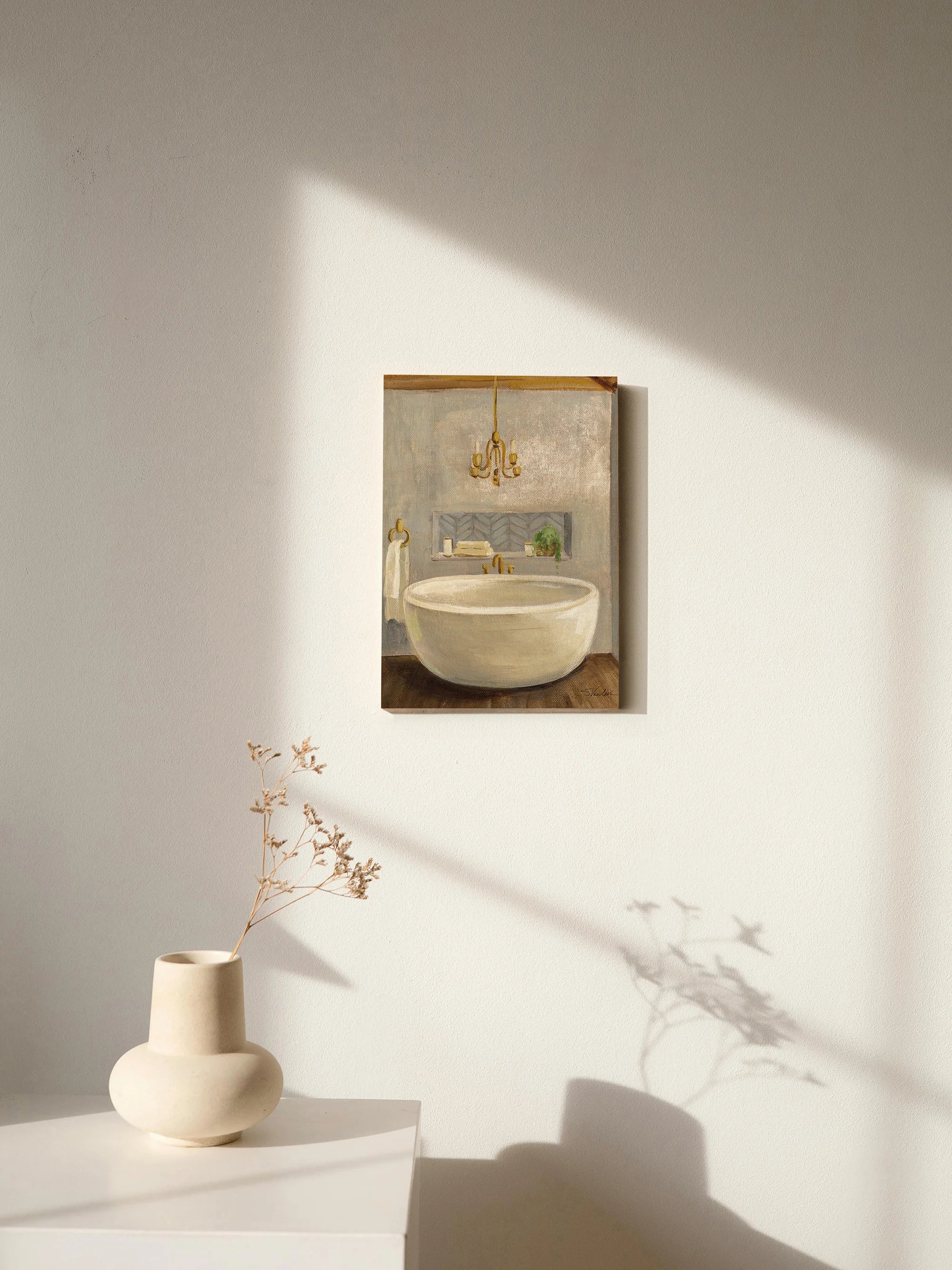 Attic Bathroom II Crop Print by Silvia Vassileva is an abstract art print that adds depth and warmth to contemporary home décor. A versatile statement piece, perfect for living spaces, bedrooms, or creative interiors. Printed on premium 12mm Italian Poplar Plywood – finished & printed in Britain.