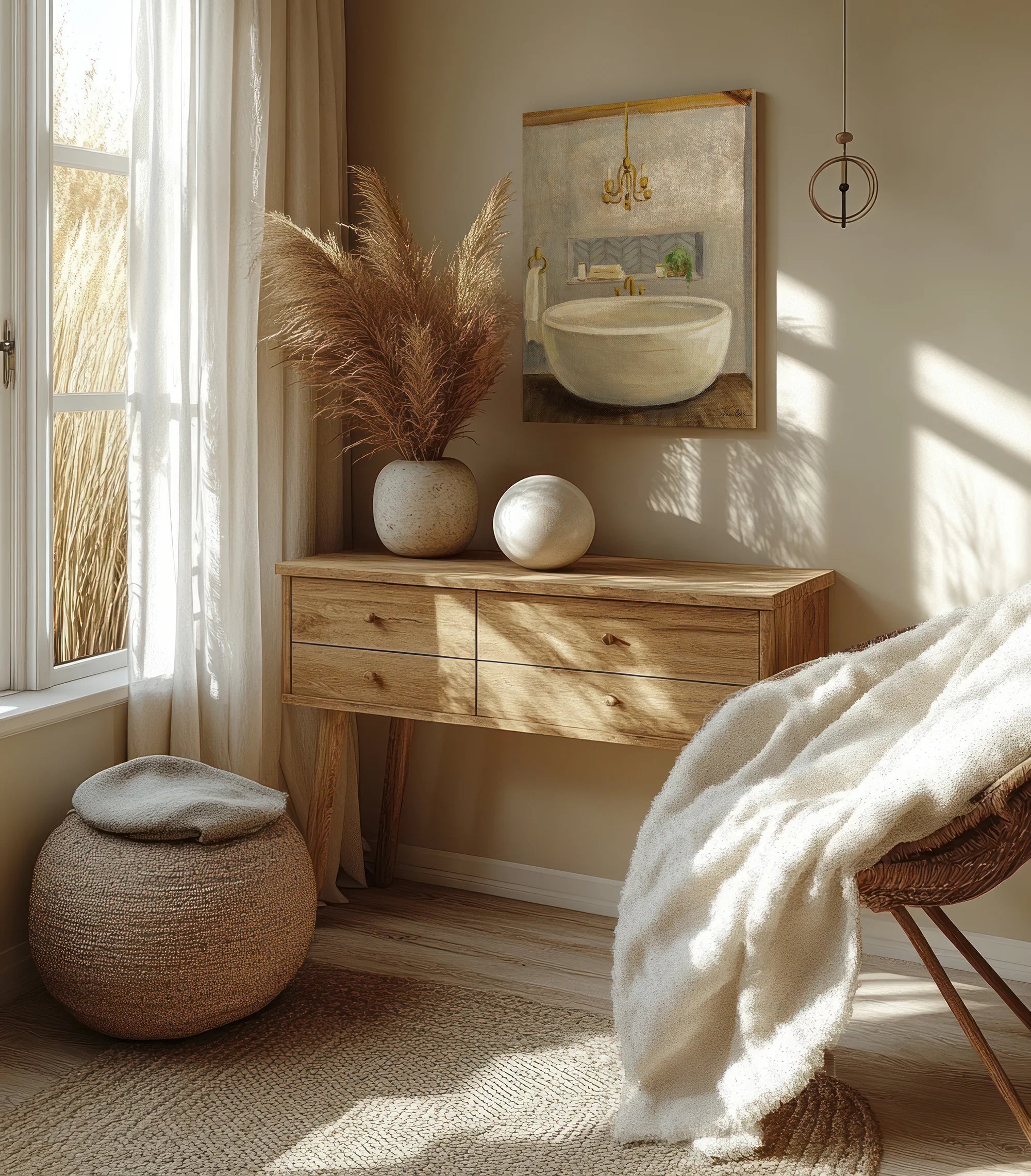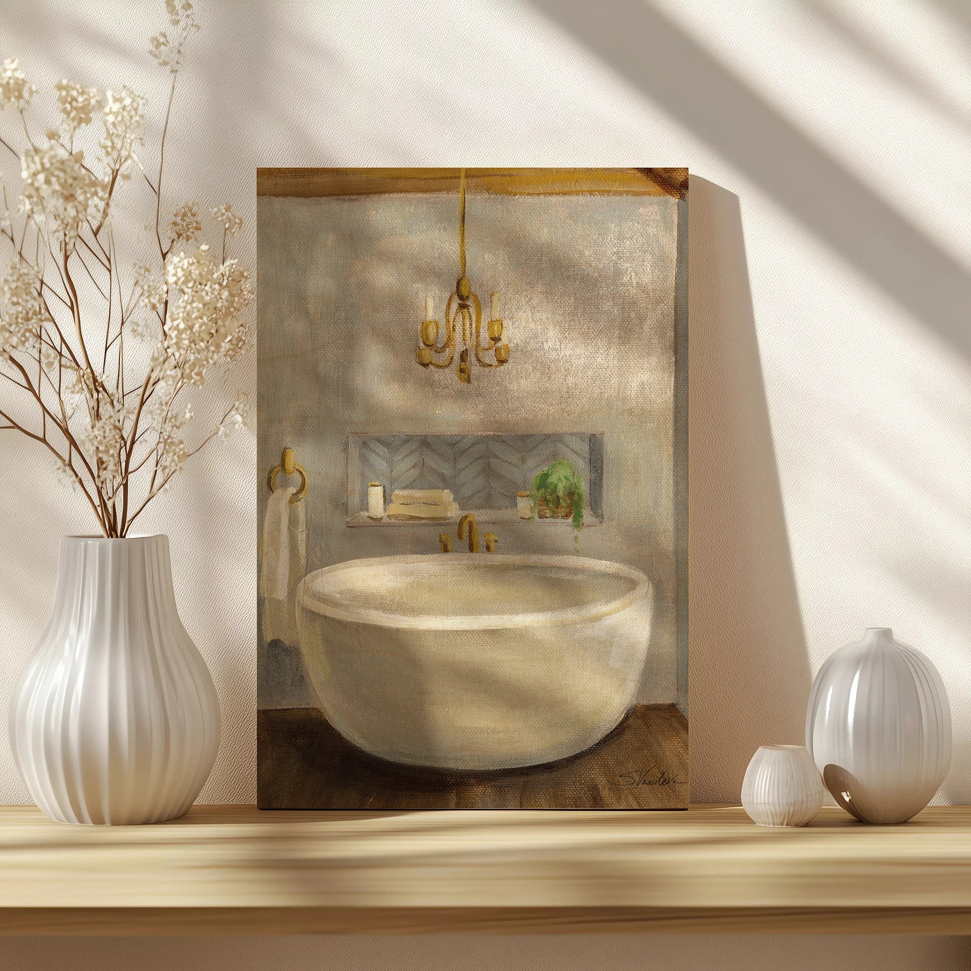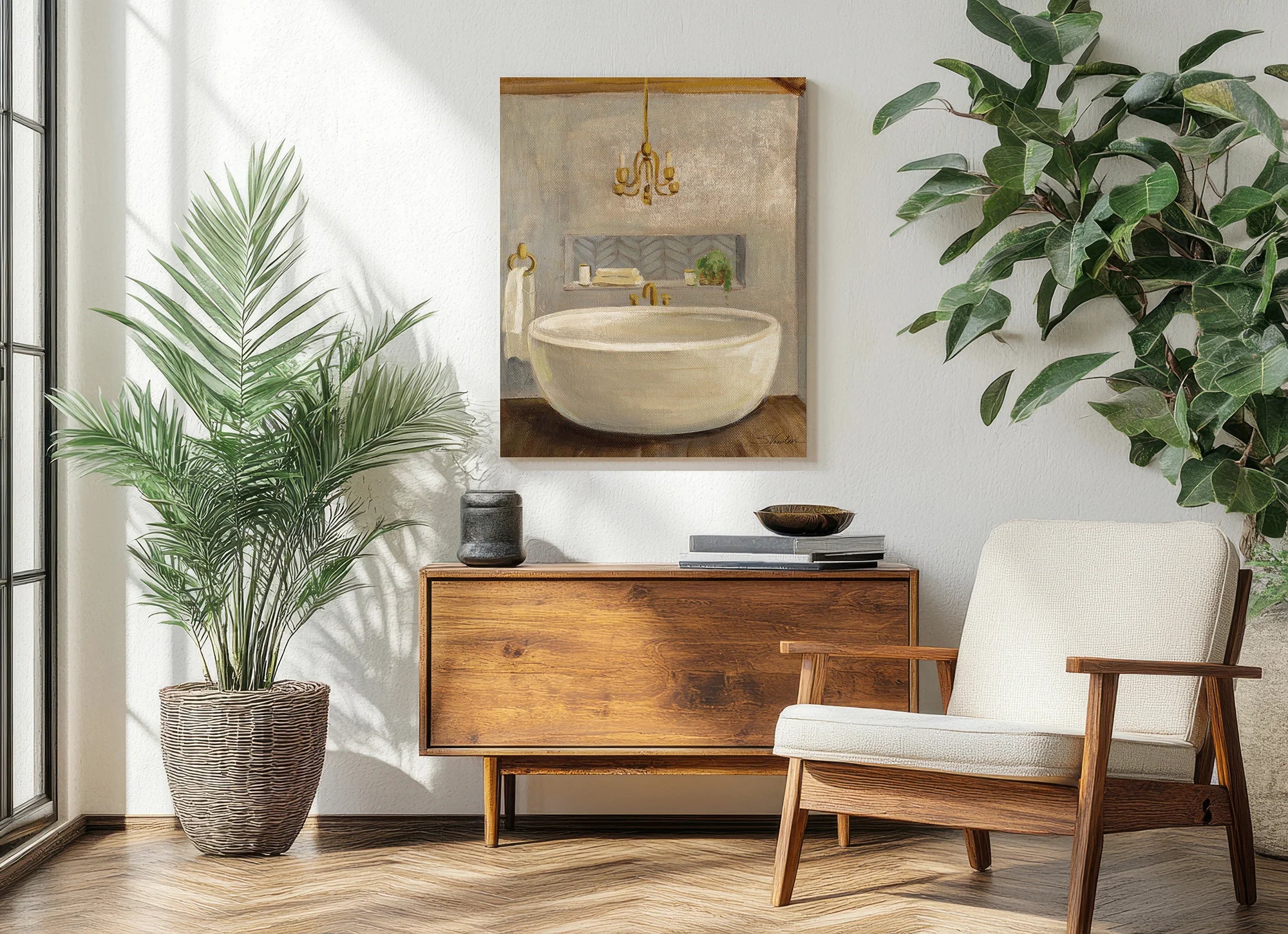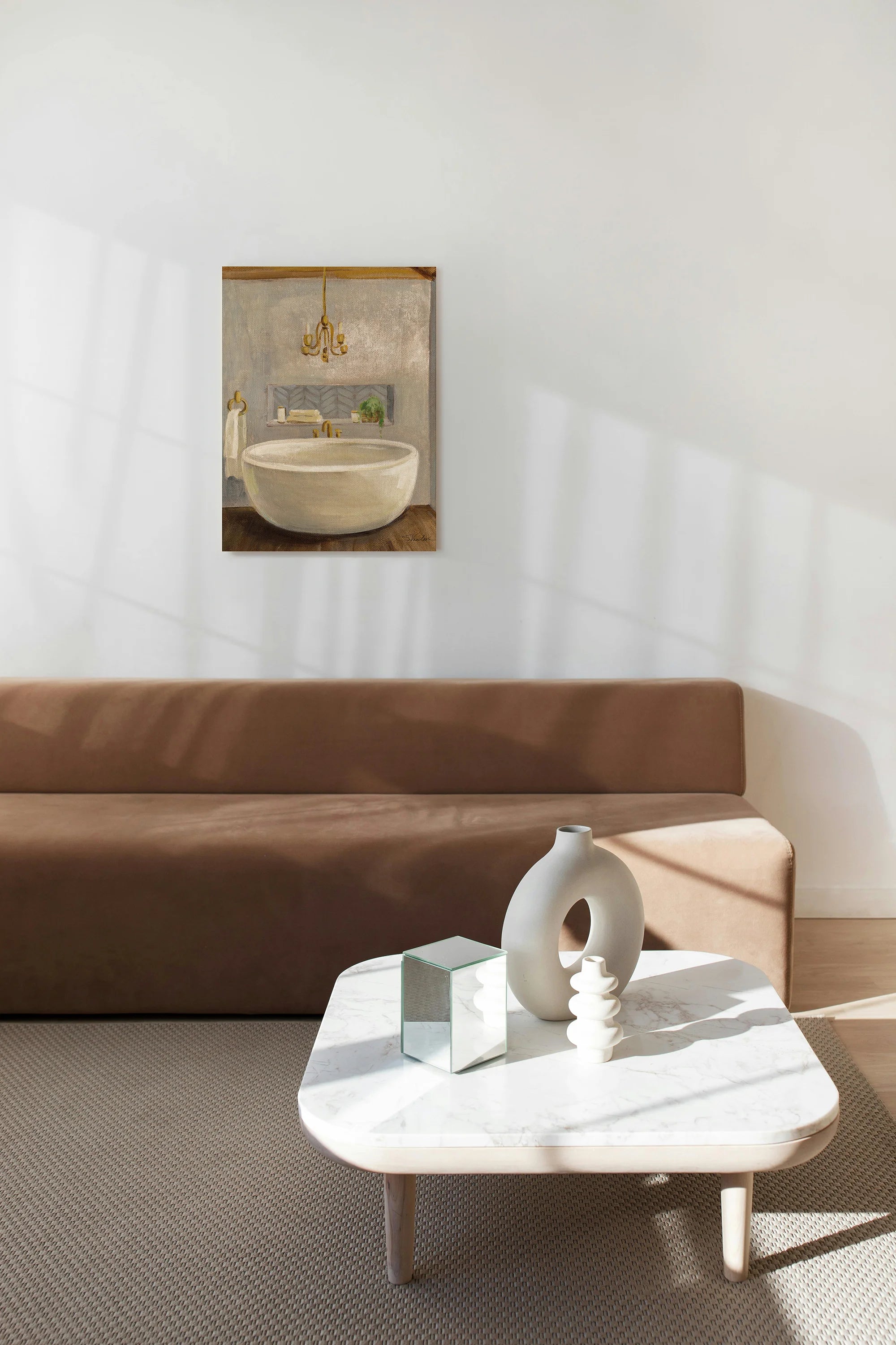 Attic Bathroom II Crop Print by Silvia Vassileva is an abstract art print that adds depth and warmth to contemporary home décor. A versatile statement piece, perfect for living spaces, bedrooms, or creative interiors. Printed on premium 12mm Italian Poplar Plywood – finished & printed in Britain.