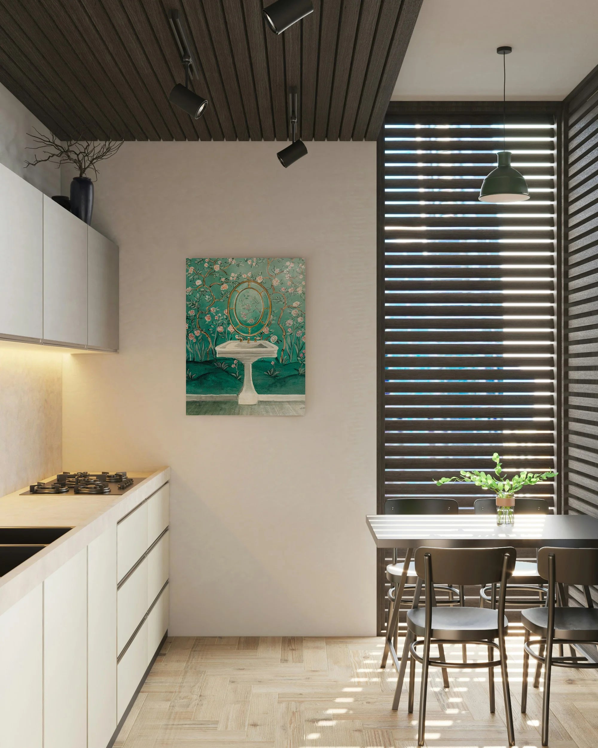 Chinoiserie Bath I Print by Julia Purinton is an abstract art print that adds depth and warmth to contemporary home décor. A versatile statement piece, perfect for living spaces, bedrooms, or creative interiors. Printed on premium 12mm Italian Poplar Plywood – finished & printed in Britain.