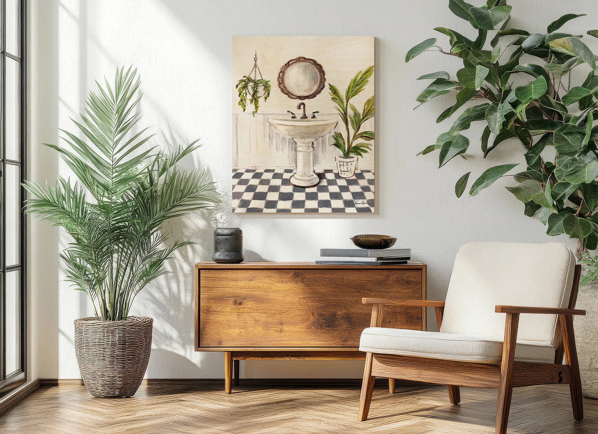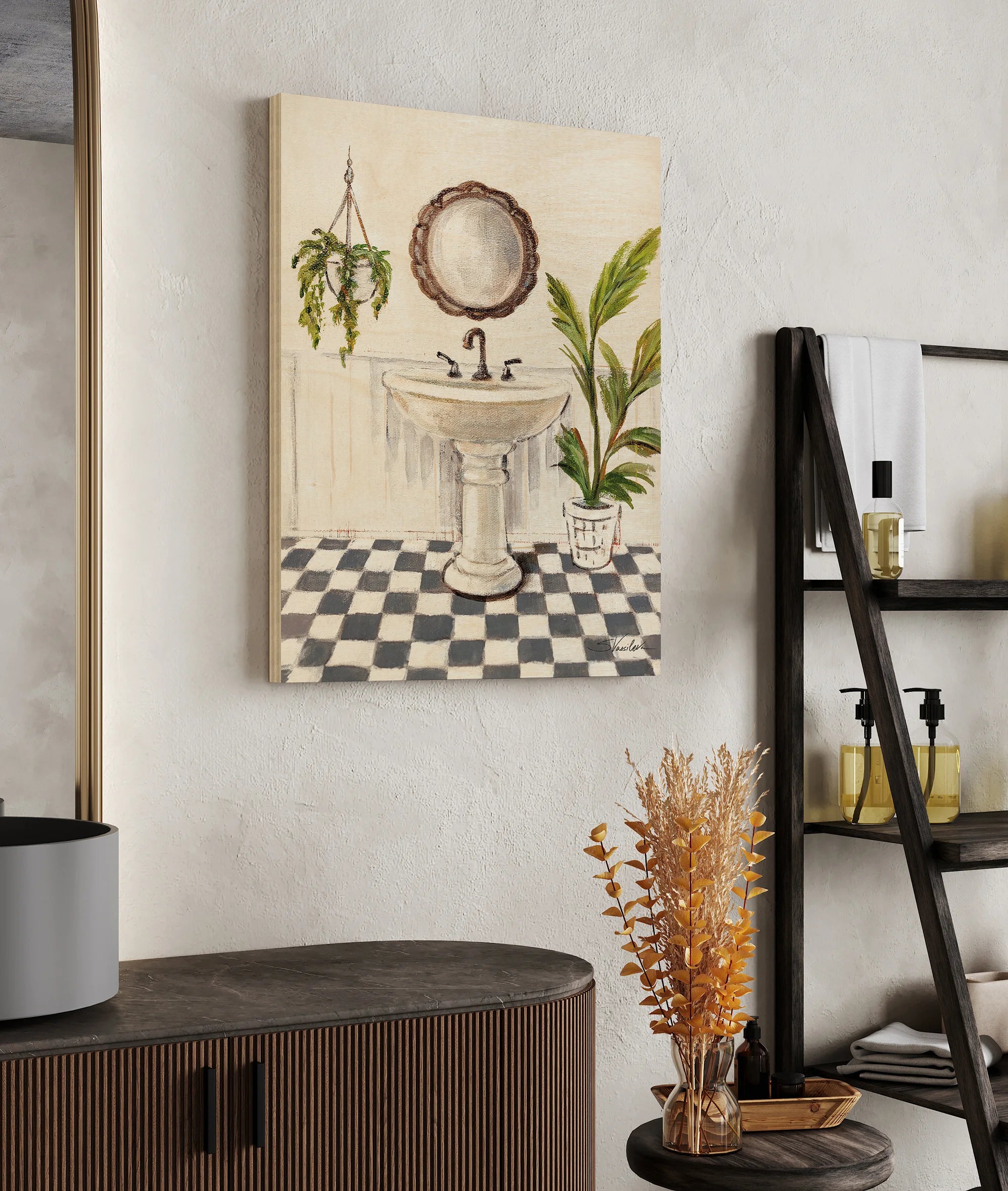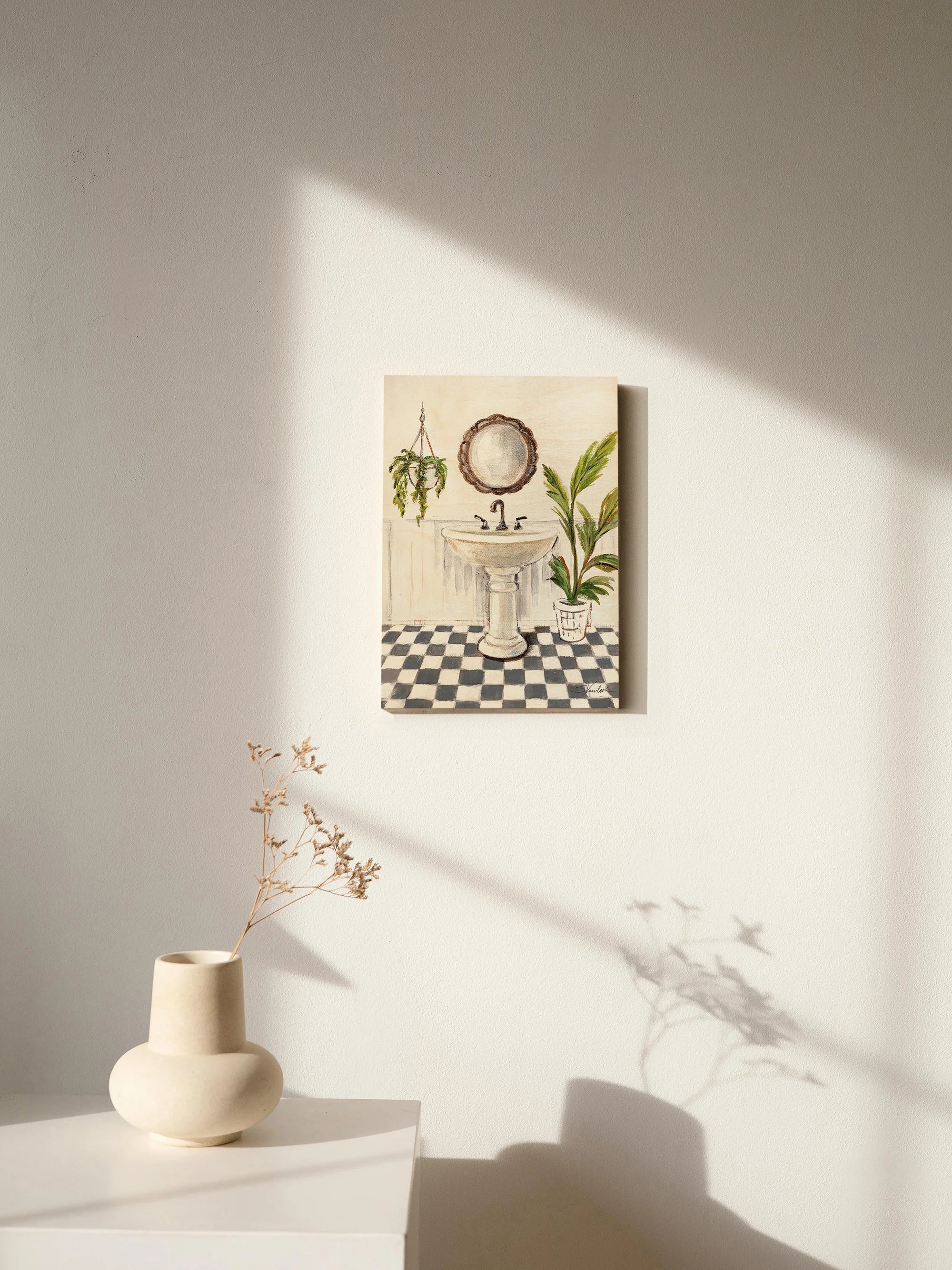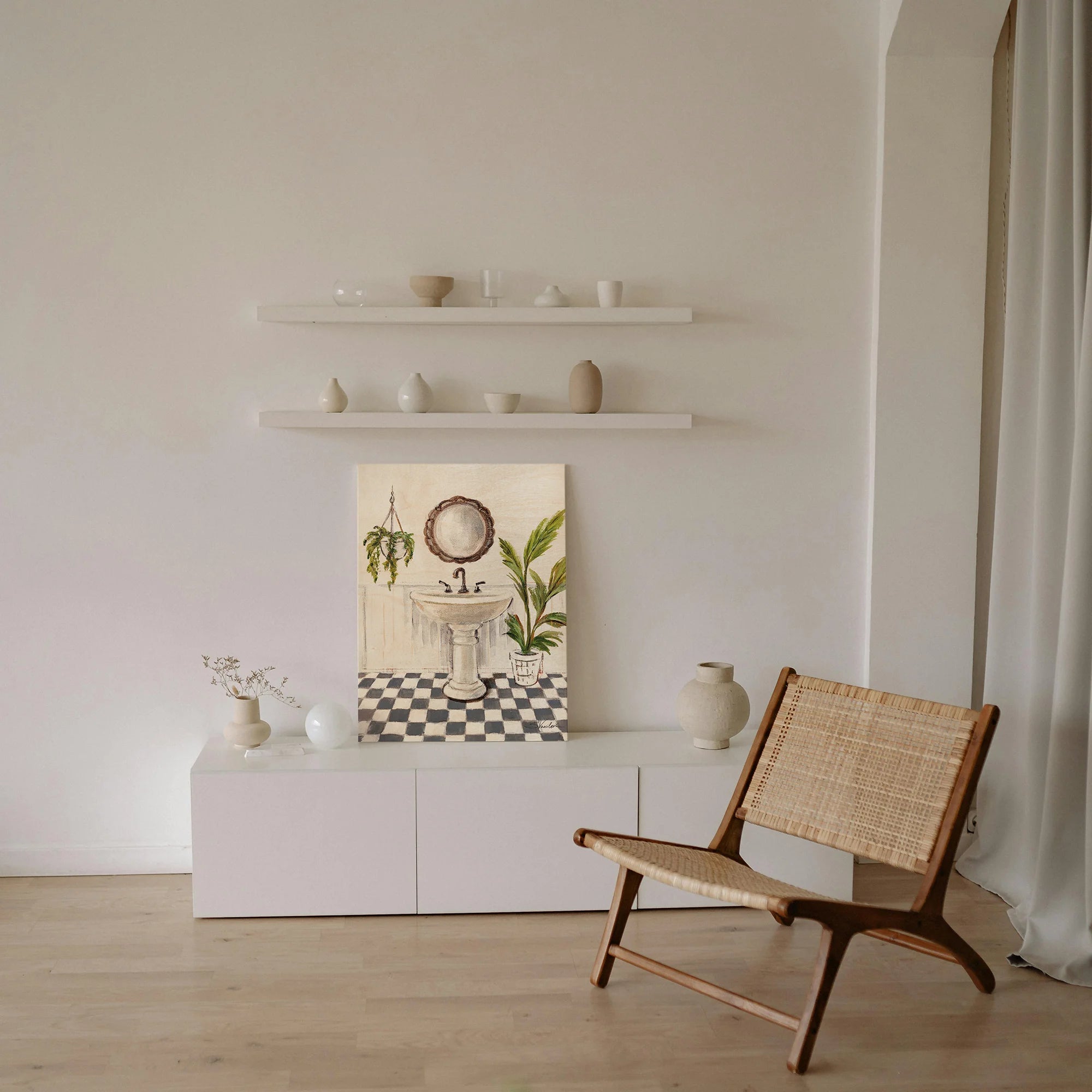 Crisp Cottage Bathroom II Vertical Print by Silvia Vassileva is an abstract art print that adds depth and warmth to contemporary home décor. A versatile statement piece, perfect for living spaces, bedrooms, or creative interiors. Printed on premium 12mm Italian Poplar Plywood – finished & printed in Britain.