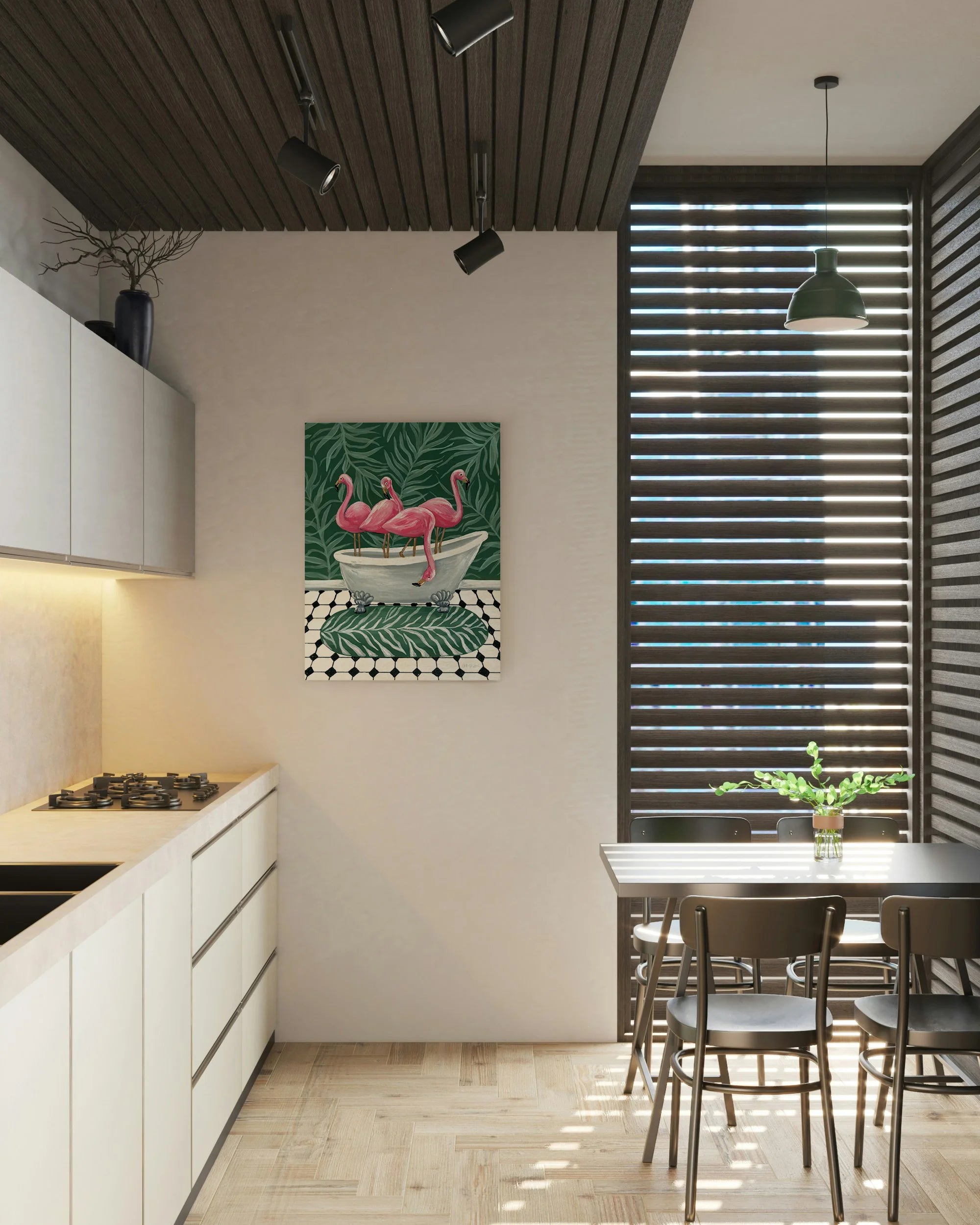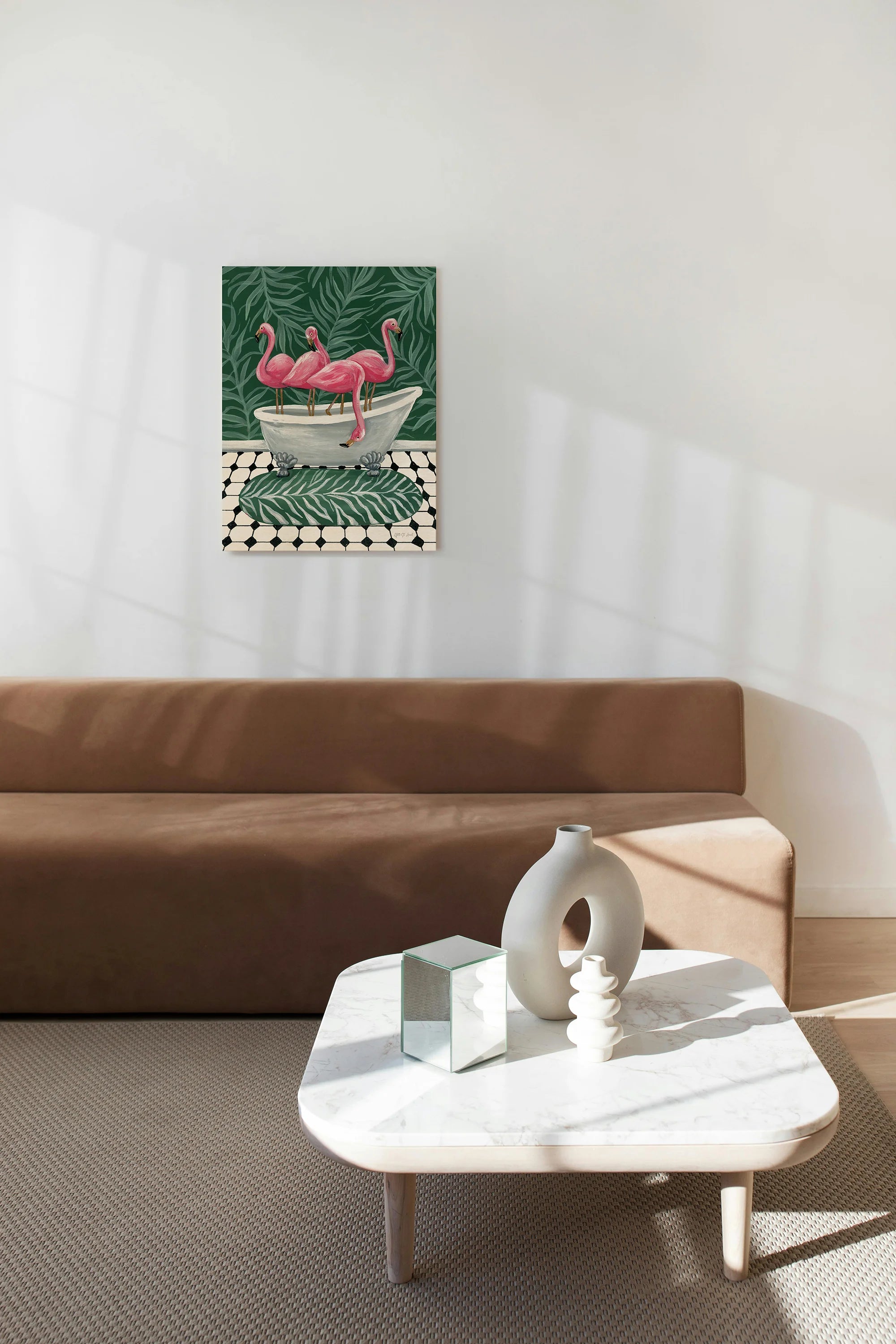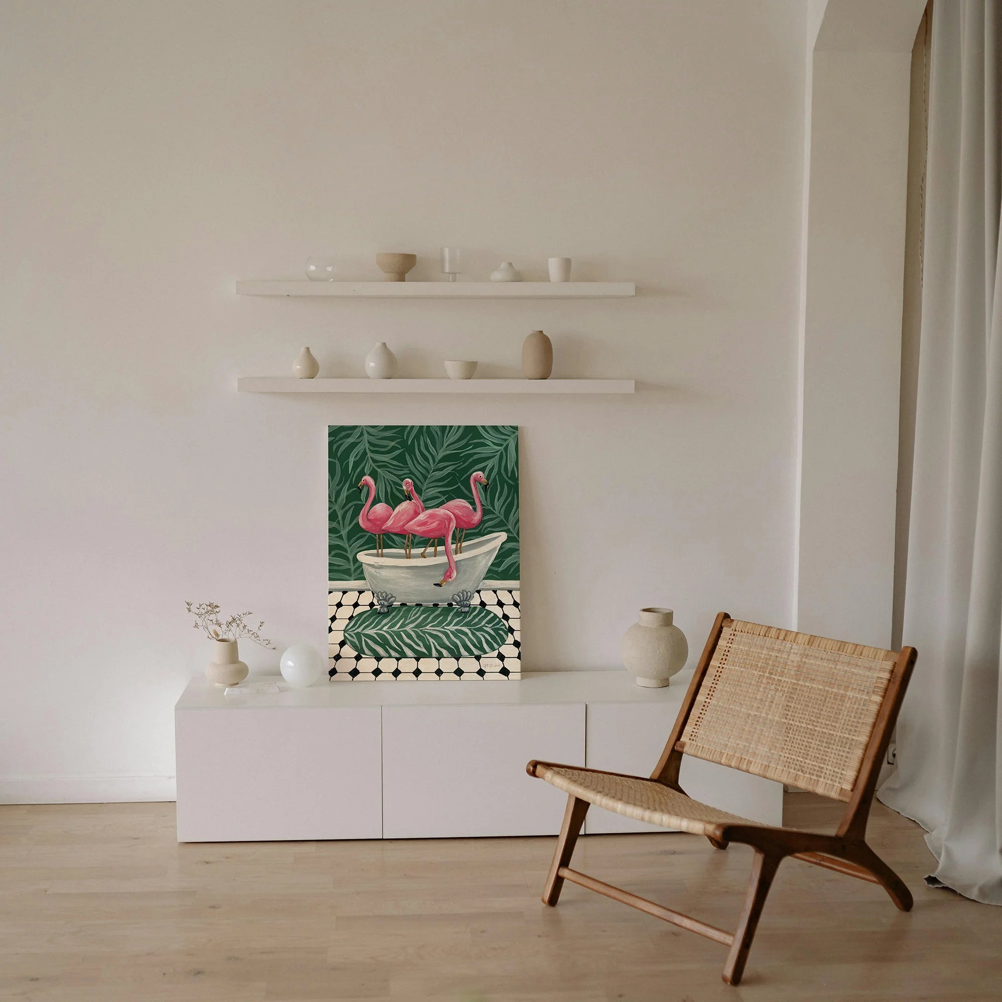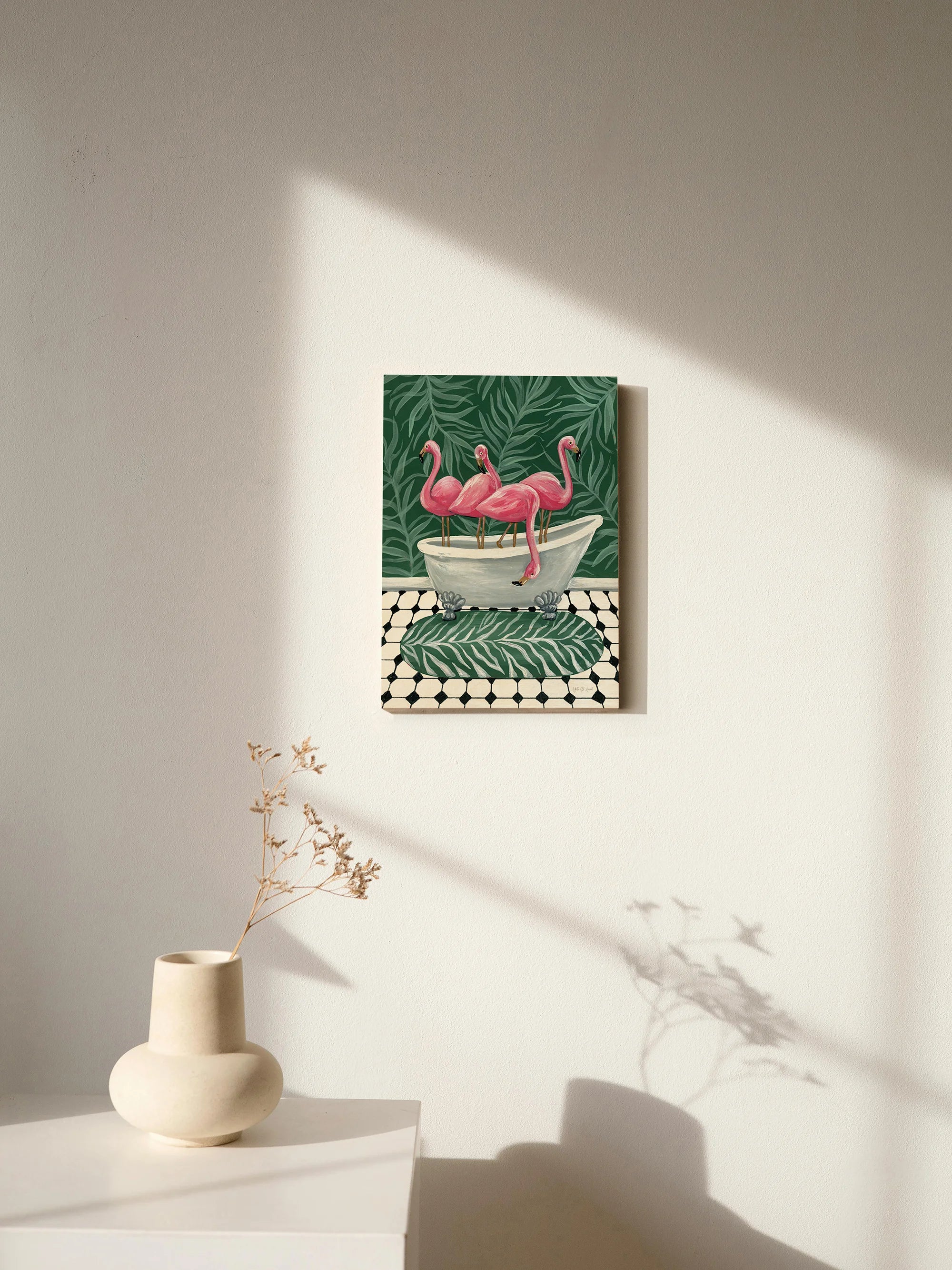 Flamingos in Tub Print by Yvette St. Amant is an abstract art print that adds depth and warmth to contemporary home décor. A versatile statement piece, perfect for living spaces, bedrooms, or creative interiors. Printed on premium 12mm Italian Poplar Plywood – finished & printed in Britain.