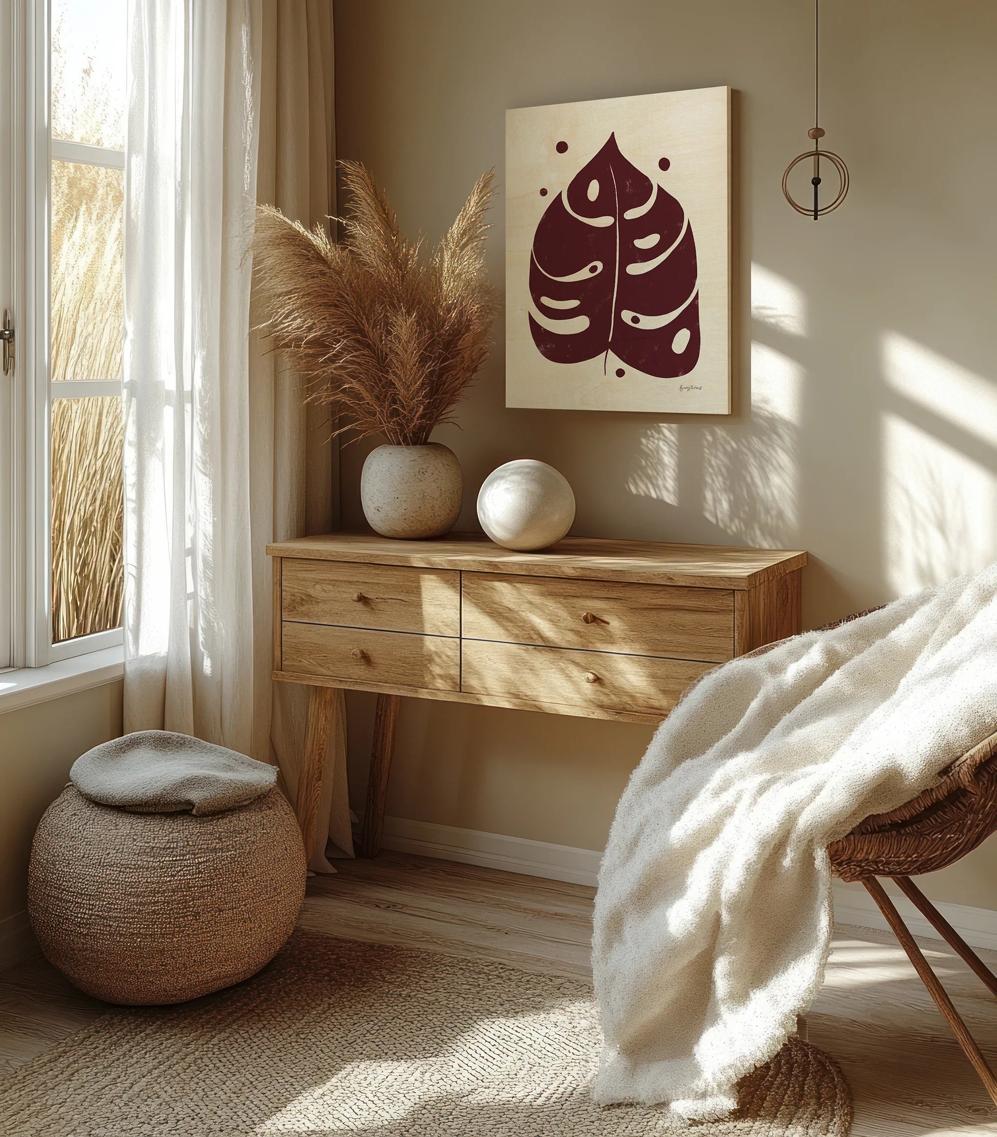 Simple Botanical II Print by Becky Thorns is an abstract art print that adds depth and warmth to contemporary home décor. A versatile statement piece, perfect for living spaces, bedrooms, or creative interiors. Printed on premium 12mm Italian Poplar Plywood – finished & printed in Britain.