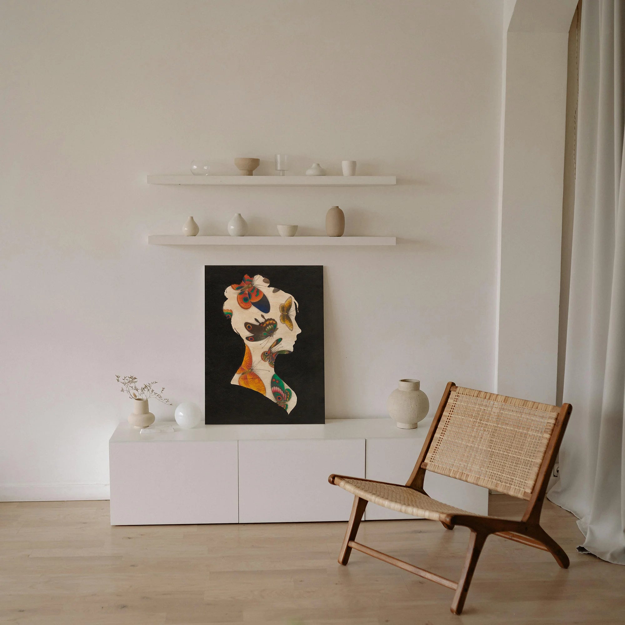 Butterfly Silhouette I Print by Wild Apple Portfolio is an abstract art print that adds depth and warmth to contemporary home décor. A versatile statement piece, perfect for living spaces, bedrooms, or creative interiors. Printed on premium 12mm Italian Poplar Plywood – finished & printed in Britain.