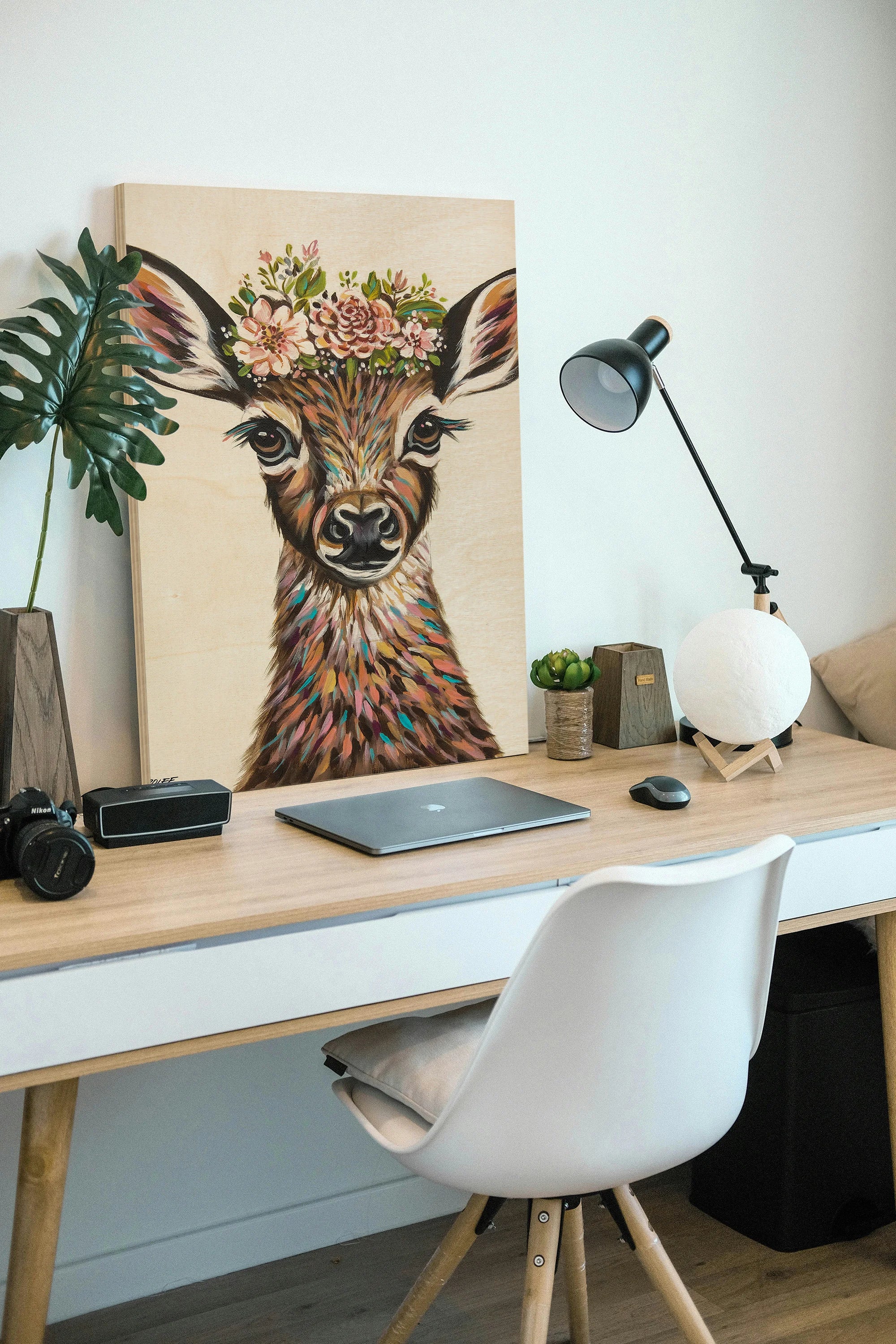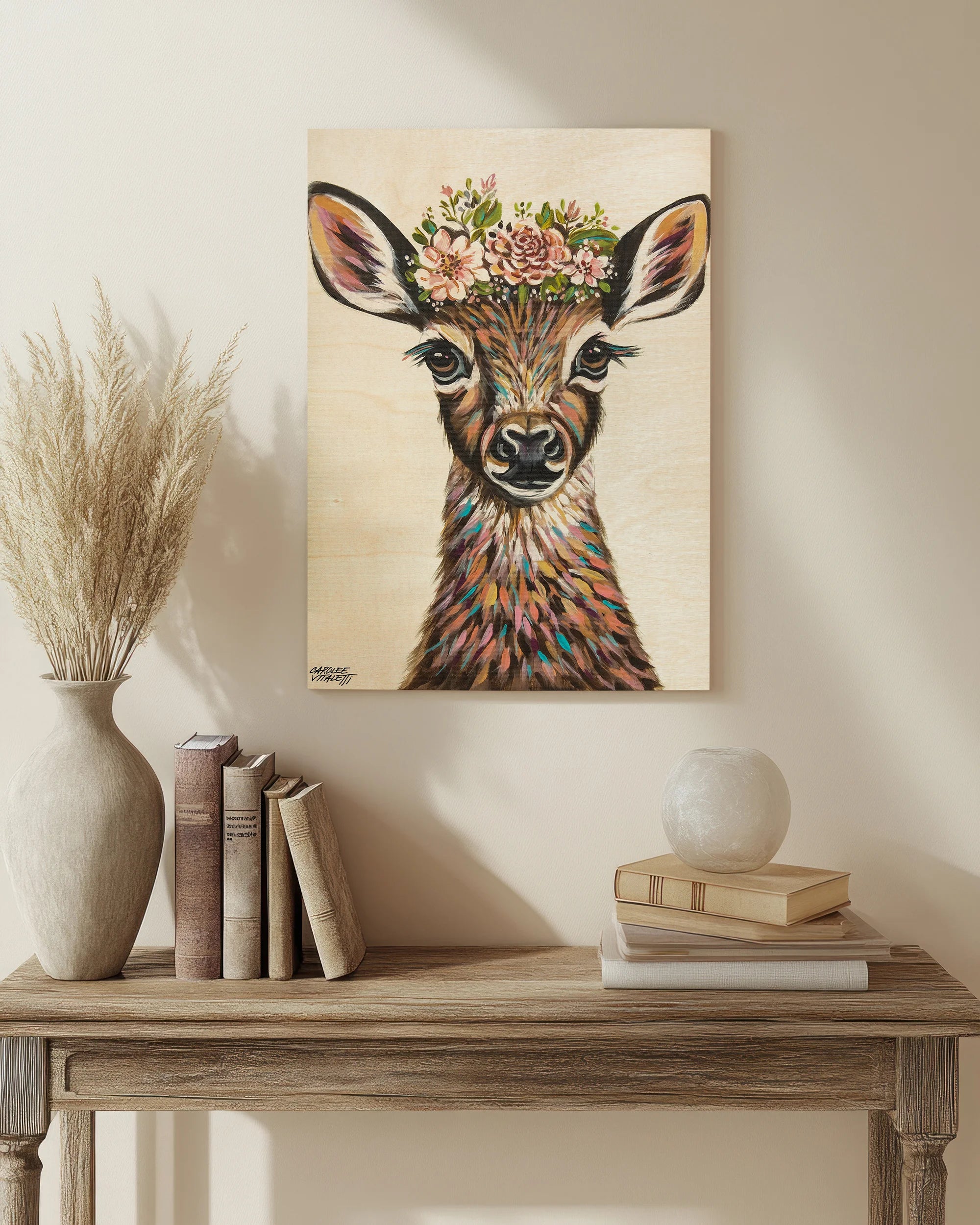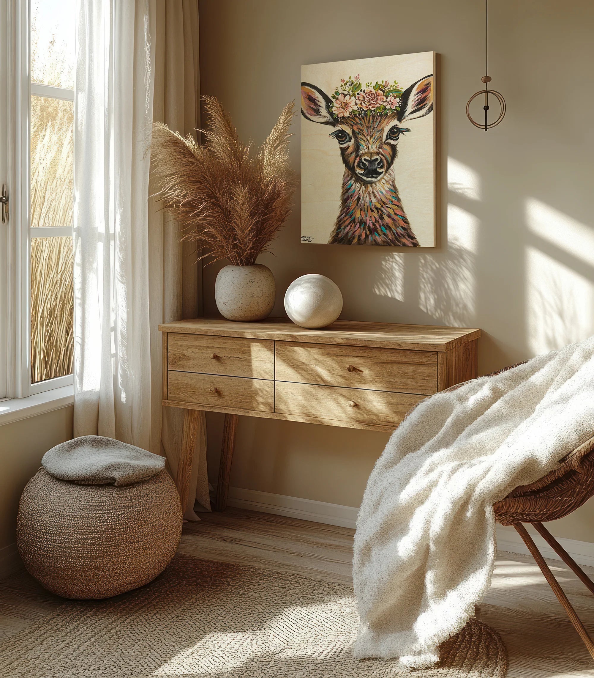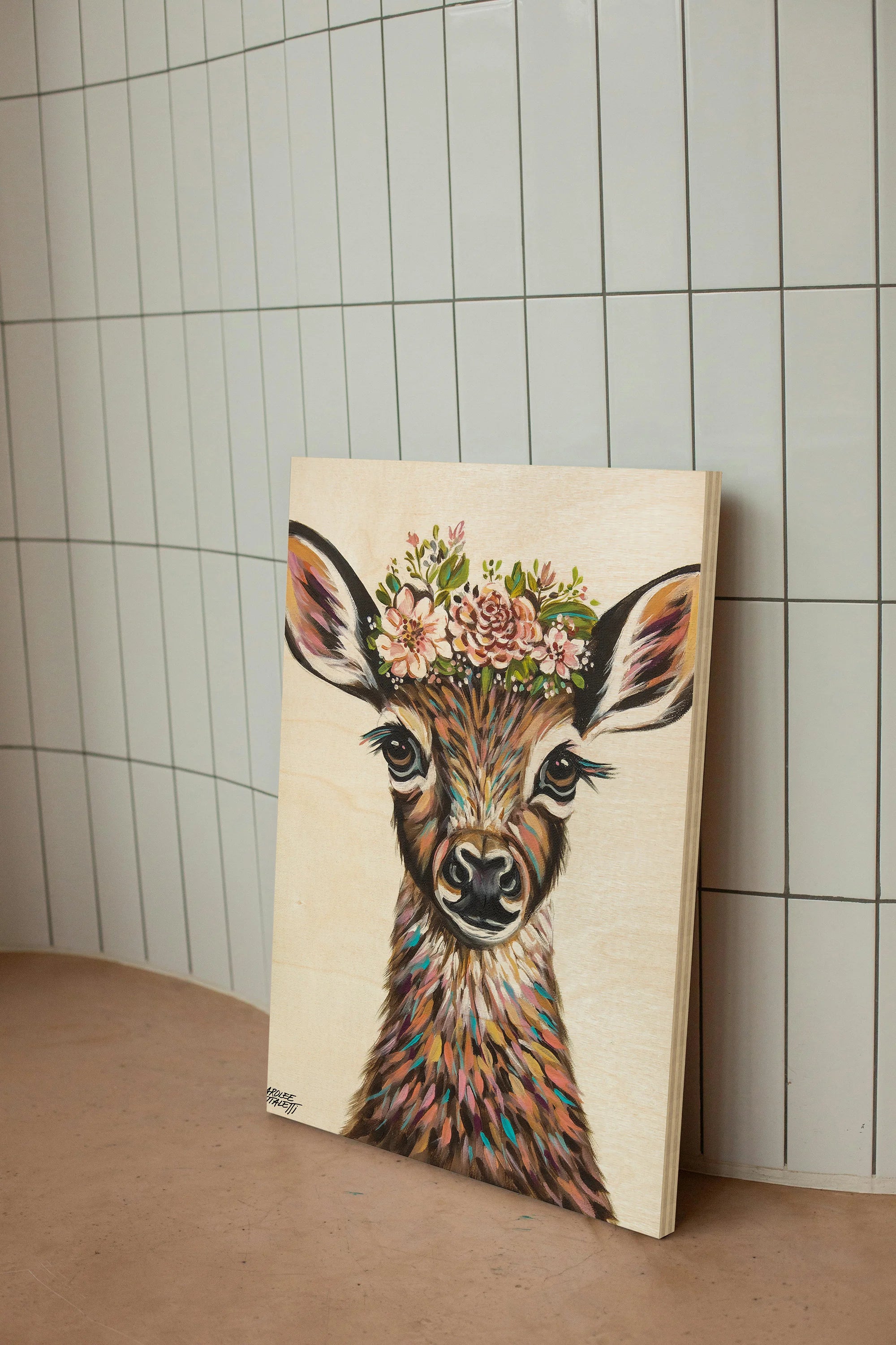 Deer with Flowers II by Carolee Vitaletti is an abstract art print that adds depth and warmth to contemporary home décor. A versatile statement piece, perfect for living spaces, bedrooms, or creative interiors. Printed on premium 12mm Italian Poplar Plywood – finished & printed in Britain.
