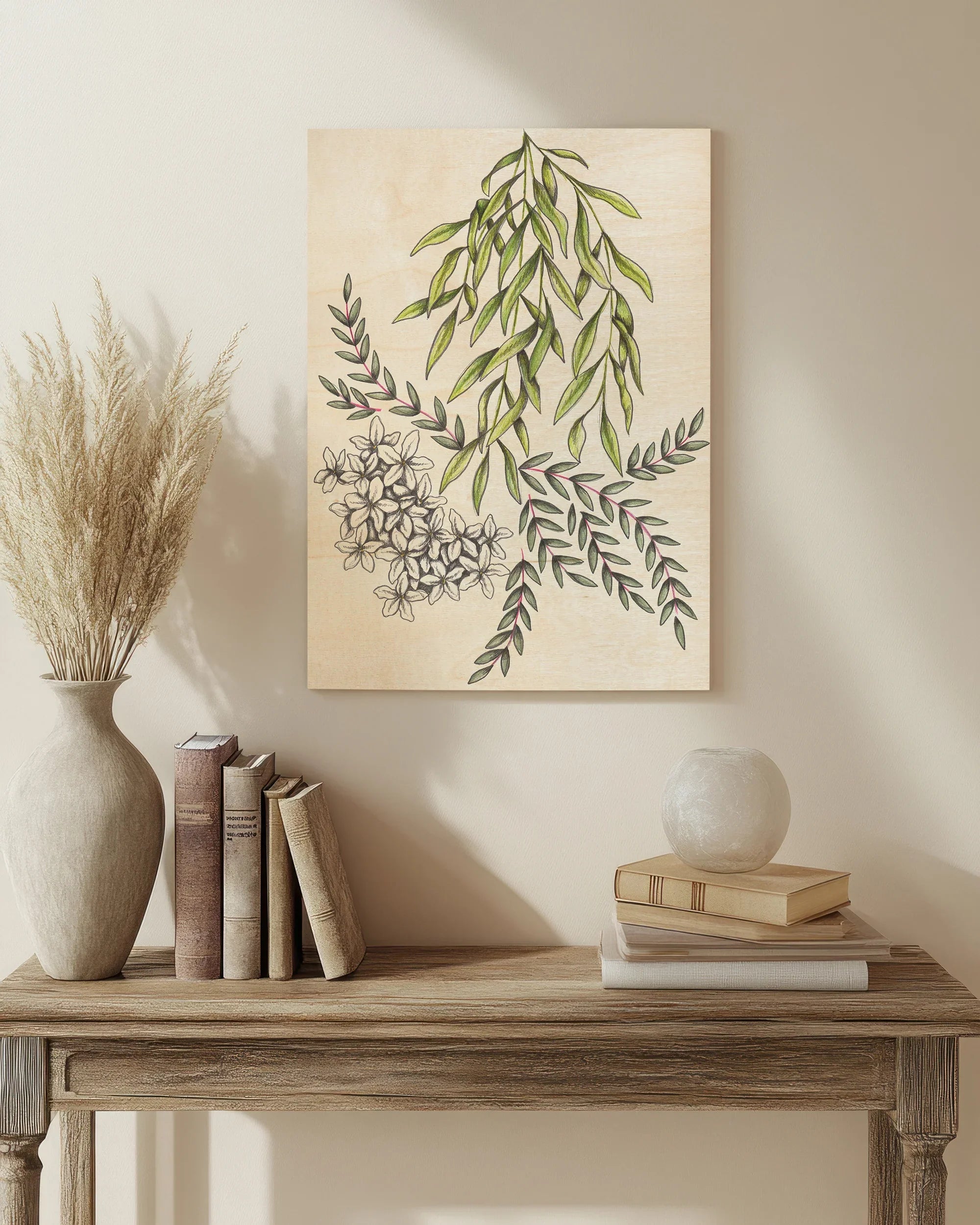 Willow Tree Flowers is an original artist-designed print by Cecilia Battaini. Each piece is UV printed onto premium natural plywood, allowing her unique artistic style to shine through while celebrating the organic beauty of the timber beneath.