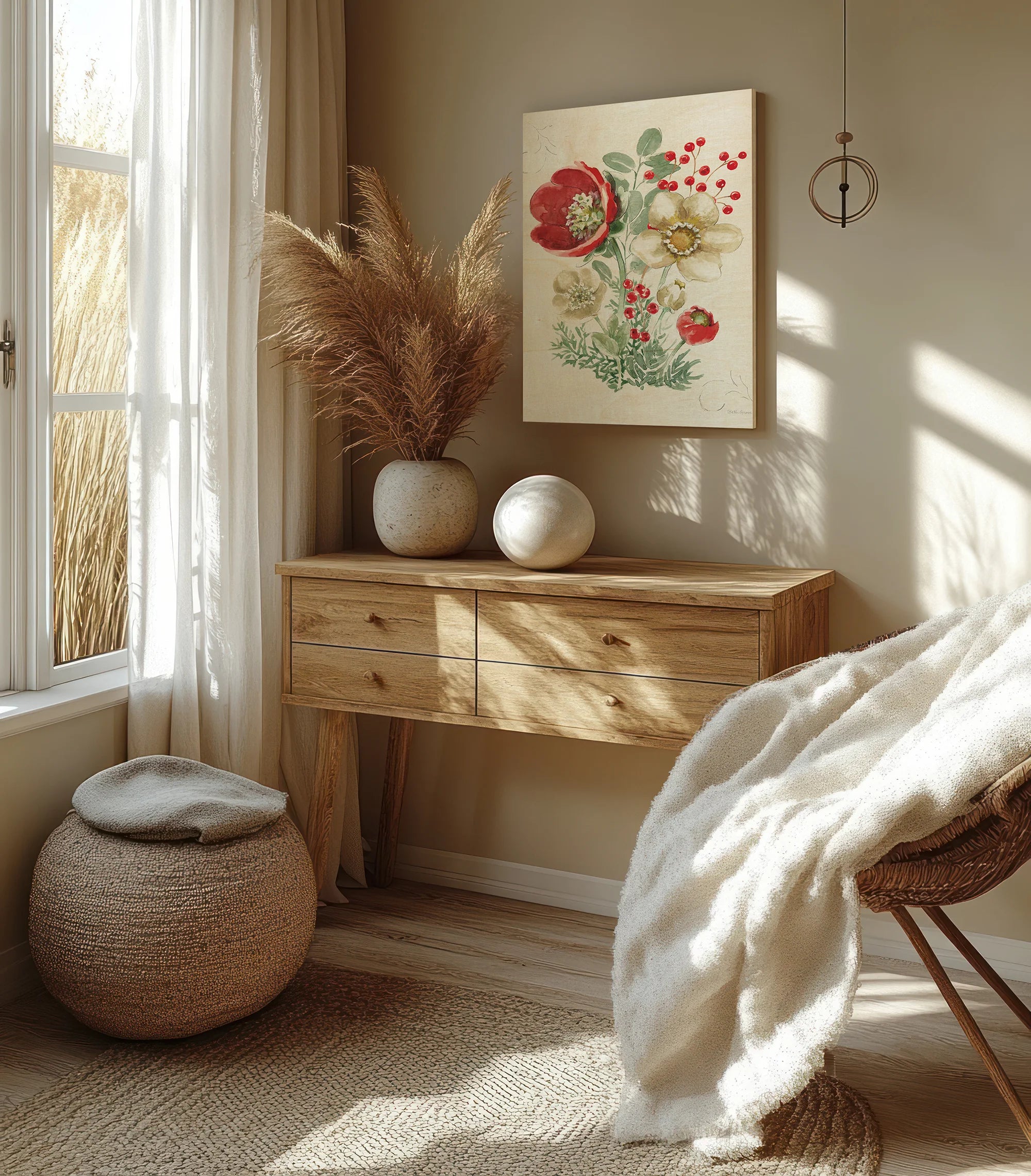 Holiday Traditions II Print by Beth Grove is an abstract art print that adds depth and warmth to contemporary home décor. A versatile statement piece, perfect for living spaces, bedrooms, or creative interiors. Printed on premium 12mm Italian Poplar Plywood – finished & printed in Britain.