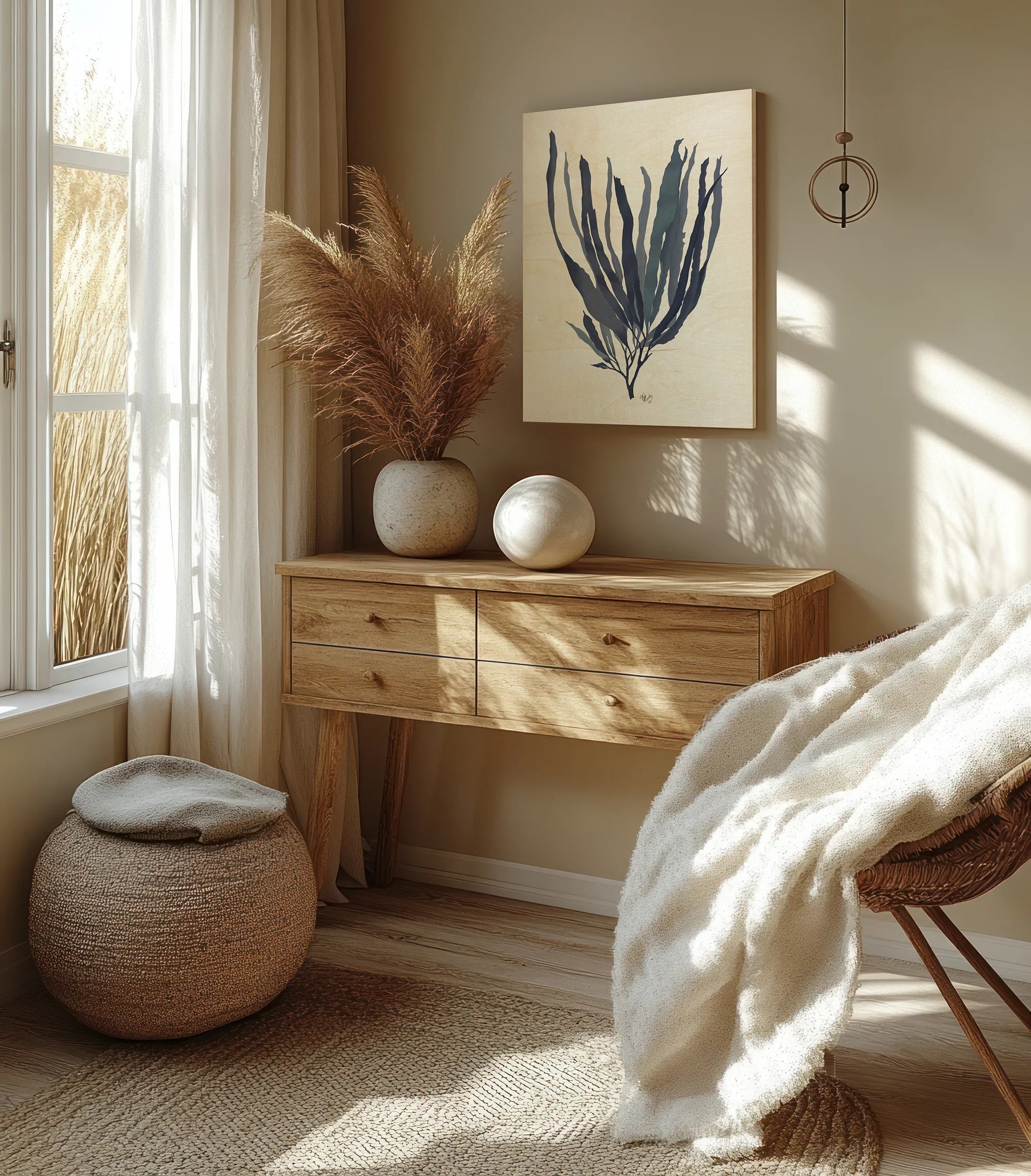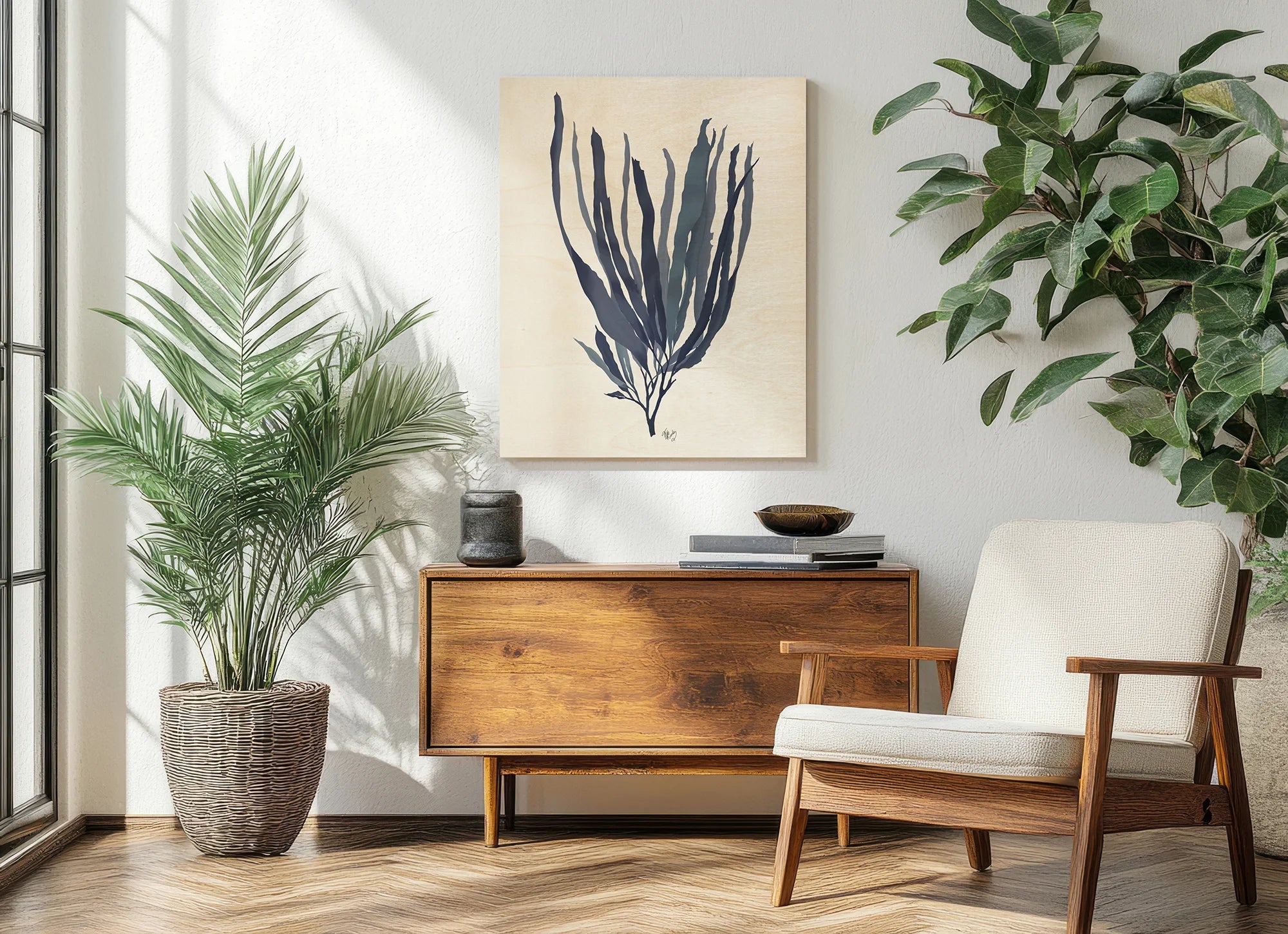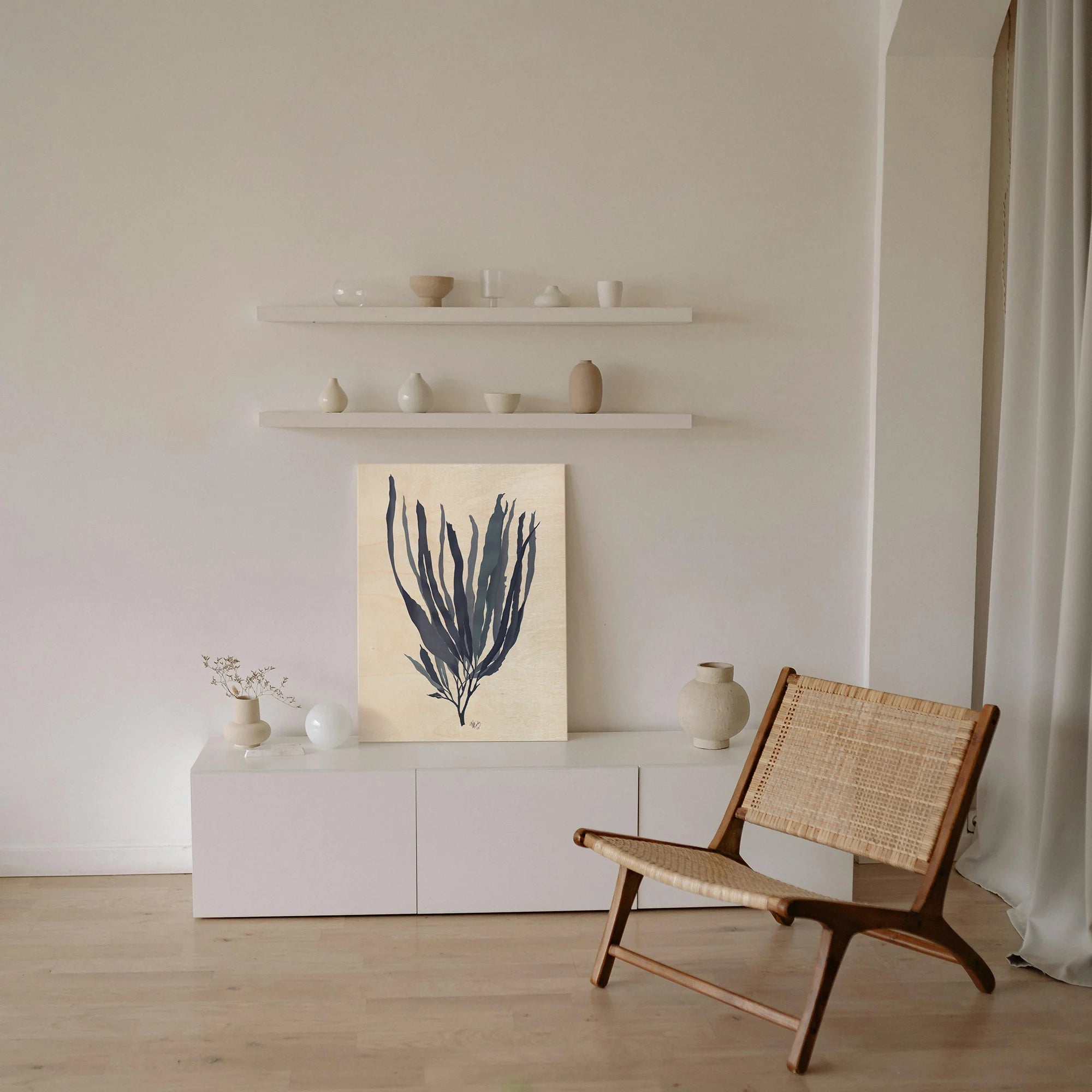 Seaweed 1 Blue Large by Fab Funky is an abstract art print that adds depth and warmth to contemporary home décor. A versatile statement piece, perfect for living spaces, bedrooms, or creative interiors. Printed on premium 12mm Italian Poplar Plywood – finished & printed in Britain.