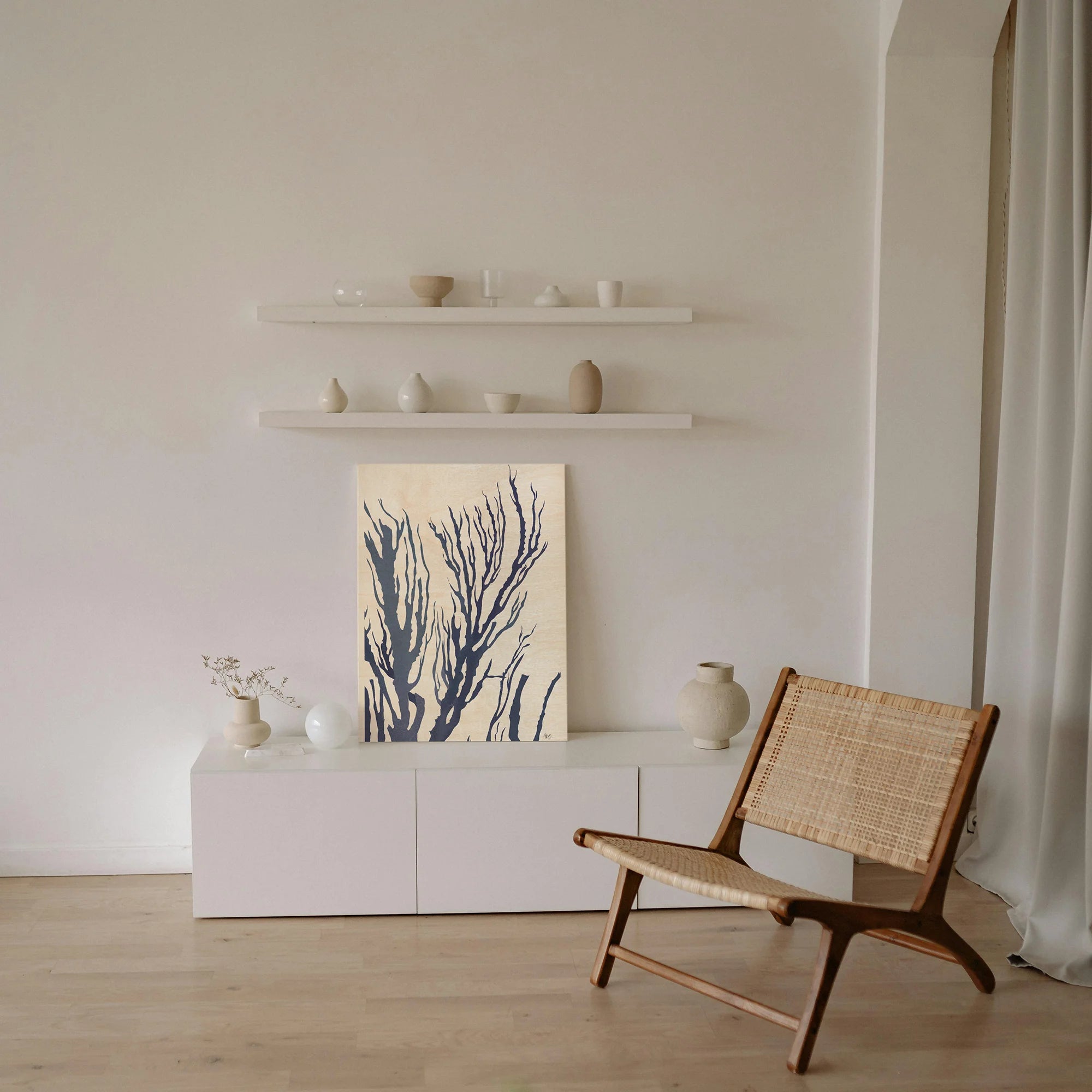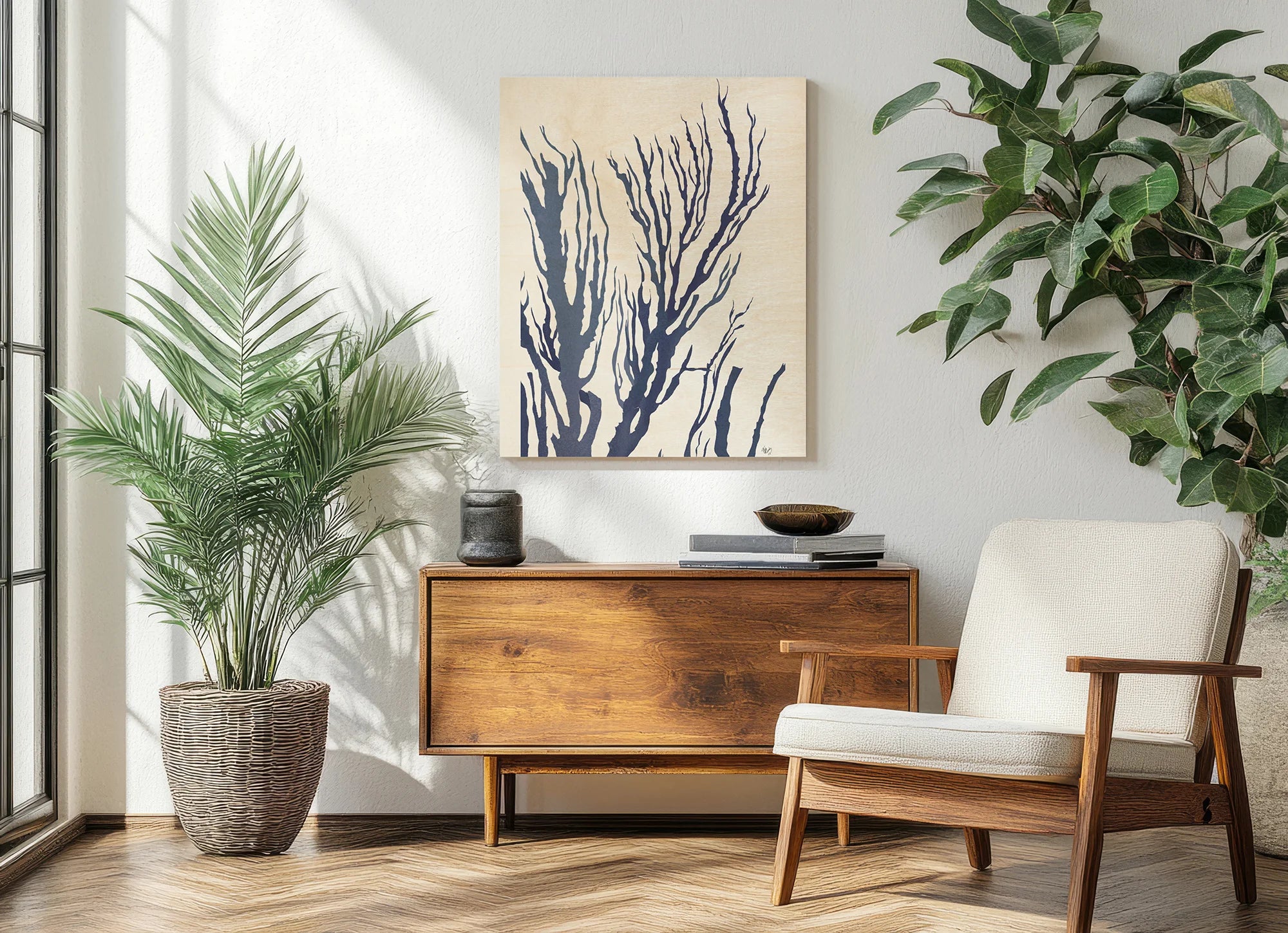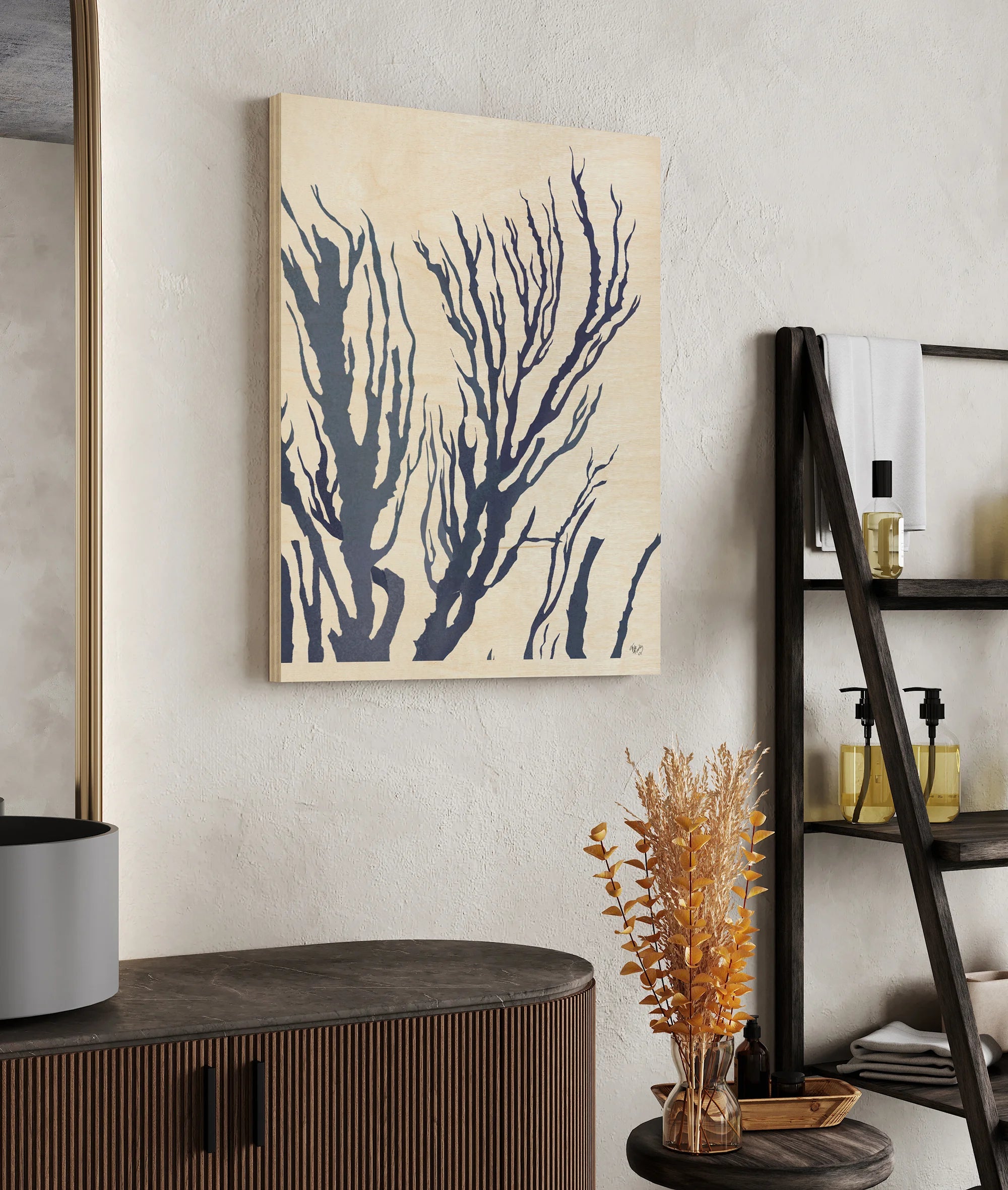 Seaweed 3 Blue Large by Fab Funky is an abstract art print that adds depth and warmth to contemporary home décor. A versatile statement piece, perfect for living spaces, bedrooms, or creative interiors. Printed on premium 12mm Italian Poplar Plywood – finished & printed in Britain.