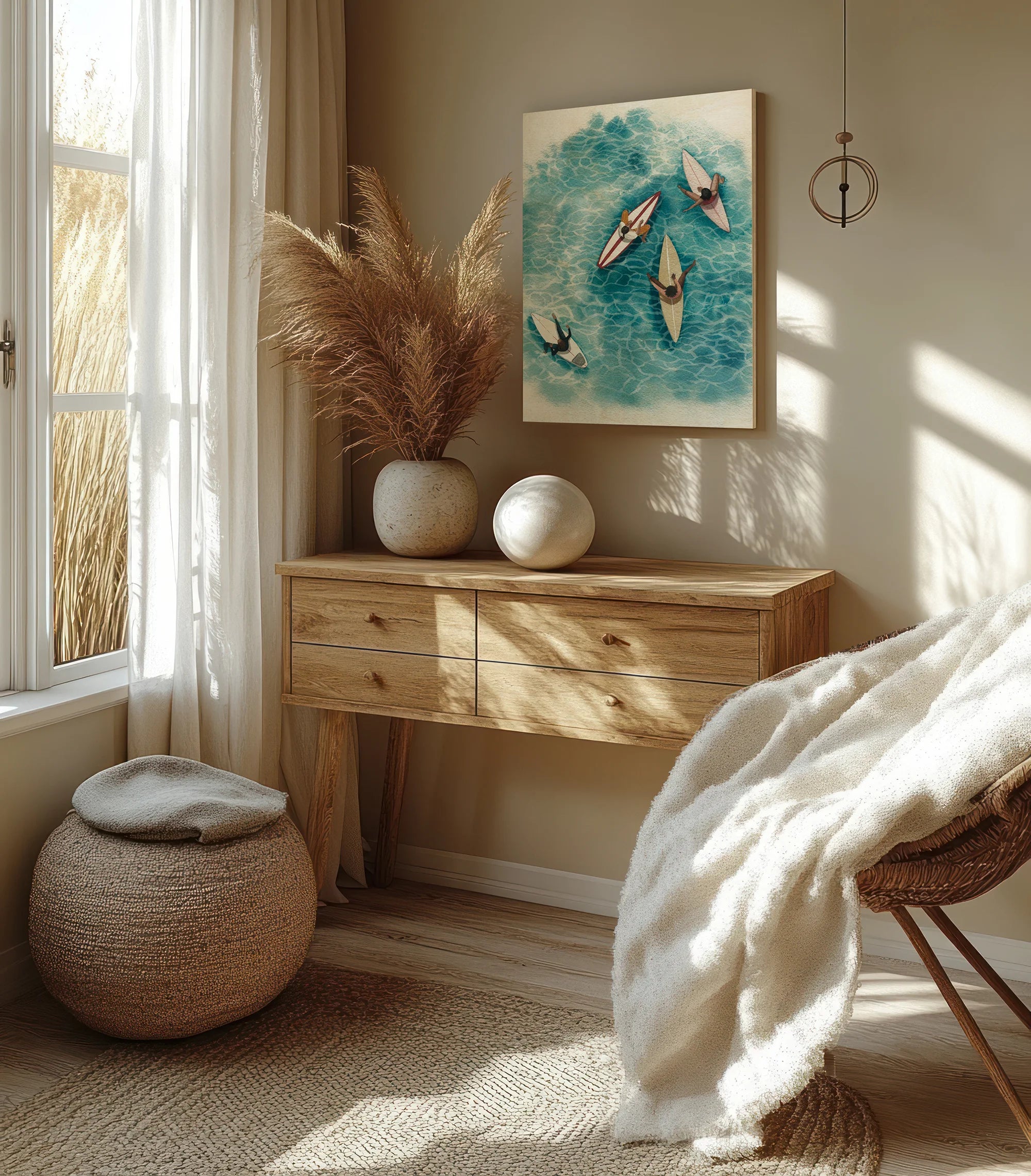 Waiting on the Wave II by Grace Popp is an abstract art print that adds depth and warmth to contemporary home décor. A versatile statement piece, perfect for living spaces, bedrooms, or creative interiors. Printed on premium 12mm Italian Poplar Plywood – finished & printed in Britain.