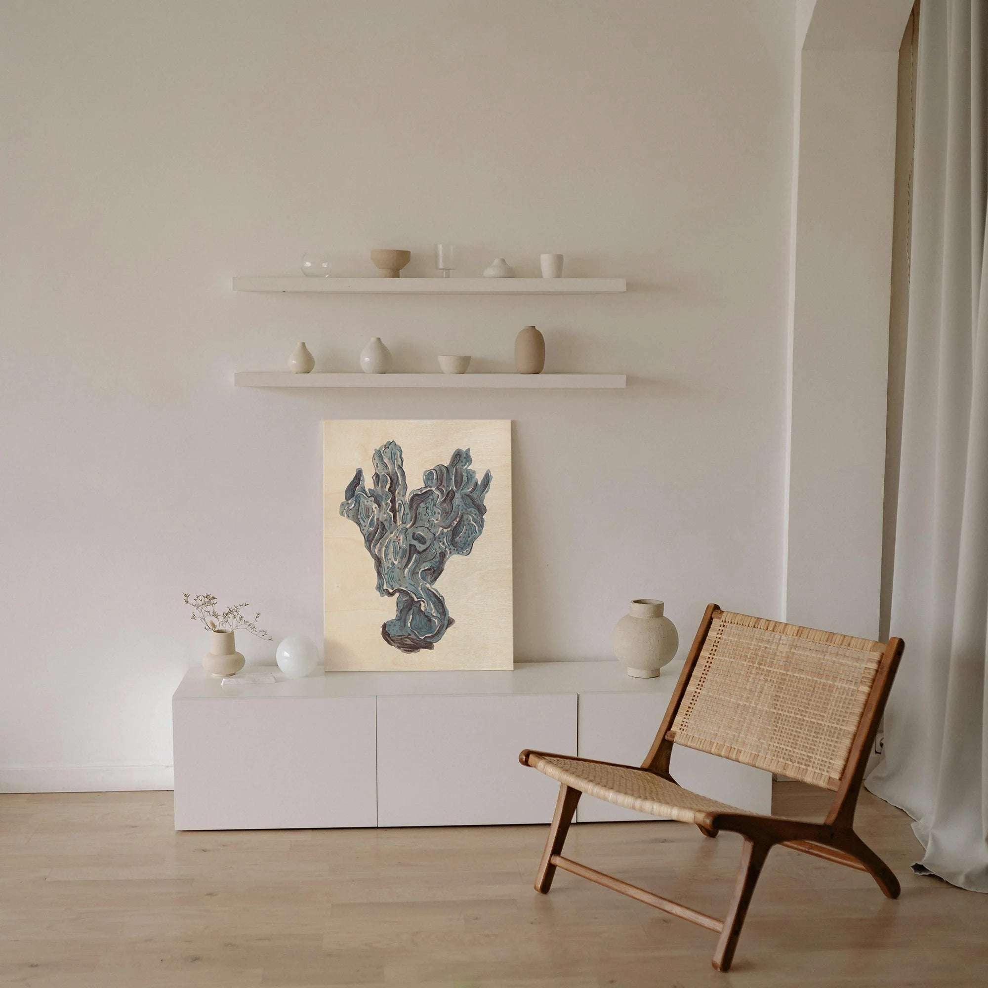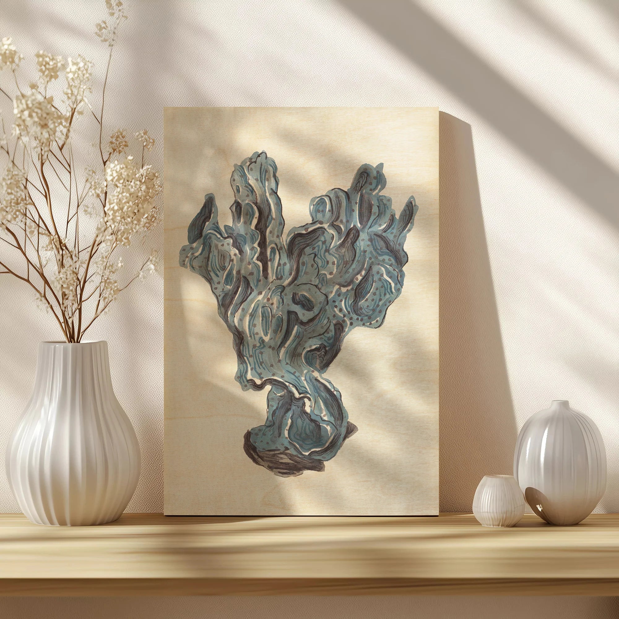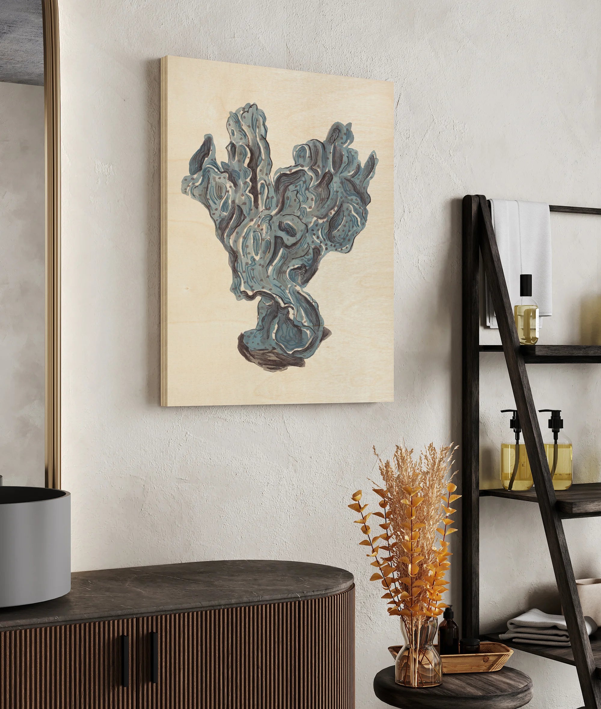 Indigo Reef II by Melissa Wang is an abstract art print that adds depth and warmth to contemporary home décor. A versatile statement piece, perfect for living spaces, bedrooms, or creative interiors. Printed on premium 12mm Italian Poplar Plywood – finished & printed in Britain.