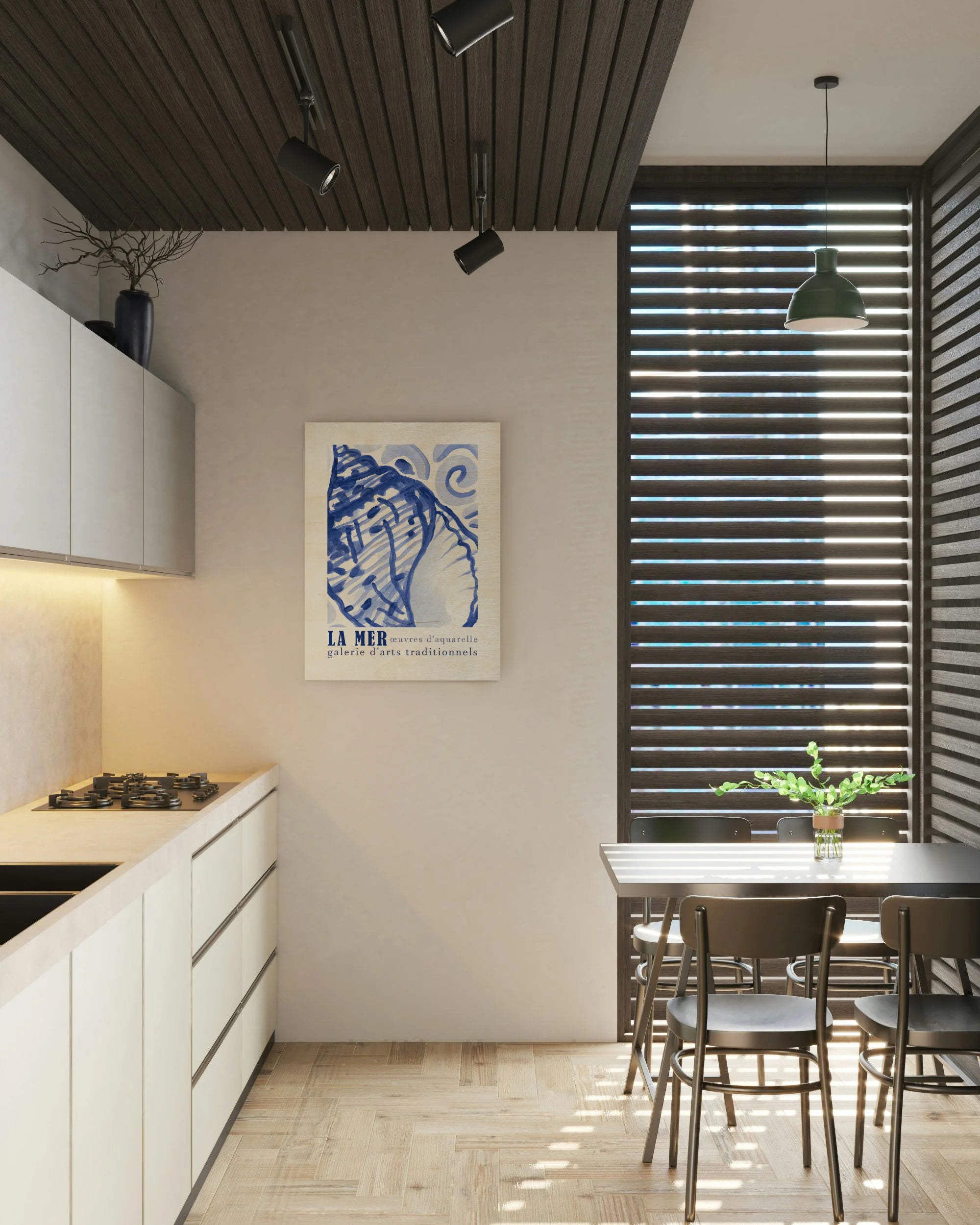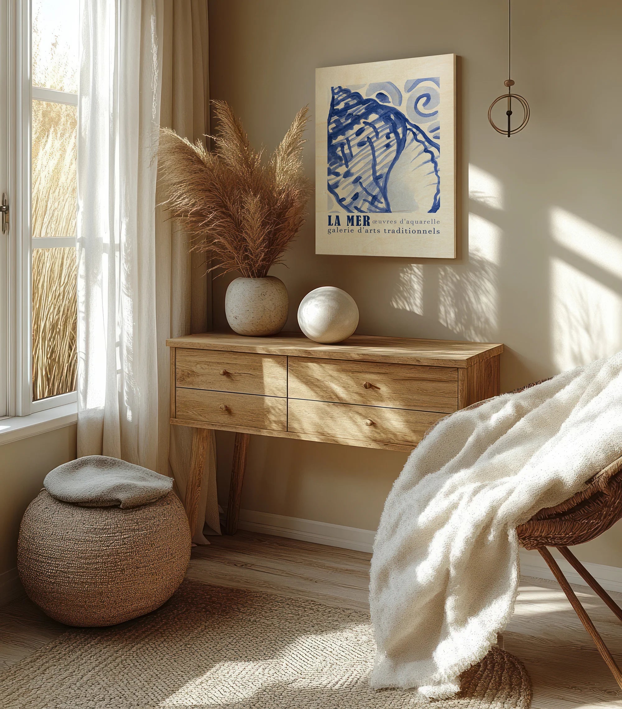 La Mer Exhibition Poster I by June Erica Vess is an abstract art print that adds depth and warmth to contemporary home décor. A versatile statement piece, perfect for living spaces, bedrooms, or creative interiors. Printed on premium 12mm Italian Poplar Plywood – finished & printed in Britain.