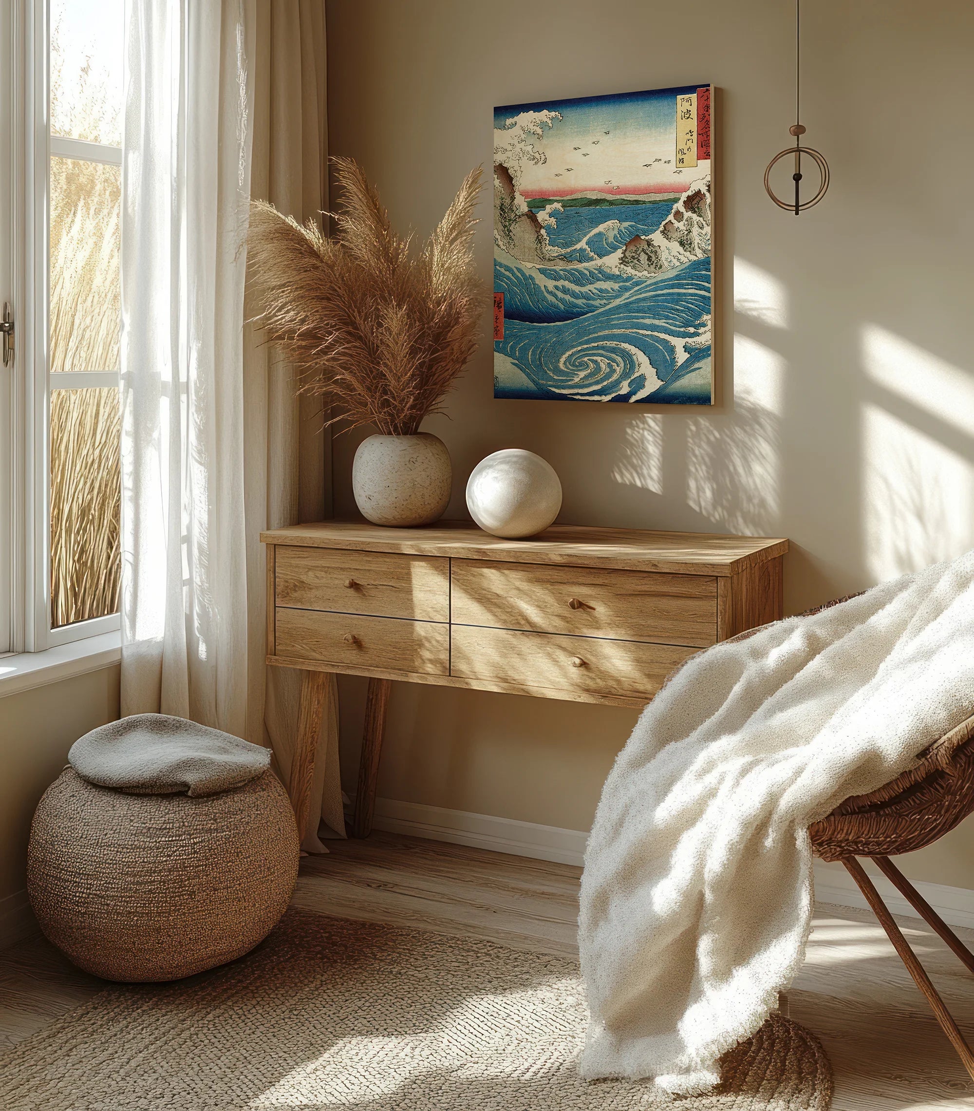 Whirlpools Print by Hiroshige is an abstract art print that adds depth and warmth to contemporary home décor. A versatile statement piece, perfect for living spaces, bedrooms, or creative interiors. Printed on premium 12mm Italian Poplar Plywood – finished & printed in Britain.