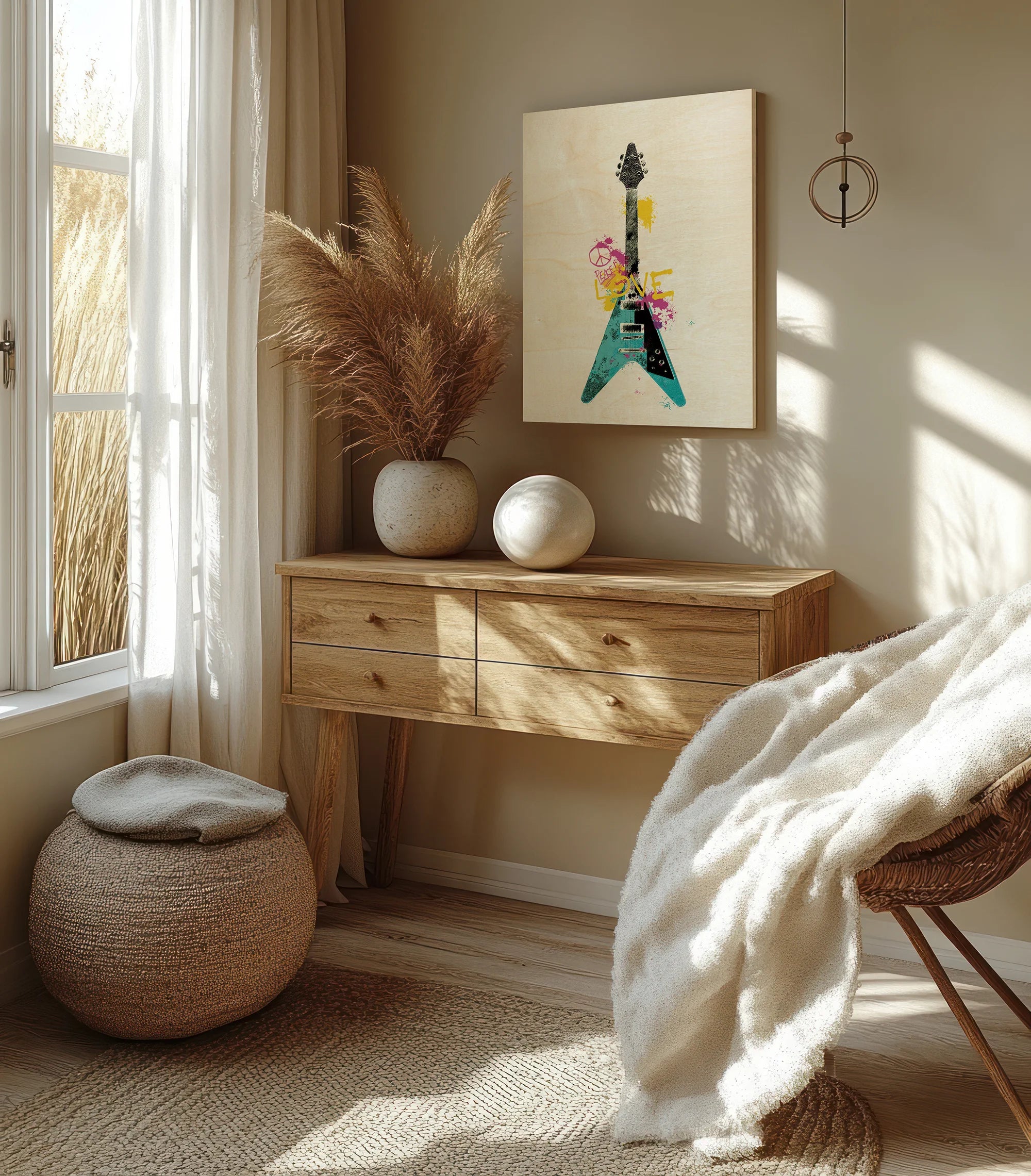 Garage Band III Graffiti Print by Mike Schick is an abstract art print that adds depth and warmth to contemporary home décor. A versatile statement piece, perfect for living spaces, bedrooms, or creative interiors. Printed on premium 12mm Italian Poplar Plywood – finished & printed in Britain.