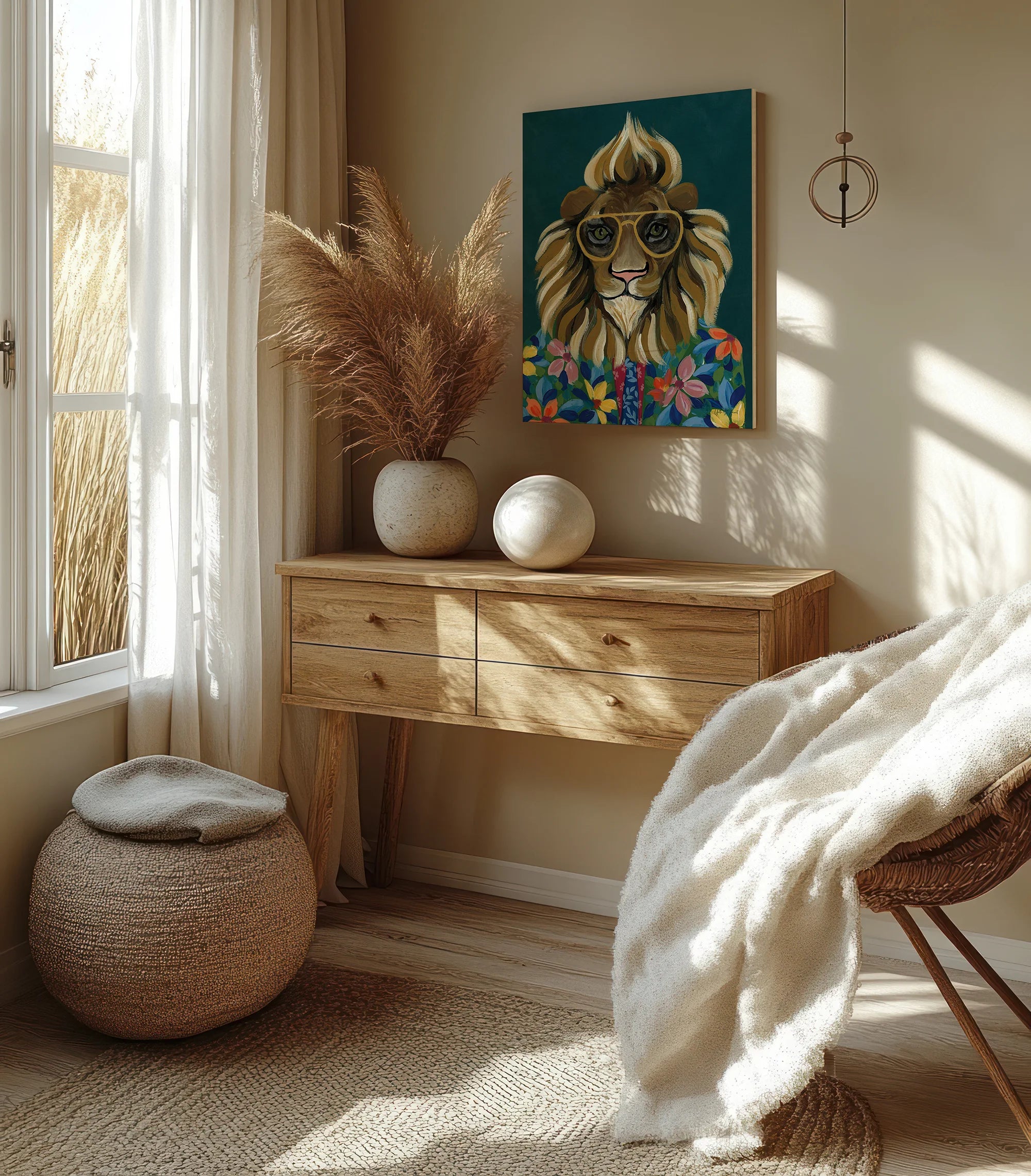 Miami Living Lion Portrait II Print by Yvette St. Amant is an abstract art print that adds depth and warmth to contemporary home décor. A versatile statement piece, perfect for living spaces, bedrooms, or creative interiors. Printed on premium 12mm Italian Poplar Plywood – finished & printed in Britain.