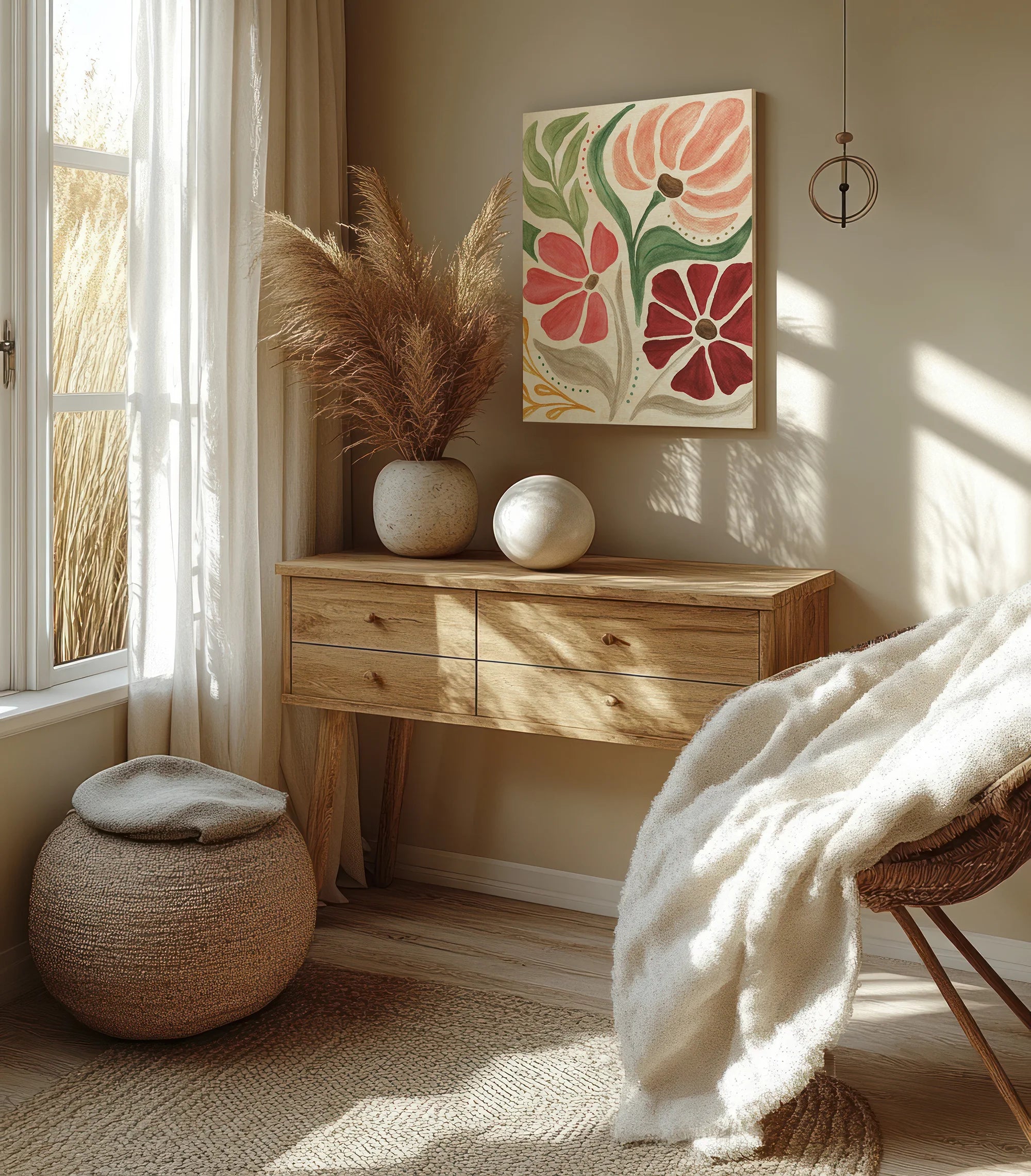 Modern Petals II Print by Veronique Charron is an abstract art print that adds depth and warmth to contemporary home décor. A versatile statement piece, perfect for living spaces, bedrooms, or creative interiors. Printed on premium 12mm Italian Poplar Plywood – finished & printed in Britain.