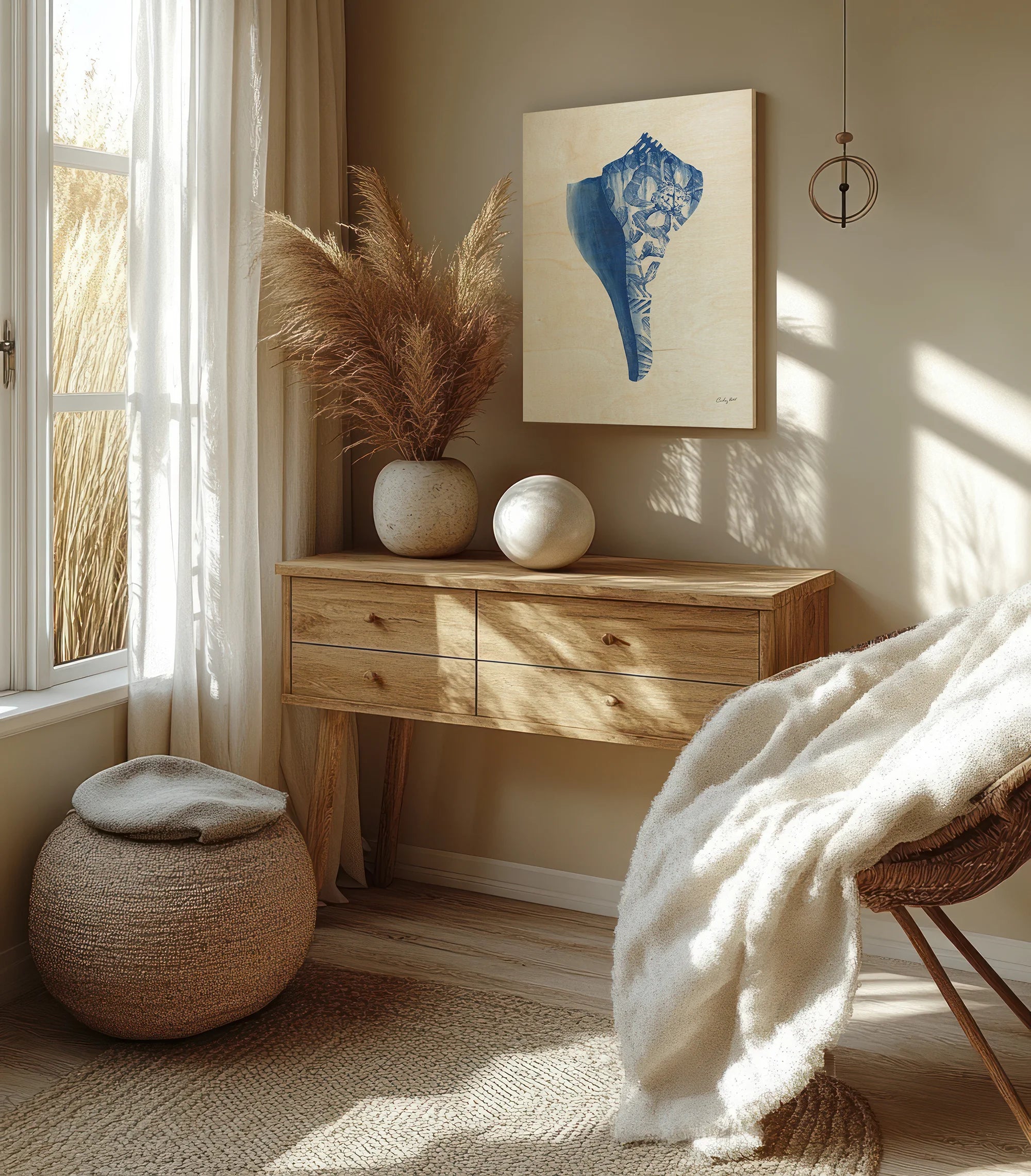 Chinoiserie Shells III Print by Courtney Prahl is an abstract art print that adds depth and warmth to contemporary home décor. A versatile statement piece, perfect for living spaces, bedrooms, or creative interiors. Printed on premium 12mm Italian Poplar Plywood – finished & printed in Britain.