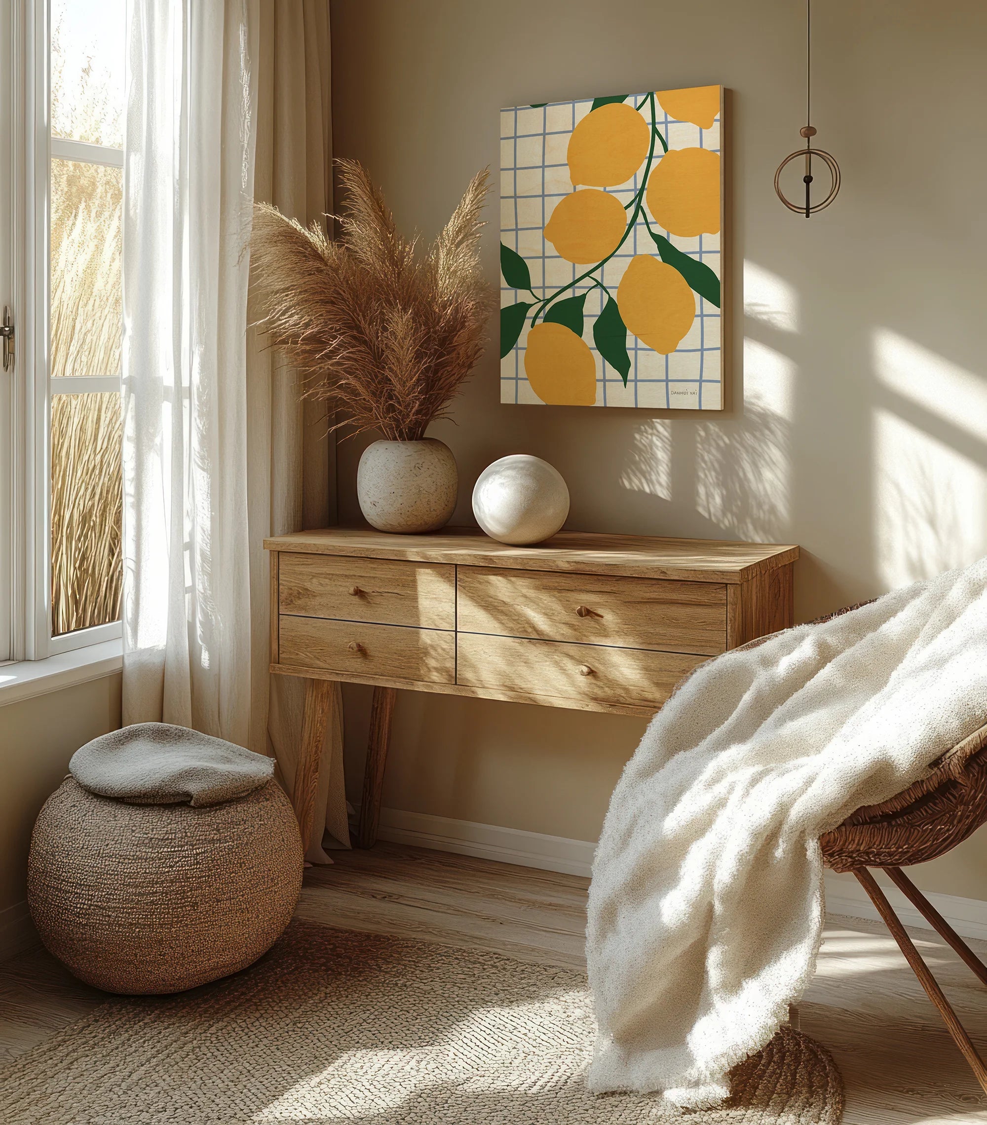 Kitchen Lemons Print by Danhui Nai is an abstract art print that adds depth and warmth to contemporary home décor. A versatile statement piece, perfect for living spaces, bedrooms, or creative interiors. Printed on premium 12mm Italian Poplar Plywood – finished & printed in Britain.