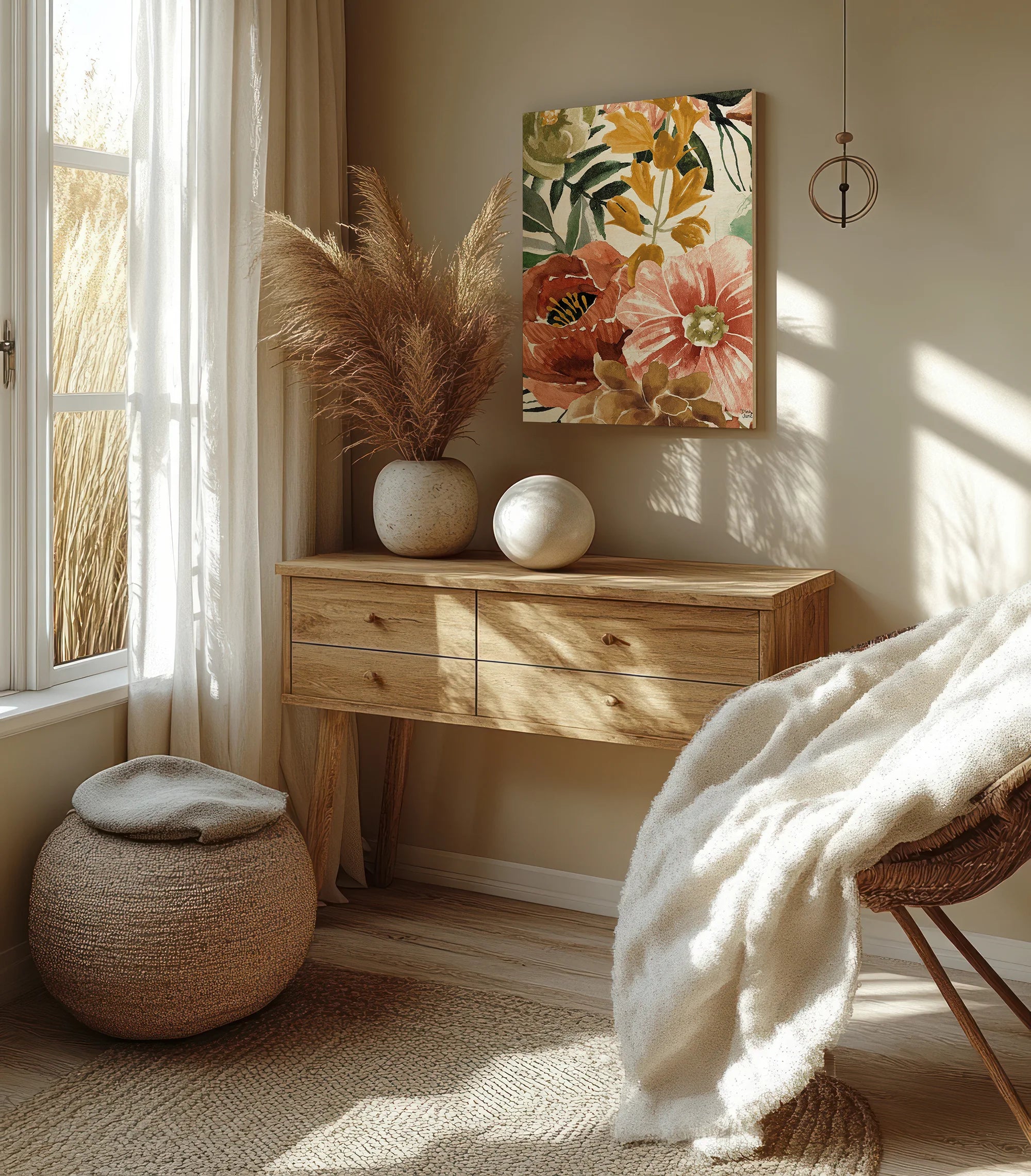 Mixed Floral Chic II Print by Dina June is an abstract art print that adds depth and warmth to contemporary home décor. A versatile statement piece, perfect for living spaces, bedrooms, or creative interiors. Printed on premium 12mm Italian Poplar Plywood – finished & printed in Britain.