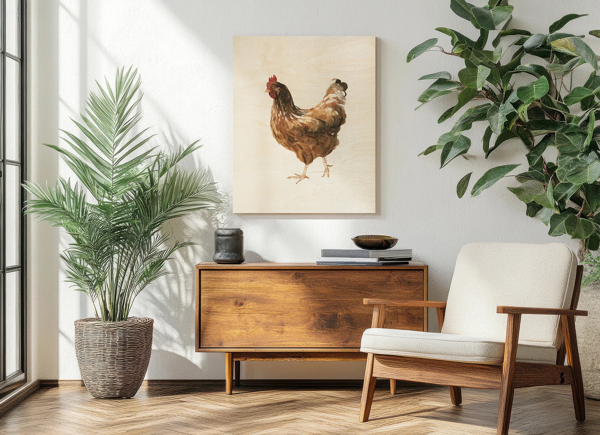 Autumn Chicken IV by Emma Scarvey is an abstract art print that adds depth and warmth to contemporary home décor. A versatile statement piece, perfect for living spaces, bedrooms, or creative interiors. Printed on premium 12mm Italian Poplar Plywood – finished & printed in Britain.