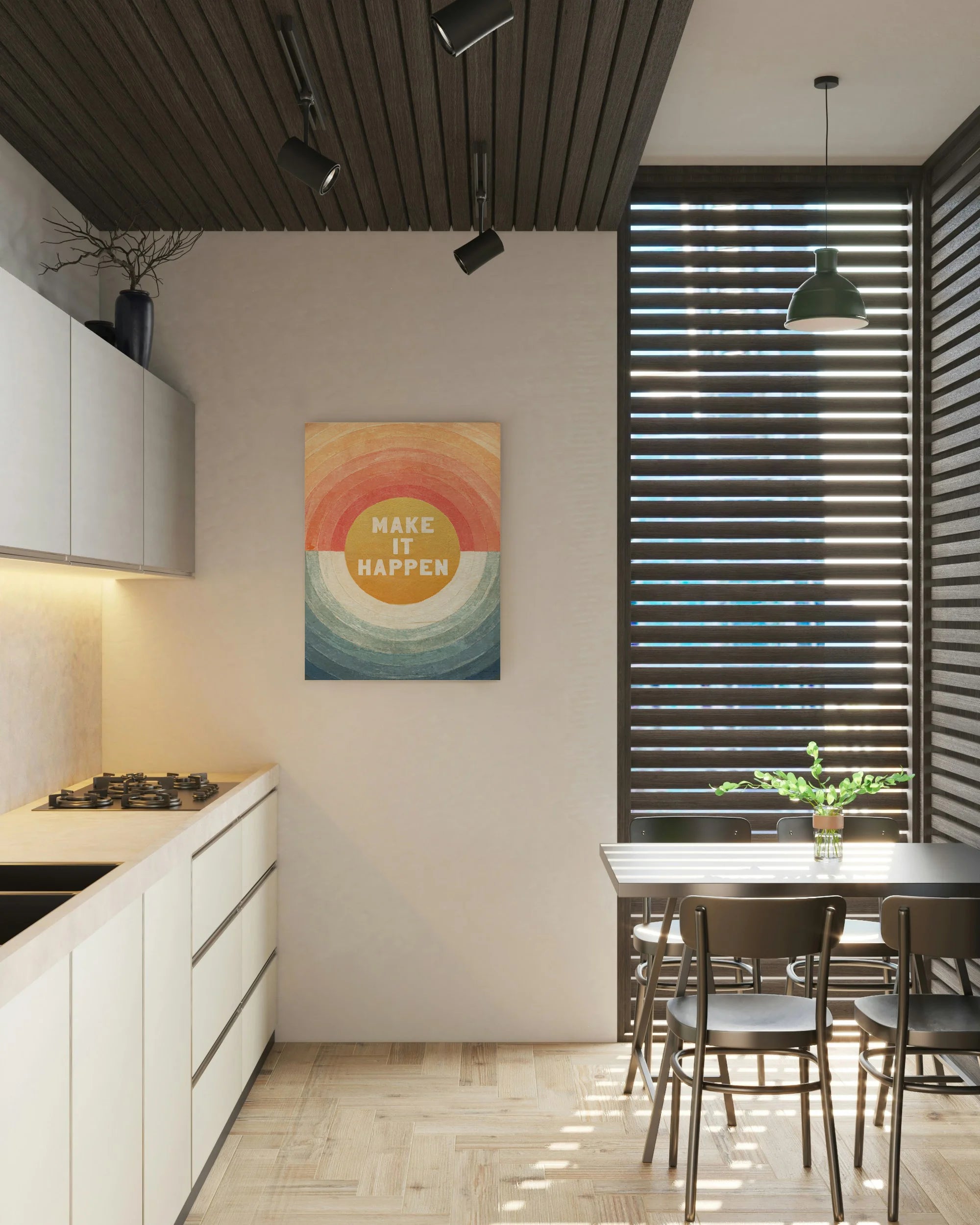 Retro Vibes Make it Happen Print by Danhui Nai is an abstract art print that adds depth and warmth to contemporary home décor. A versatile statement piece, perfect for living spaces, bedrooms, or creative interiors. Printed on premium 12mm Italian Poplar Plywood – finished & printed in Britain.