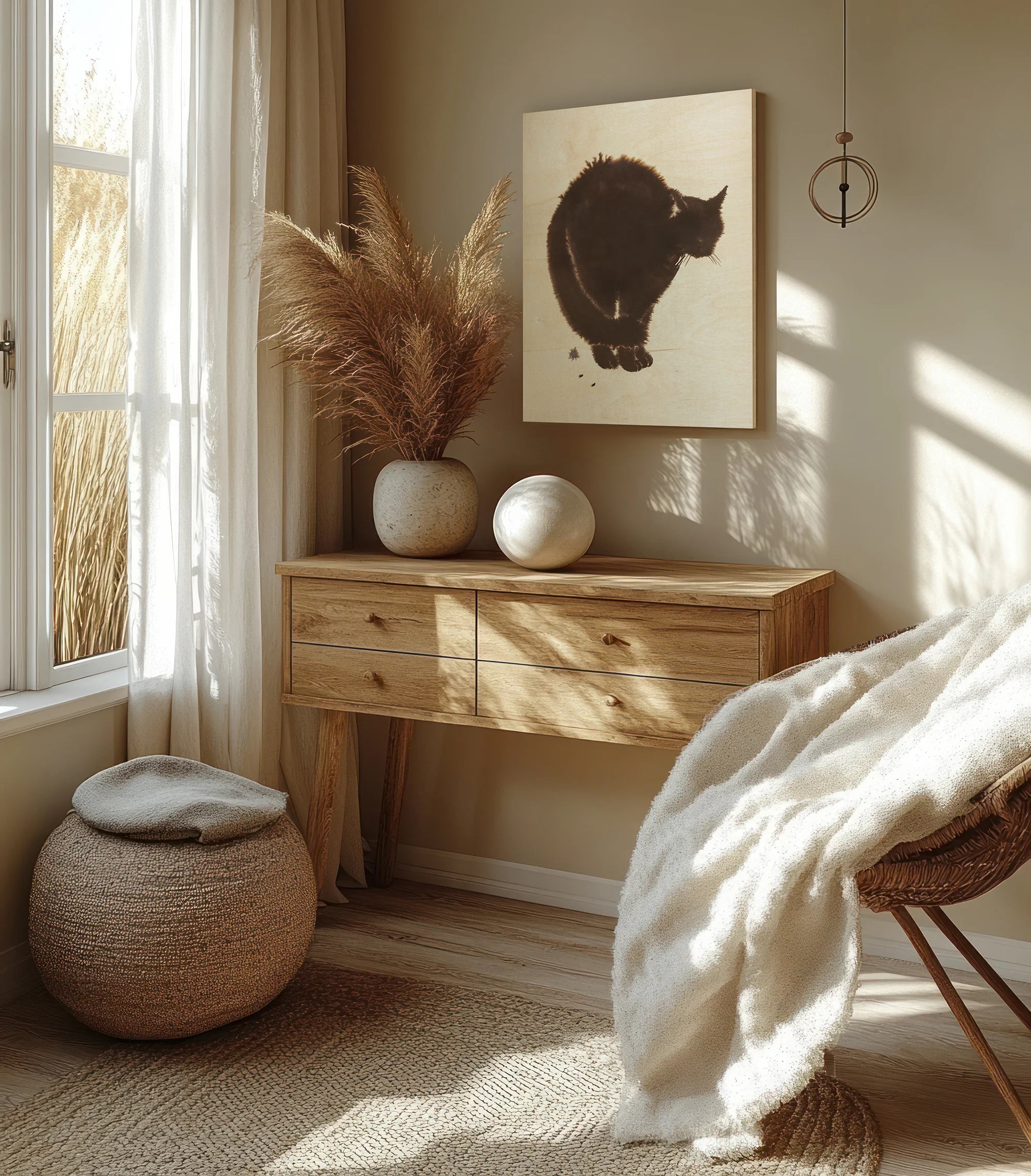 Black Cat Dream I by Grace Popp is an abstract art print that adds depth and warmth to contemporary home décor. A versatile statement piece, perfect for living spaces, bedrooms, or creative interiors. Printed on premium 12mm Italian Poplar Plywood – finished & printed in Britain.
