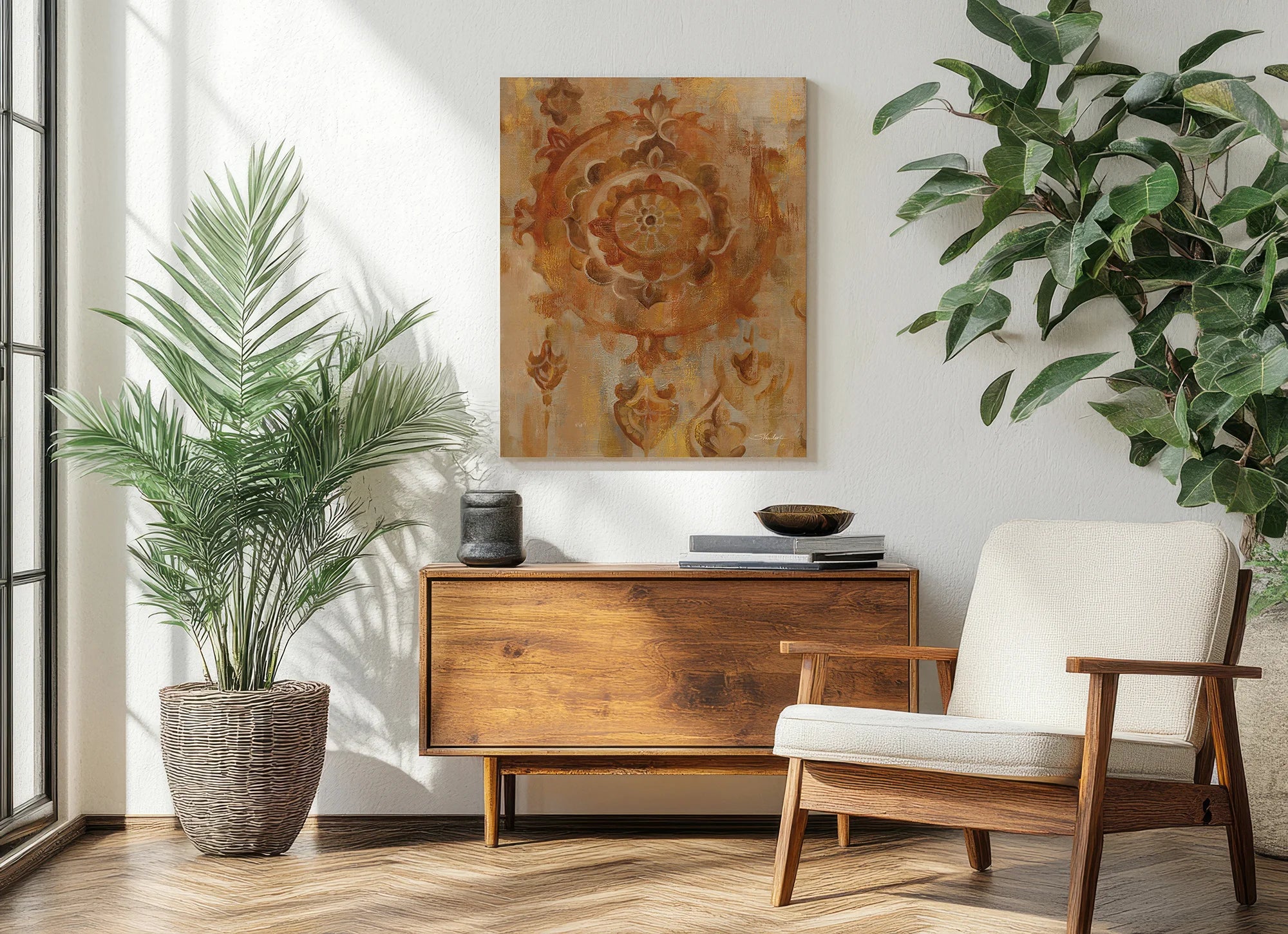 Old World Motif Print by Silvia Vassileva is an abstract art print that adds depth and warmth to contemporary home décor. A versatile statement piece, perfect for living spaces, bedrooms, or creative interiors. Printed on premium 12mm Italian Poplar Plywood – finished & printed in Britain.