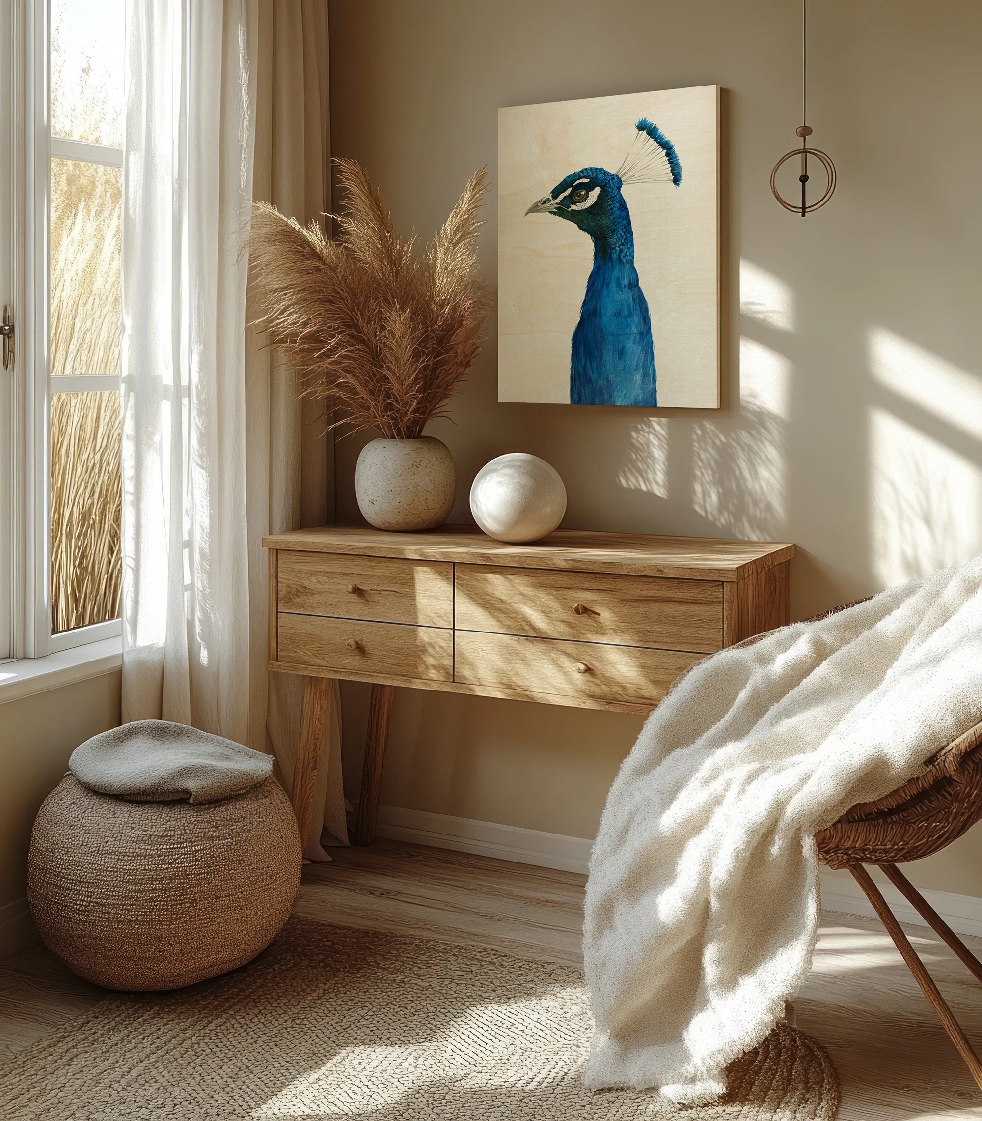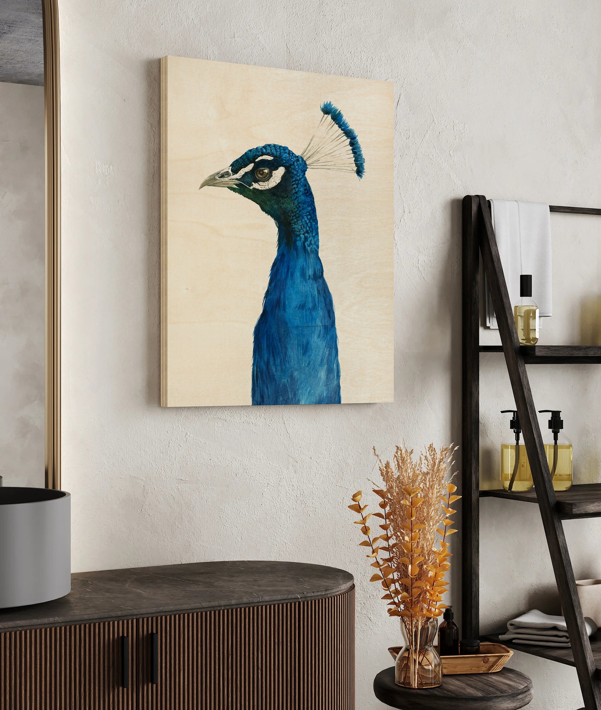 Peacock Portrait II by Grace Popp is an abstract art print that adds depth and warmth to contemporary home décor. A versatile statement piece, perfect for living spaces, bedrooms, or creative interiors. Printed on premium 12mm Italian Poplar Plywood – finished & printed in Britain.