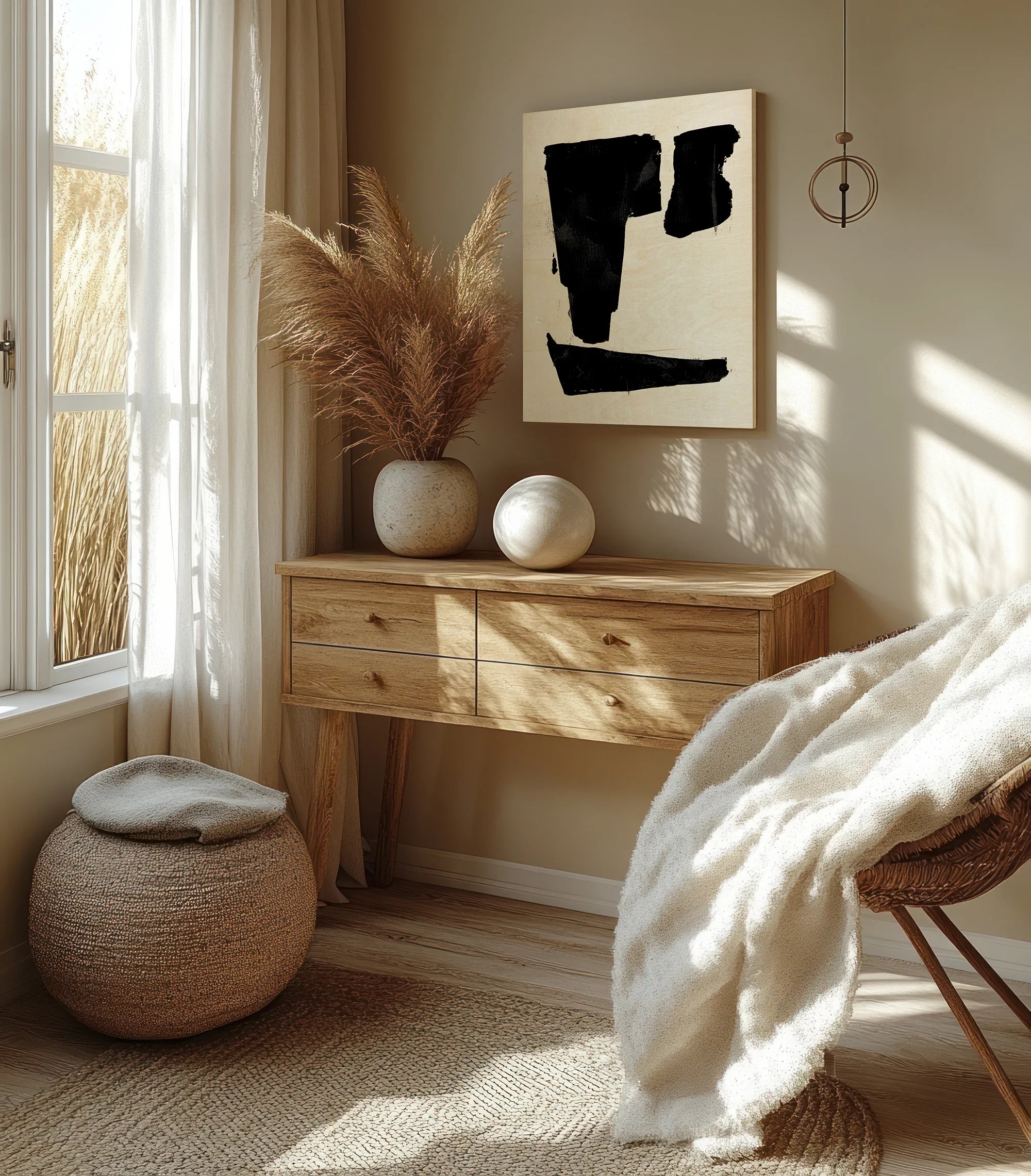 Triple Block Print I by Jacob Green is an abstract art print that adds depth and warmth to contemporary home décor. A versatile statement piece, perfect for living spaces, bedrooms, or creative interiors. Printed on premium 12mm Italian Poplar Plywood – finished & printed in Britain.