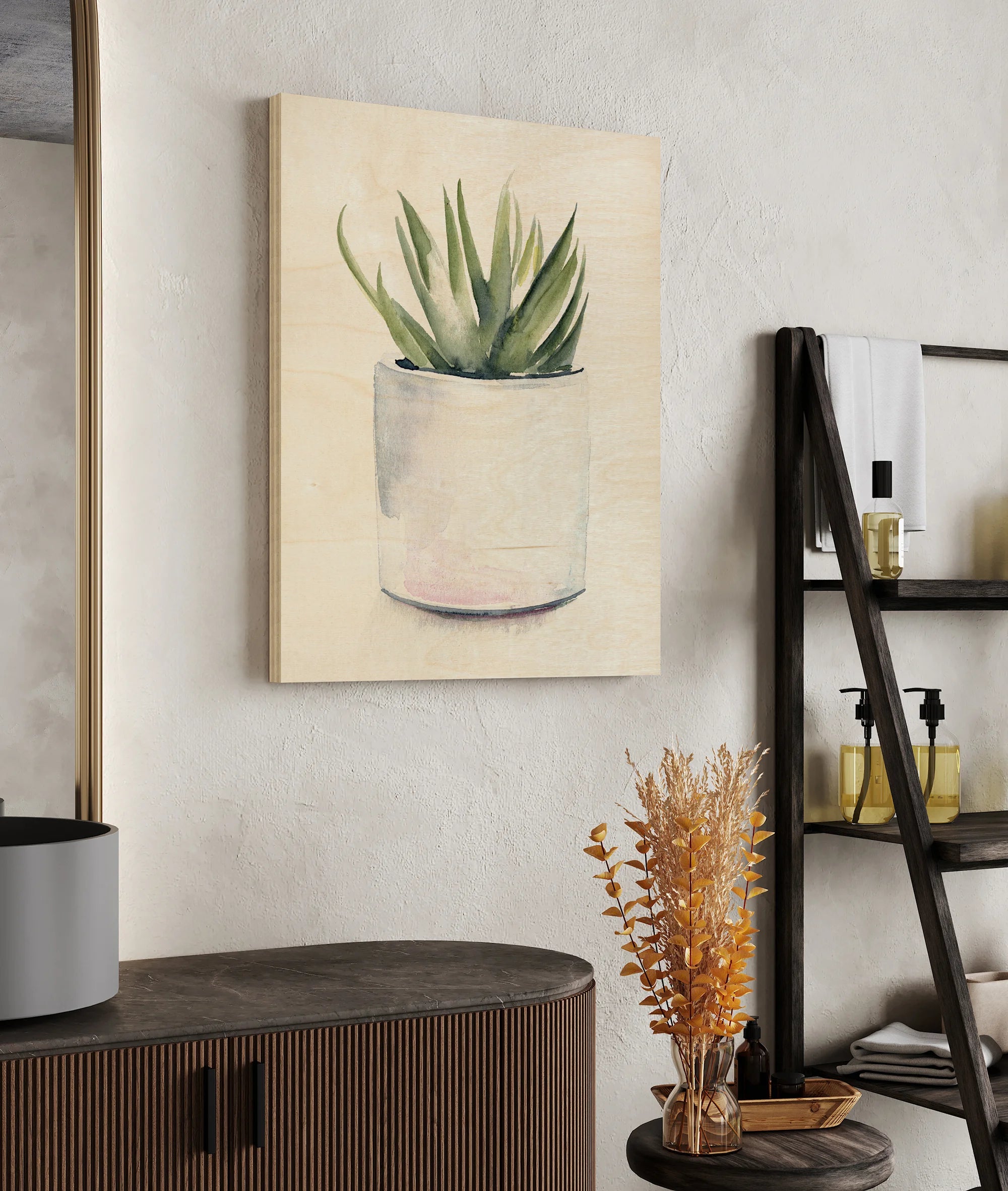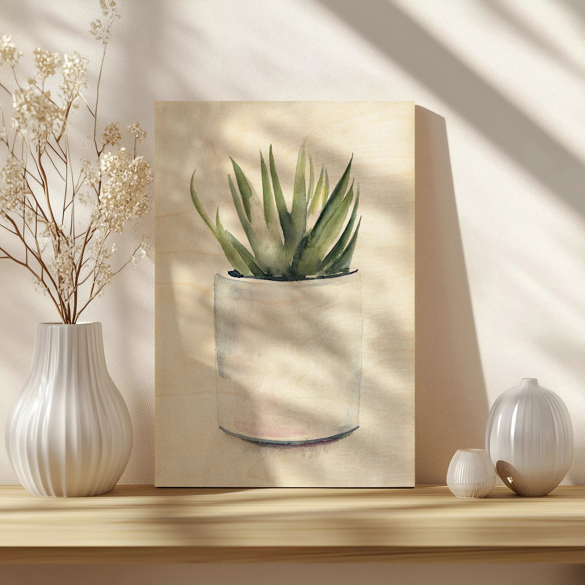 Potted Succulent III by Jennifer Paxton Parker is an abstract art print that adds depth and warmth to contemporary home décor. A versatile statement piece, perfect for living spaces, bedrooms, or creative interiors. Printed on premium 12mm Italian Poplar Plywood – finished & printed in Britain.