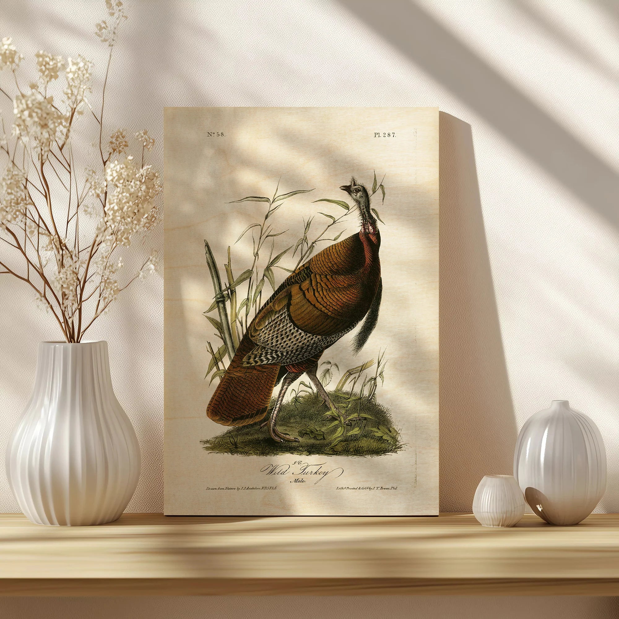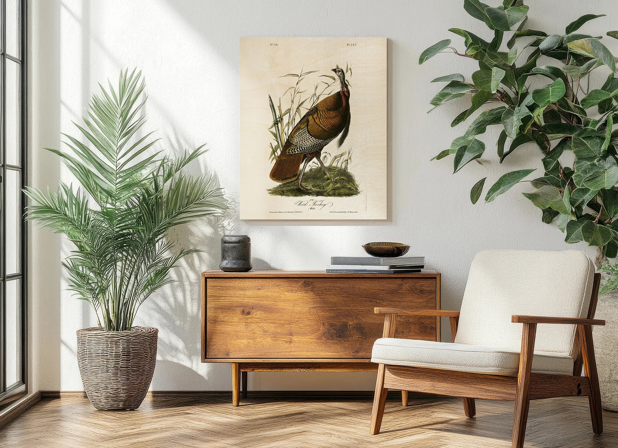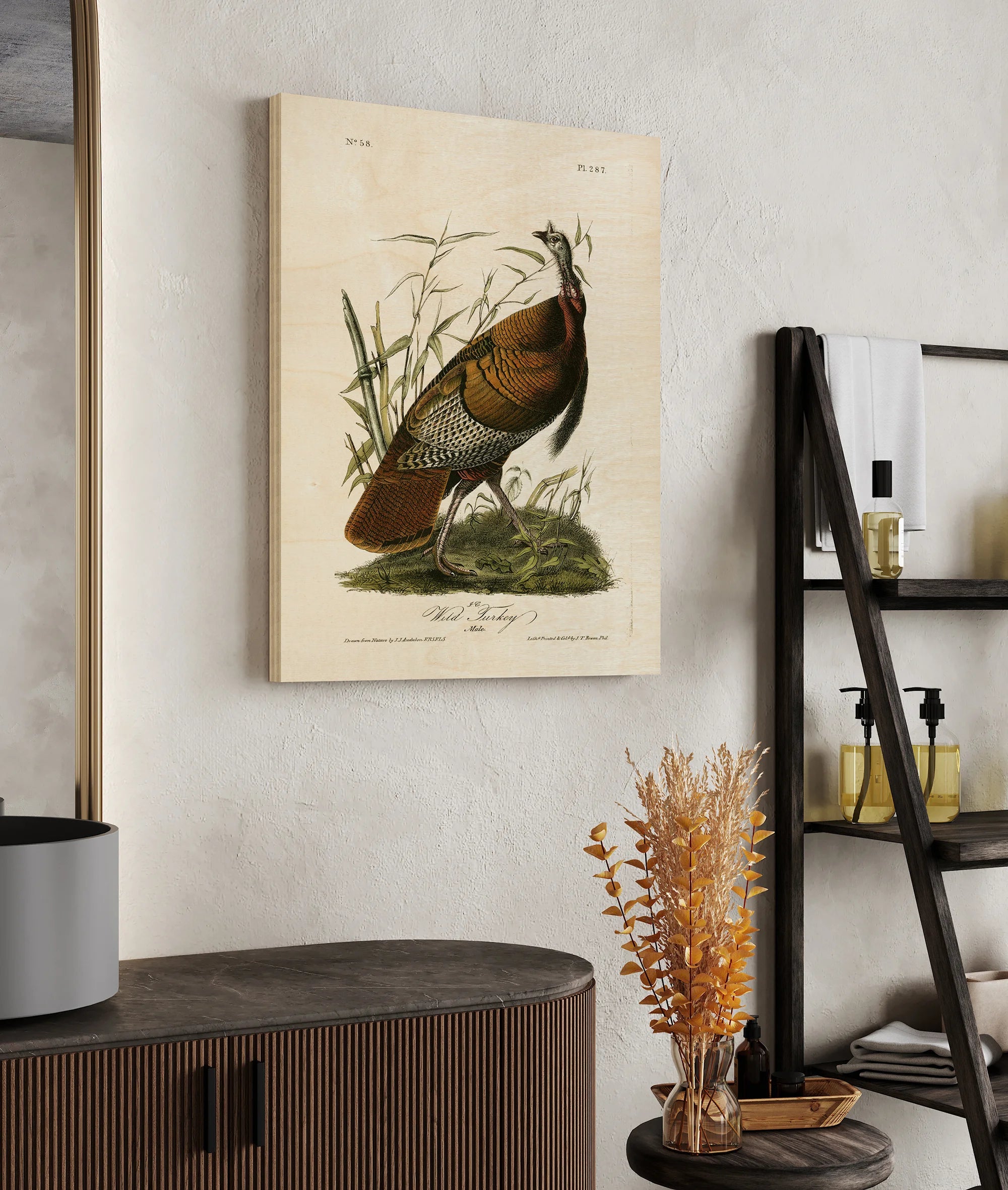 Audubon Wild Turkey by John James Audubon is an abstract art print that adds depth and warmth to contemporary home décor. A versatile statement piece, perfect for living spaces, bedrooms, or creative interiors. Printed on premium 12mm Italian Poplar Plywood – finished & printed in Britain.