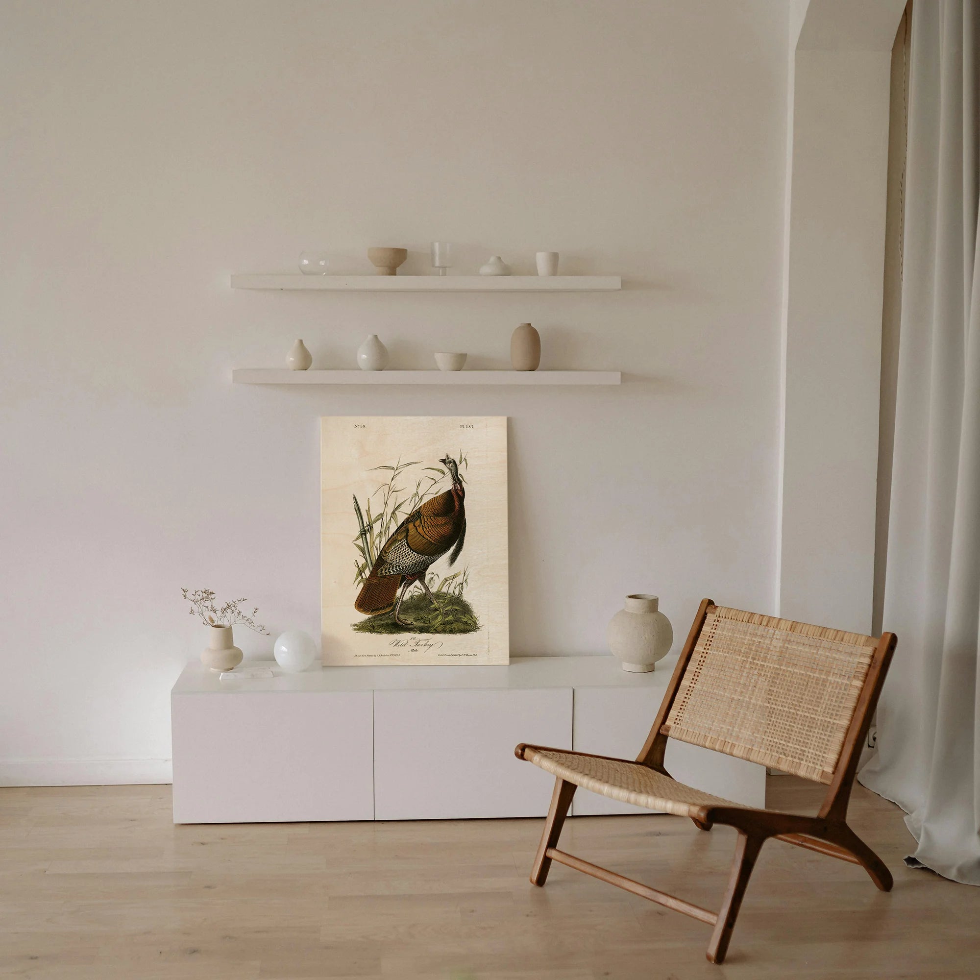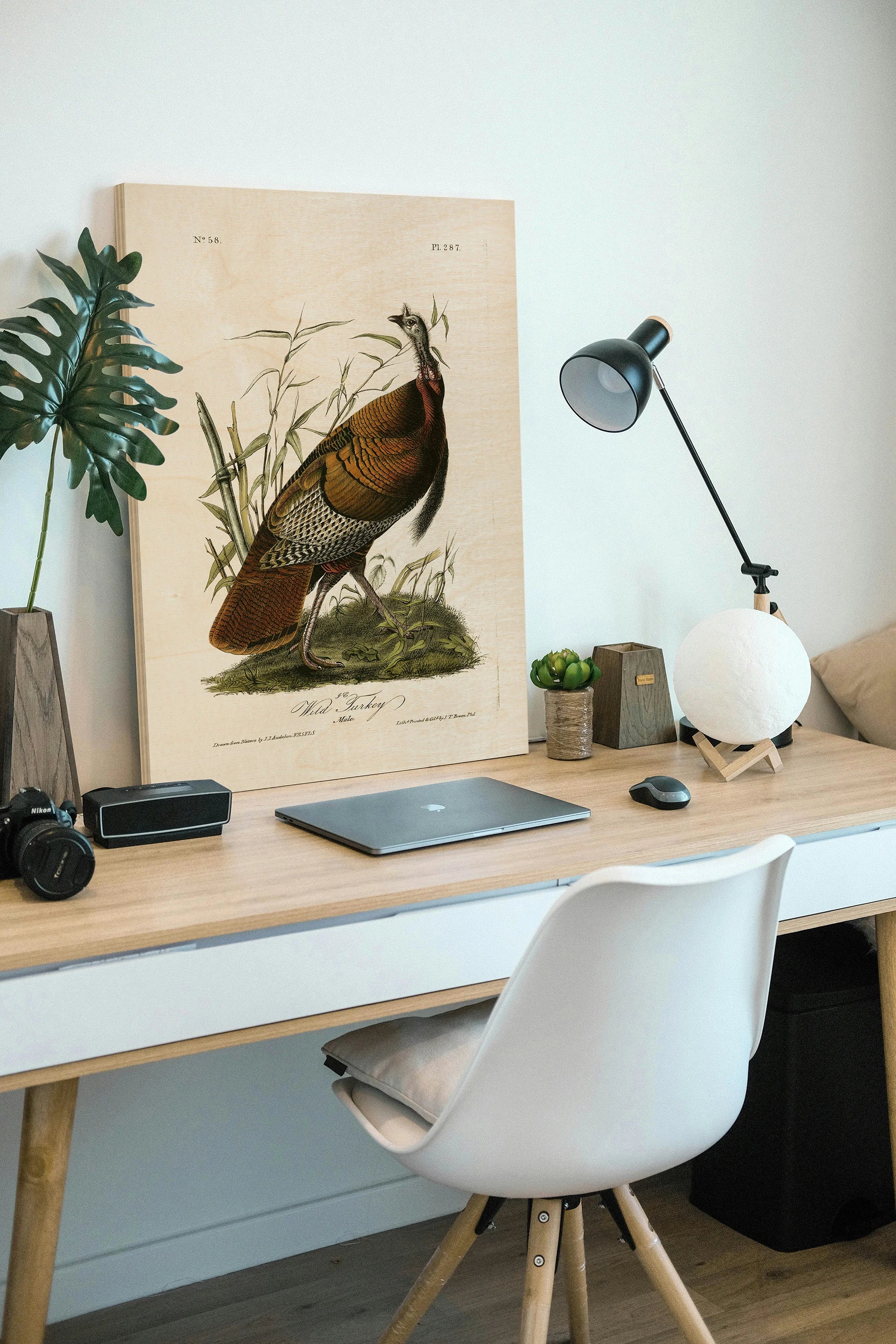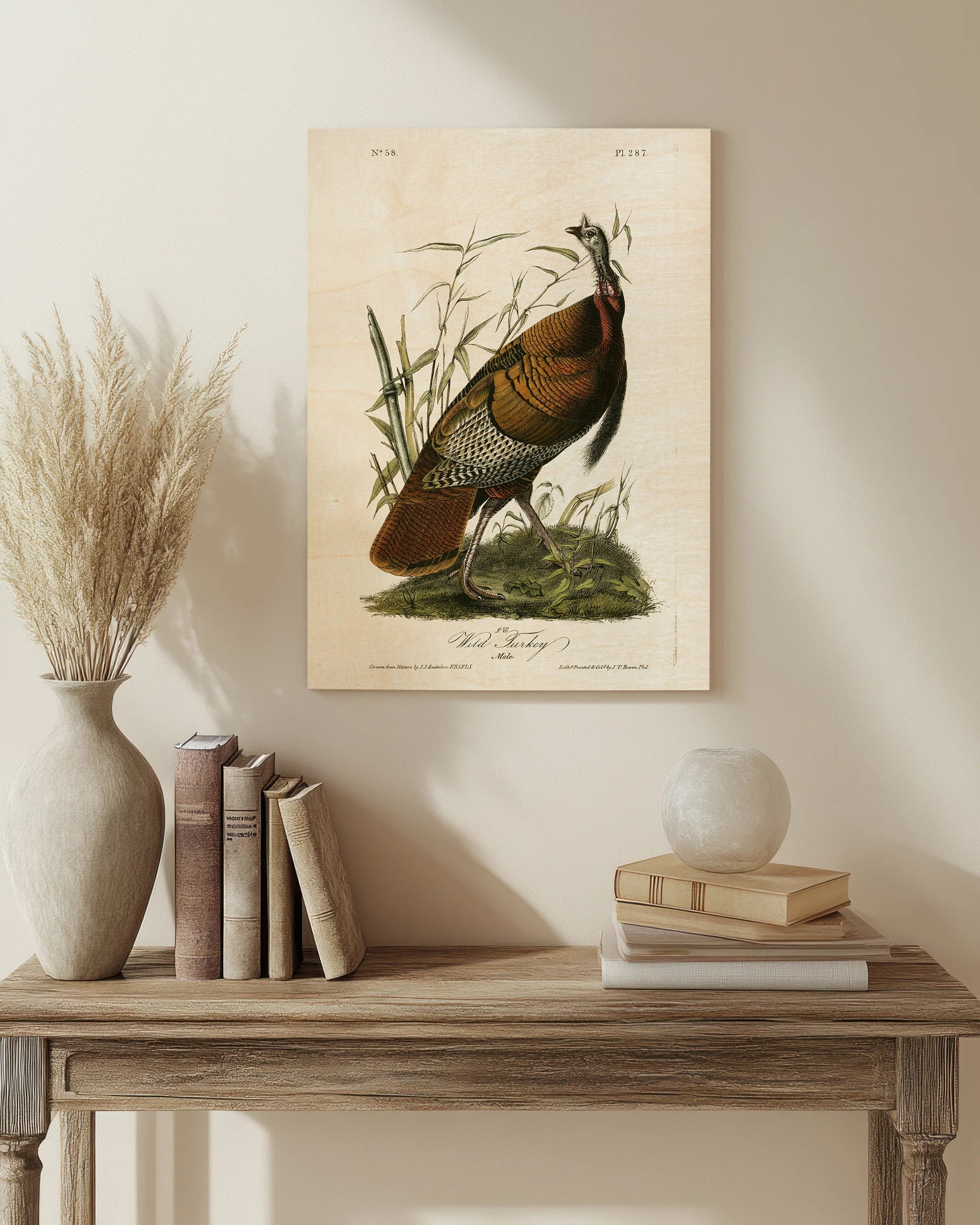 Audubon Wild Turkey by John James Audubon is an abstract art print that adds depth and warmth to contemporary home décor. A versatile statement piece, perfect for living spaces, bedrooms, or creative interiors. Printed on premium 12mm Italian Poplar Plywood – finished & printed in Britain.