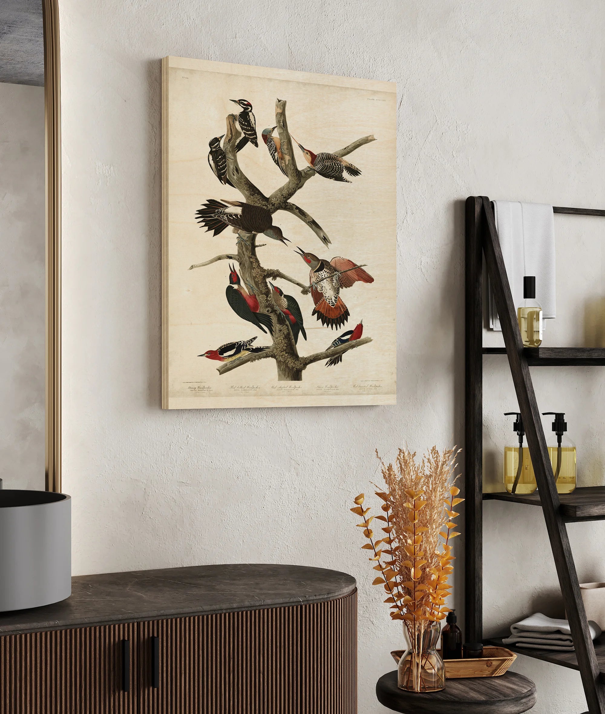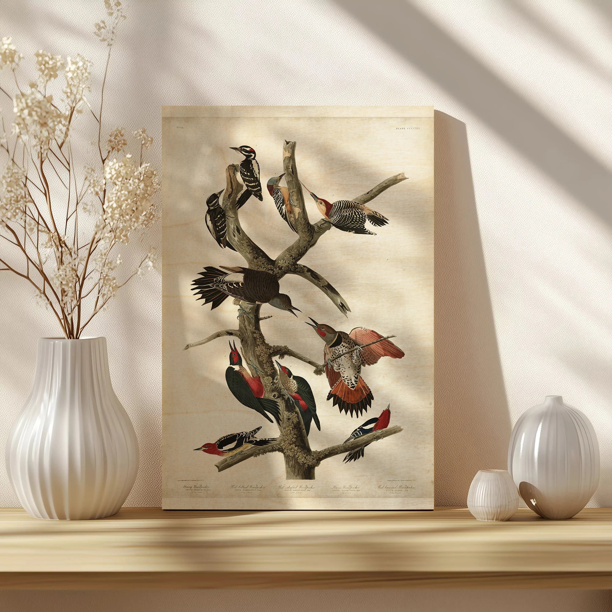 Pl. 416 Hairy Woodpecker by John James Audubon is an abstract art print that adds depth and warmth to contemporary home décor. A versatile statement piece, perfect for living spaces, bedrooms, or creative interiors. Printed on premium 12mm Italian Poplar Plywood – finished & printed in Britain.