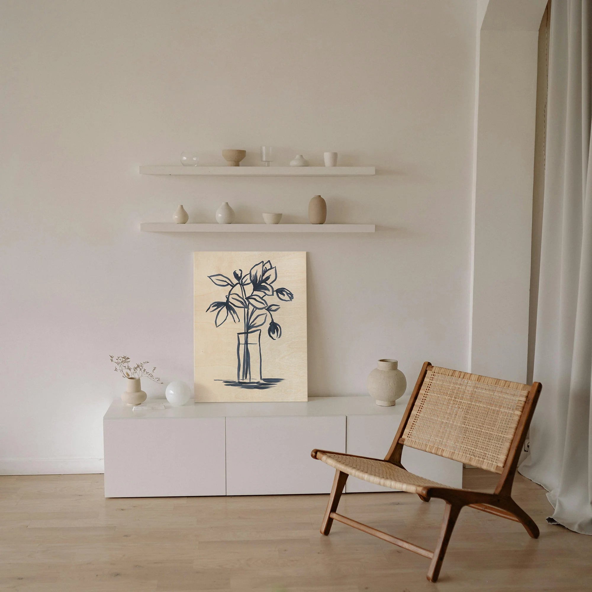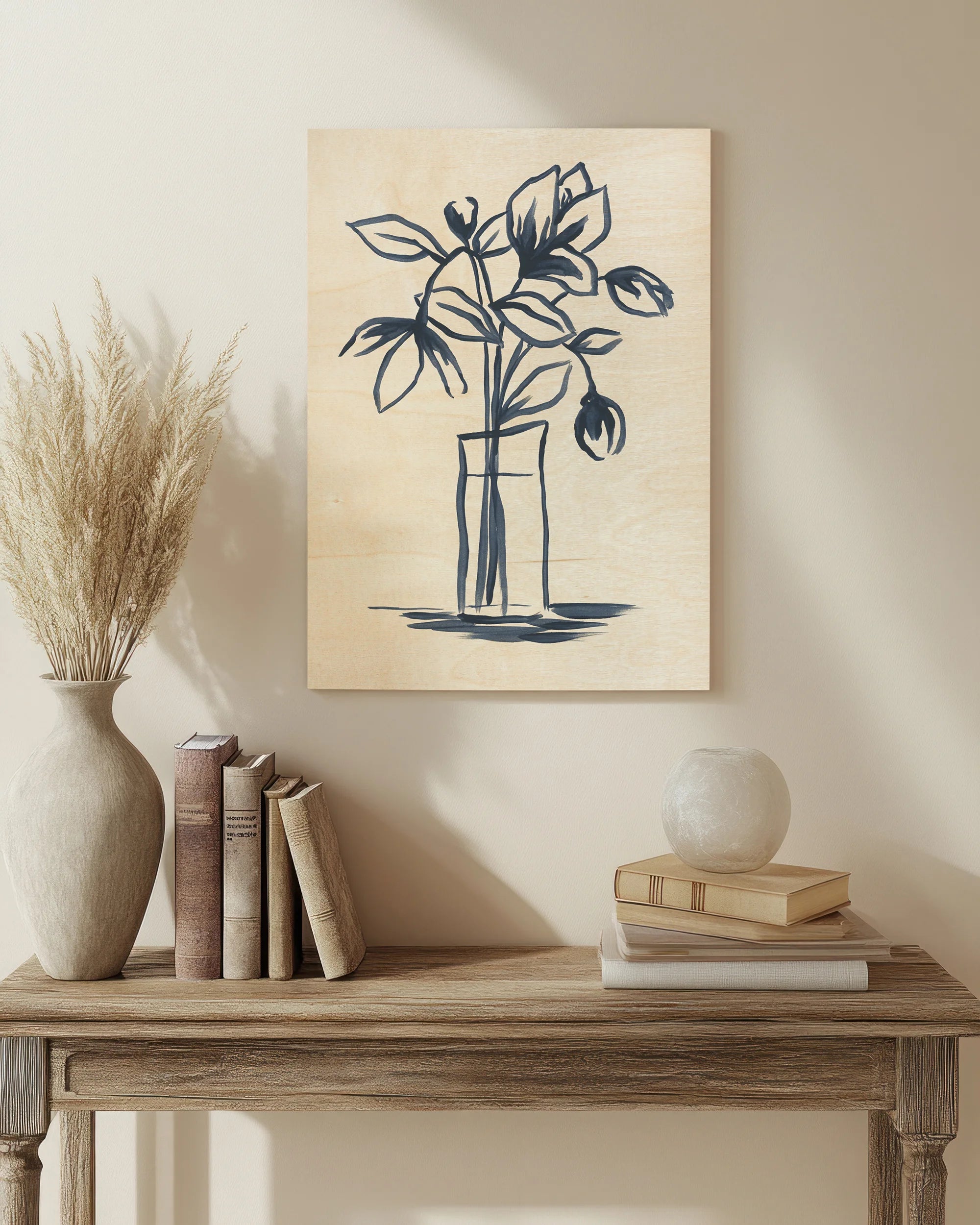 Indigo Bud Vase II by June Erica Vess is an abstract art print that adds depth and warmth to contemporary home décor. A versatile statement piece, perfect for living spaces, bedrooms, or creative interiors. Printed on premium 12mm Italian Poplar Plywood – finished & printed in Britain.