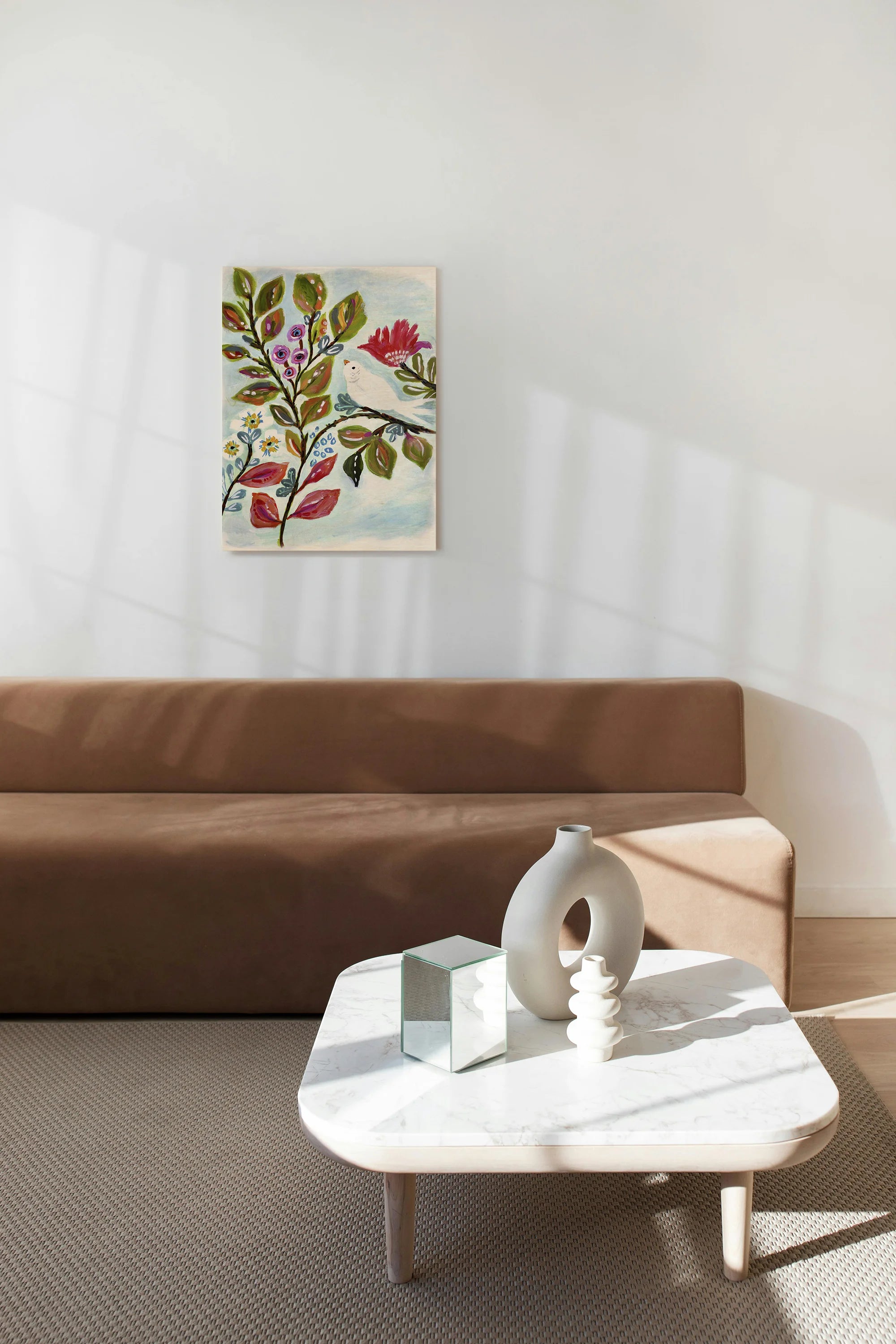 A Sweet Bird II by Karen Fields is an abstract art print that adds depth and warmth to contemporary home décor. A versatile statement piece, perfect for living spaces, bedrooms, or creative interiors. Printed on premium 12mm Italian Poplar Plywood – finished & printed in Britain.