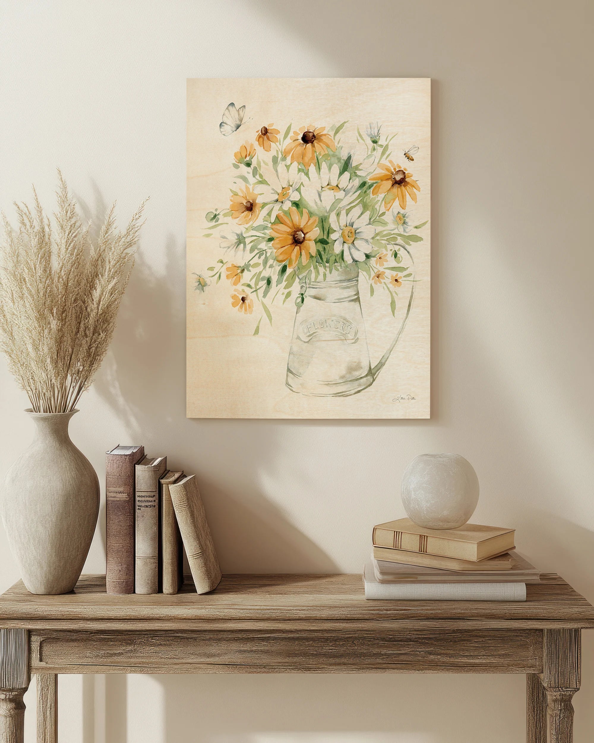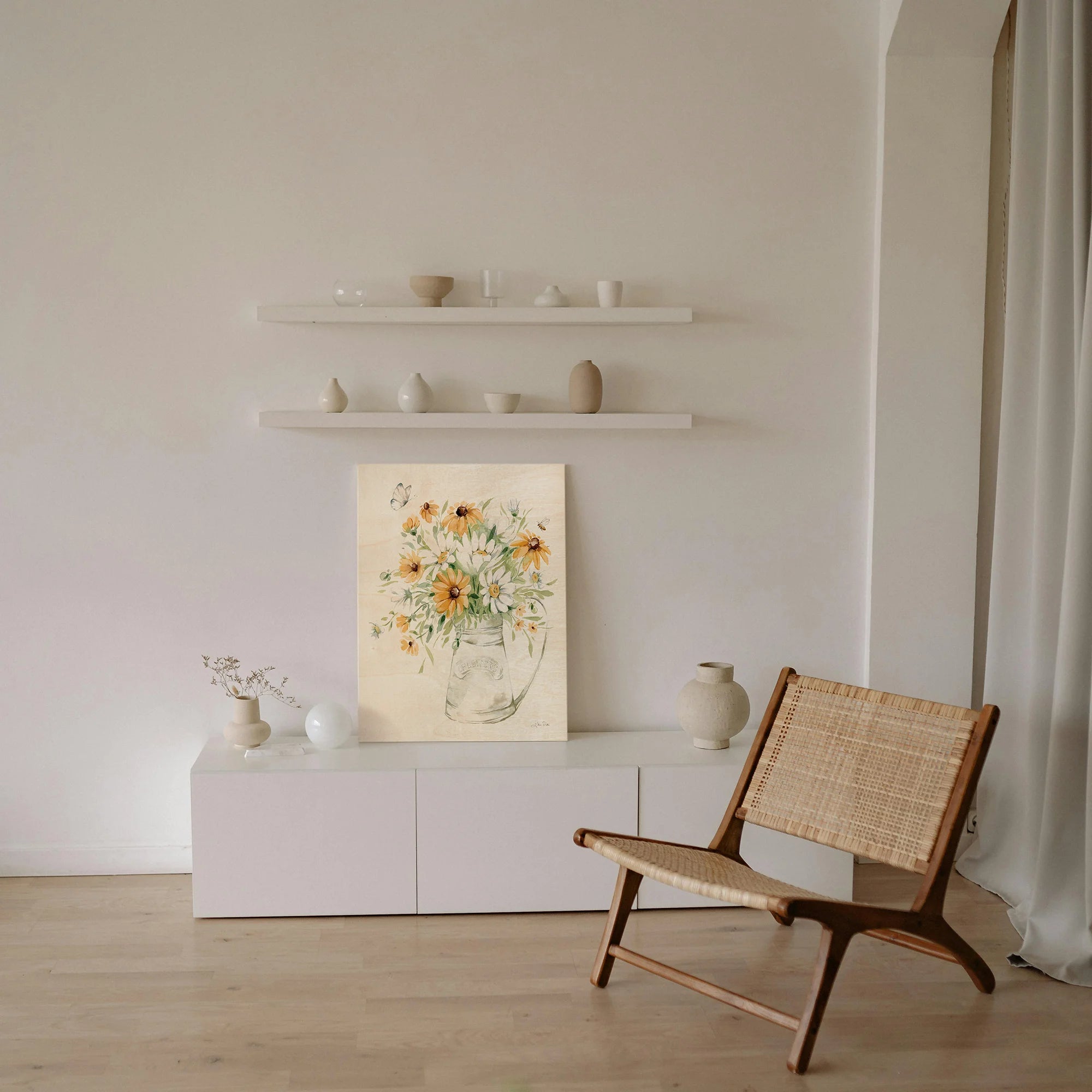 Sunflowers and Daisies II Print by Katrina Pete is an abstract art print that adds depth and warmth to contemporary home décor. A versatile statement piece, perfect for living spaces, bedrooms, or creative interiors. Printed on premium 12mm Italian Poplar Plywood – finished & printed in Britain.