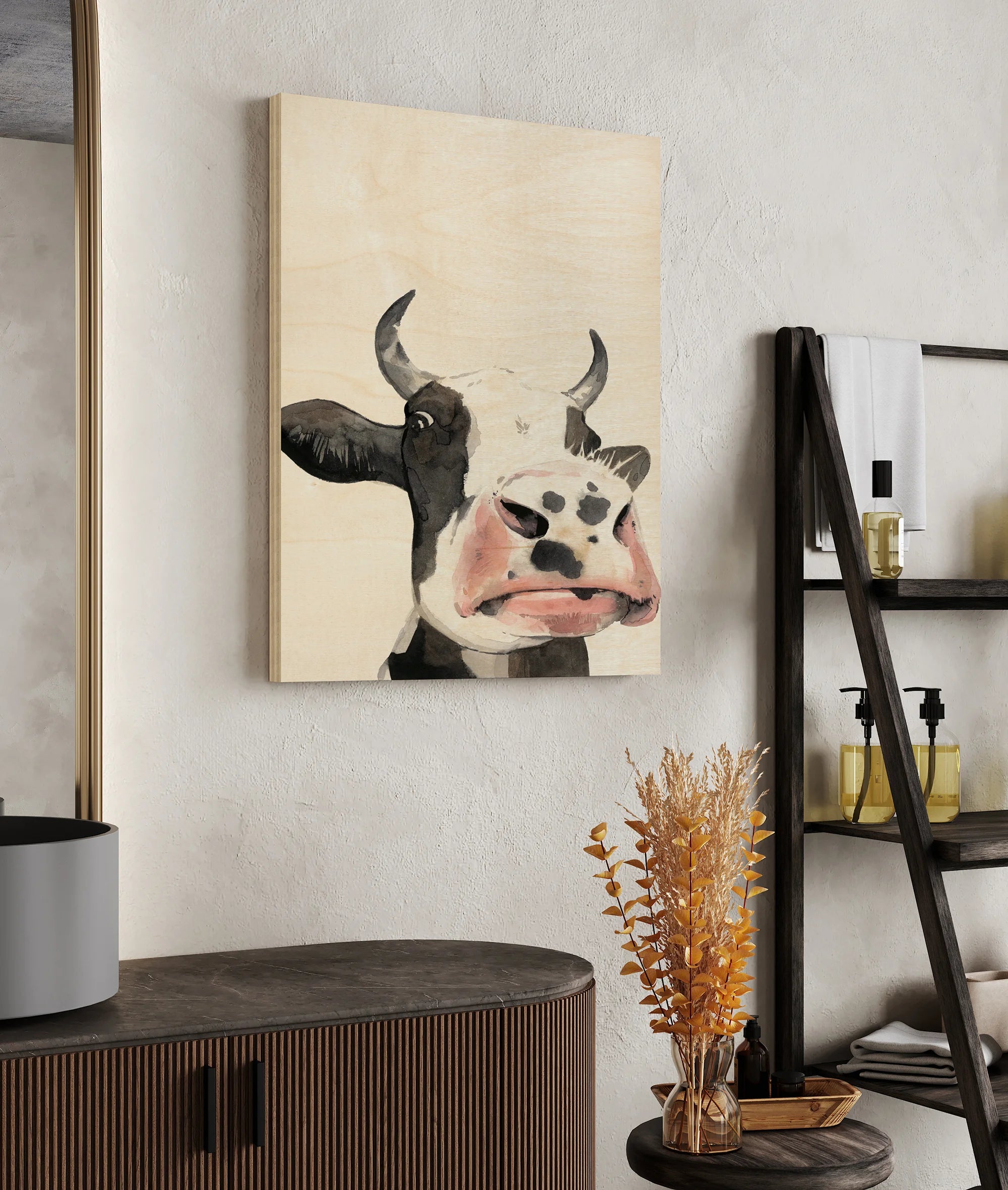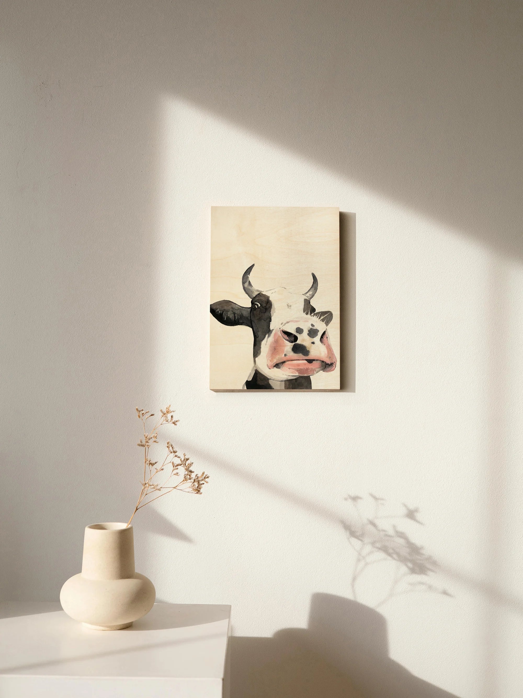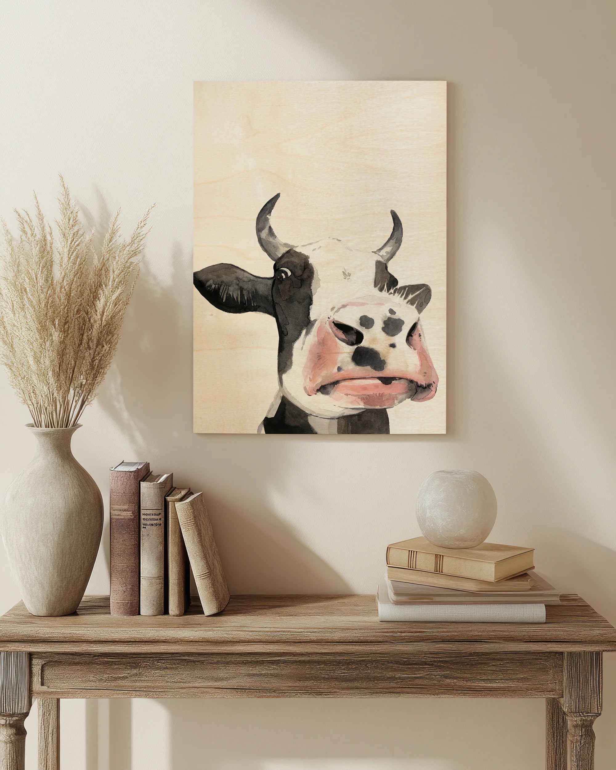 Watercolor Cow Portrait I by Grace Popp is an abstract art print that adds depth and warmth to contemporary home décor. A versatile statement piece, perfect for living spaces, bedrooms, or creative interiors. Printed on premium 12mm Italian Poplar Plywood – finished & printed in Britain.