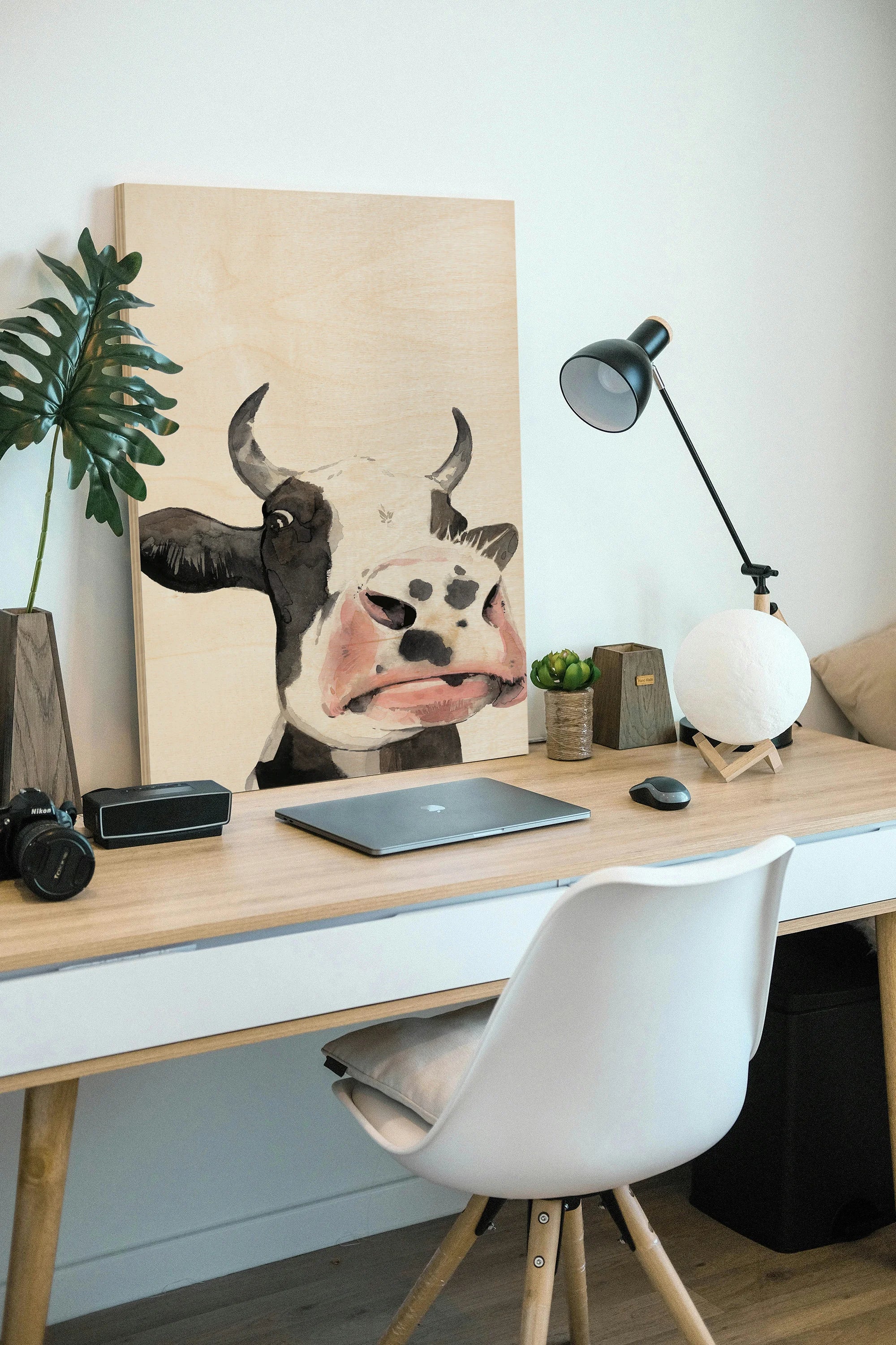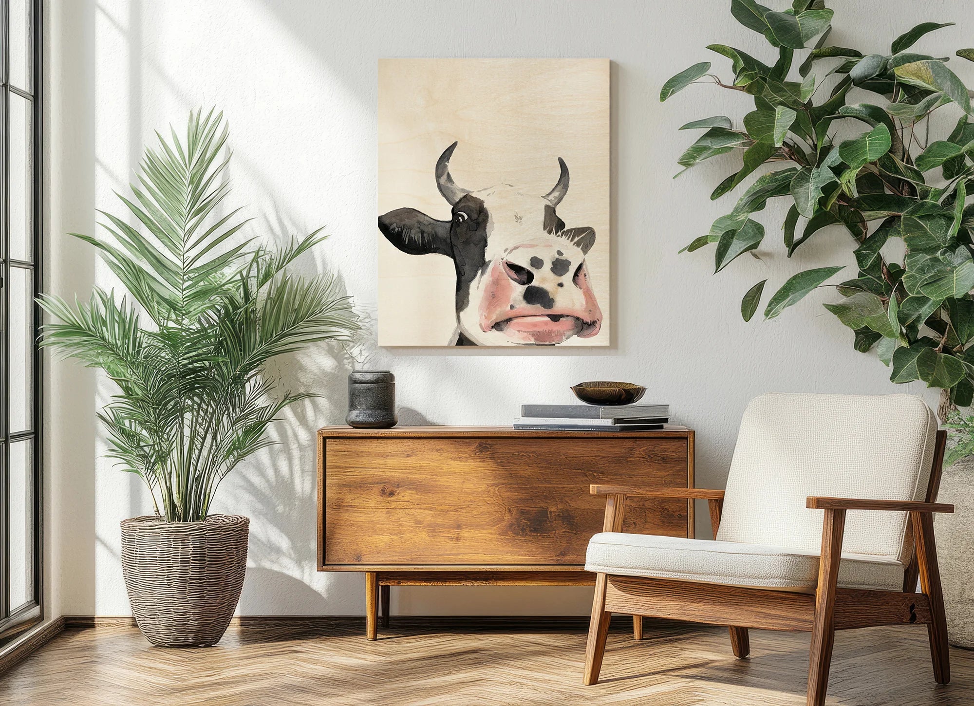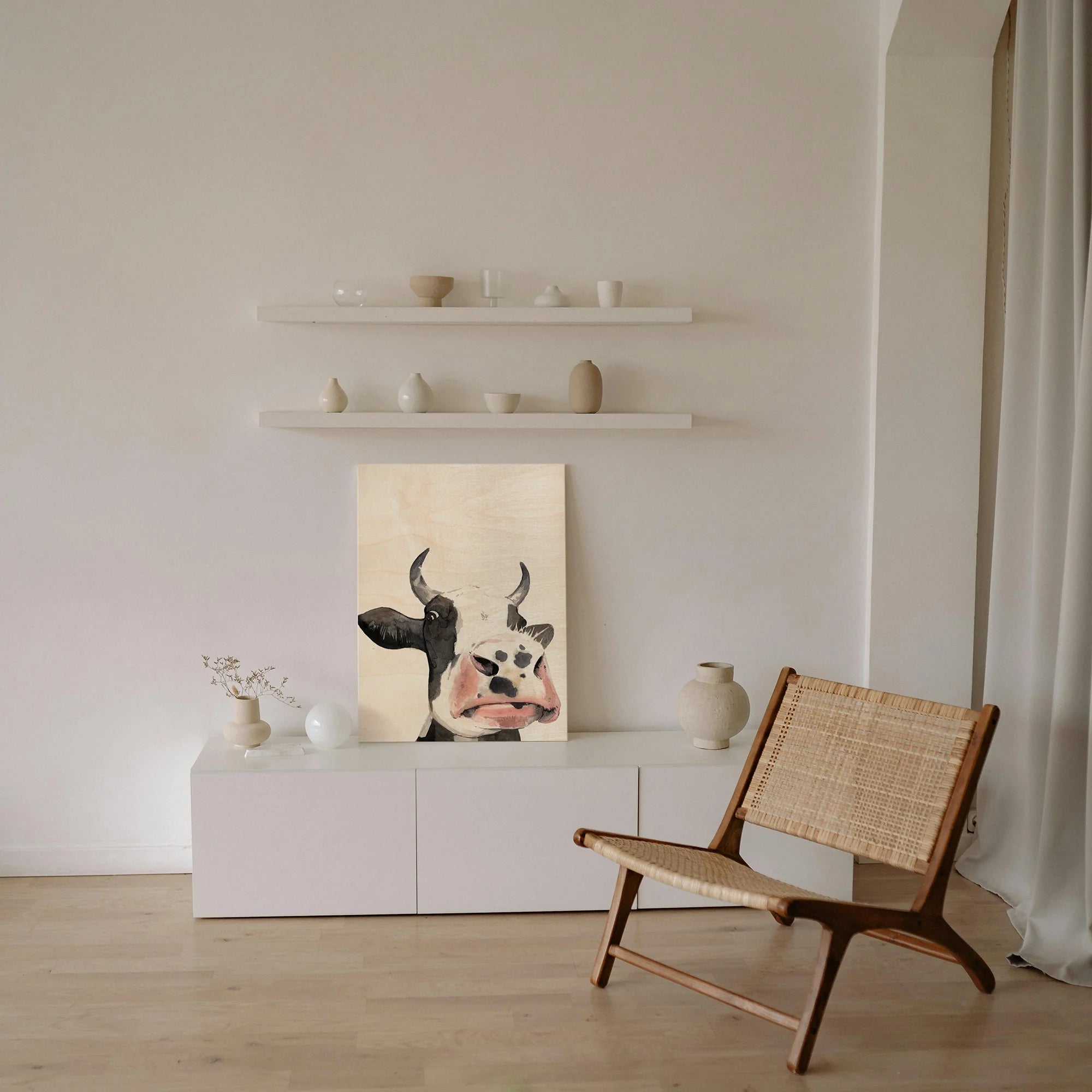 Watercolor Cow Portrait I by Grace Popp is an abstract art print that adds depth and warmth to contemporary home décor. A versatile statement piece, perfect for living spaces, bedrooms, or creative interiors. Printed on premium 12mm Italian Poplar Plywood – finished & printed in Britain.