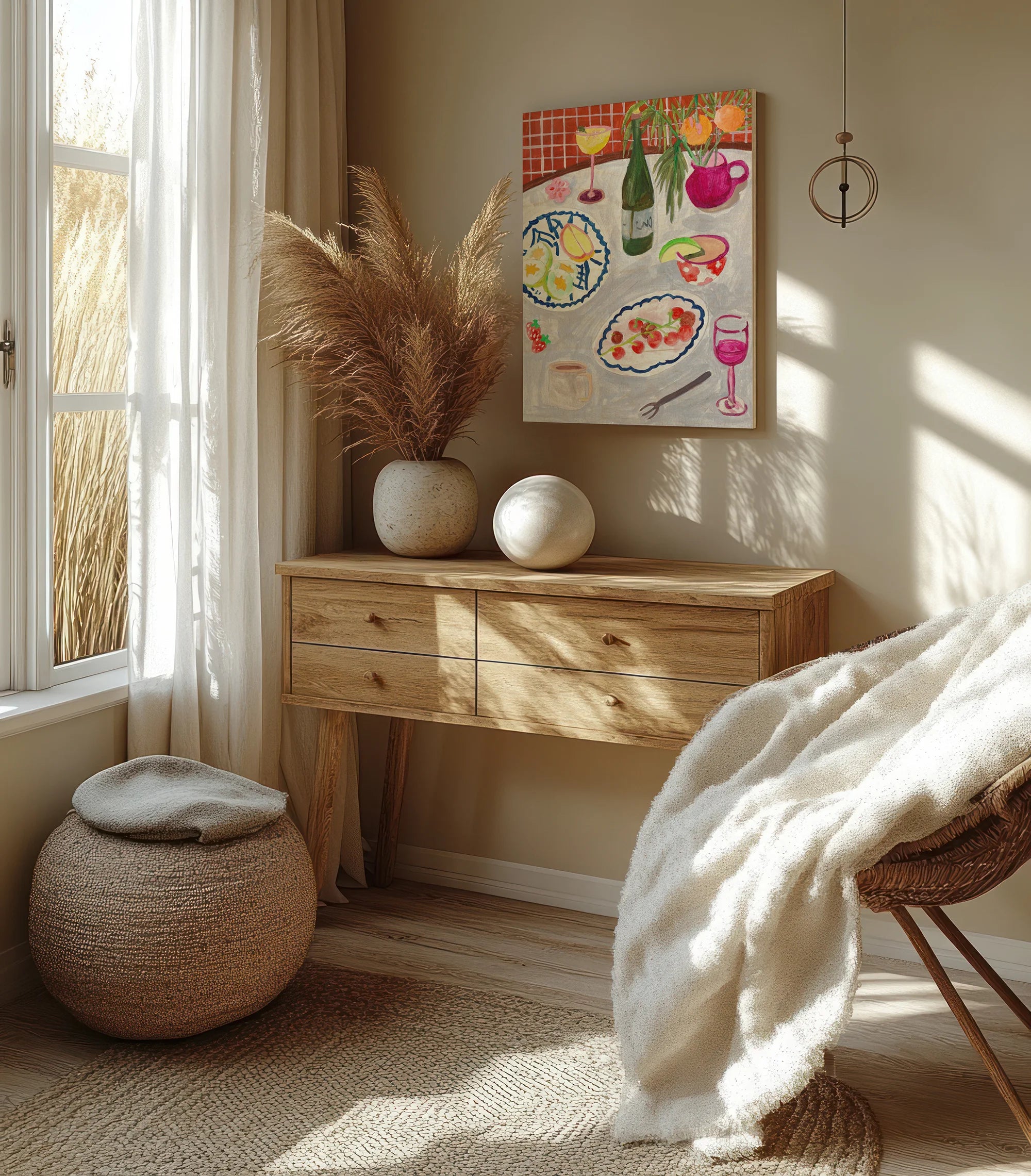 Bites and Sips II by Melissa Wang is an abstract art print that adds depth and warmth to contemporary home décor. A versatile statement piece, perfect for living spaces, bedrooms, or creative interiors. Printed on premium 12mm Italian Poplar Plywood – finished & printed in Britain.