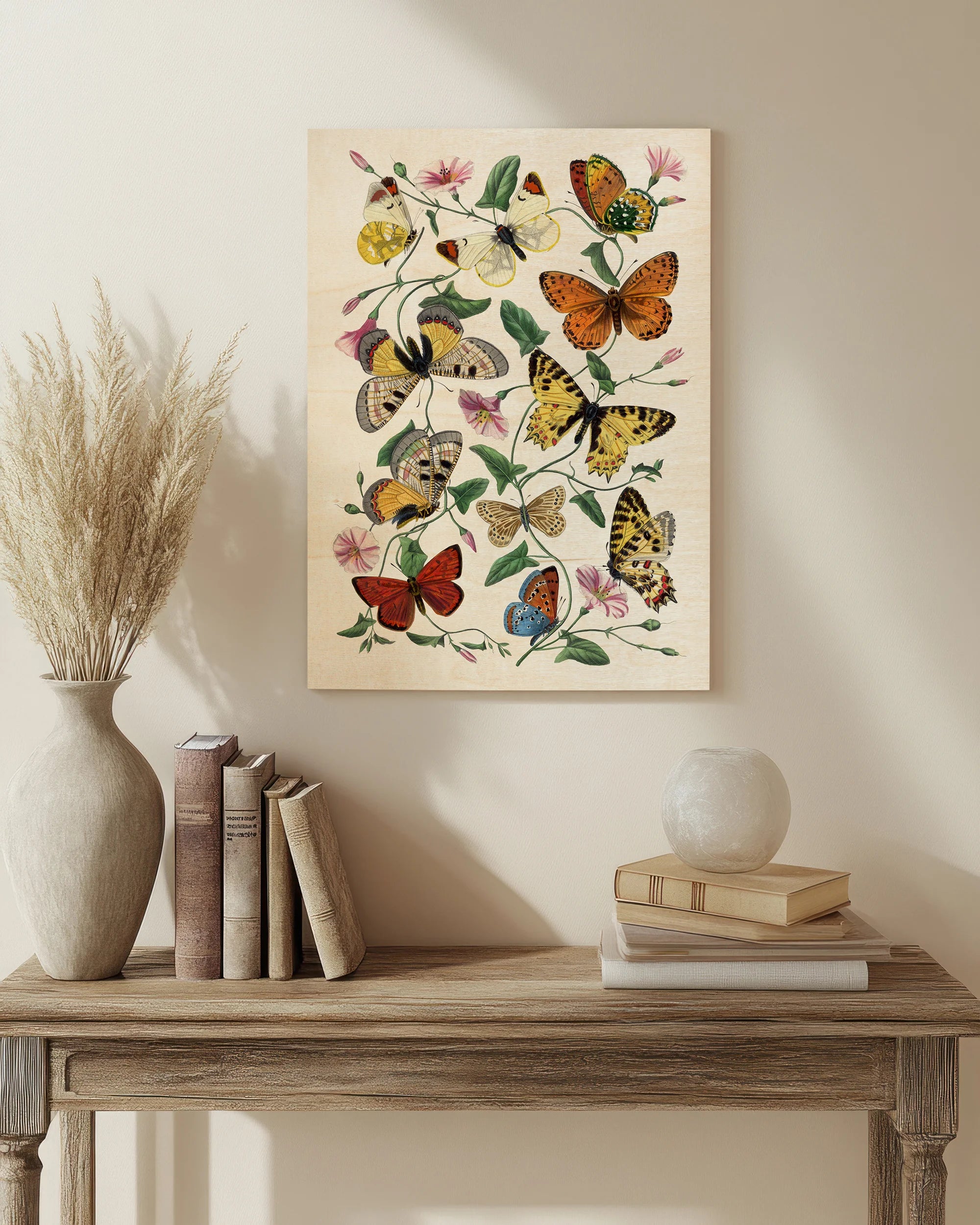 Printed directly onto premium plywood using advanced UV printing technology, this piece captures every delicate detail with vivid clarity, while the natural grain of the wood adds a unique texture that enhances the organic feel of the design. The ethereal beauty of the butterflies and moths is brought to life, while the vintage-style botanical illustrations transport you to a garden of tranquillity.