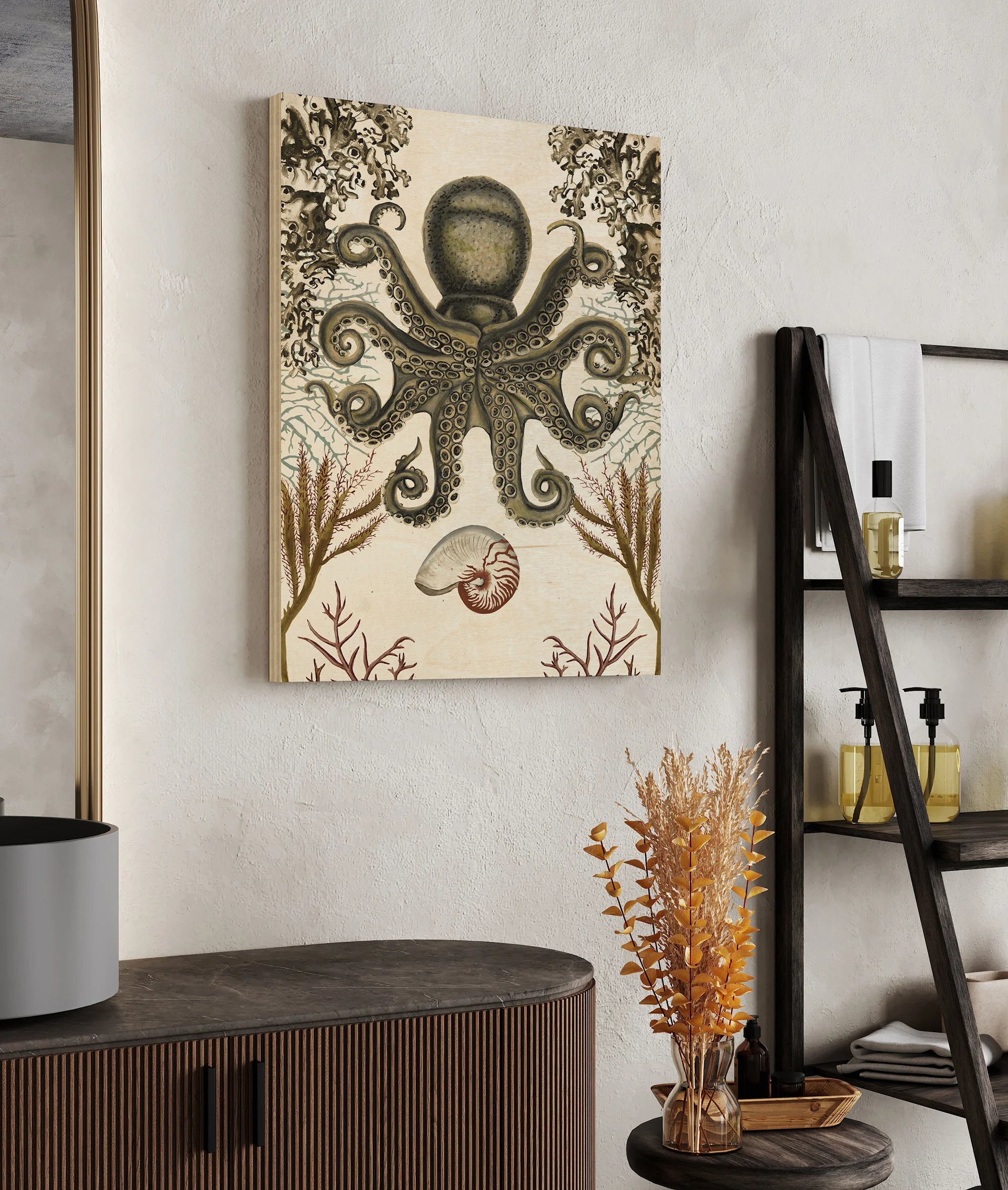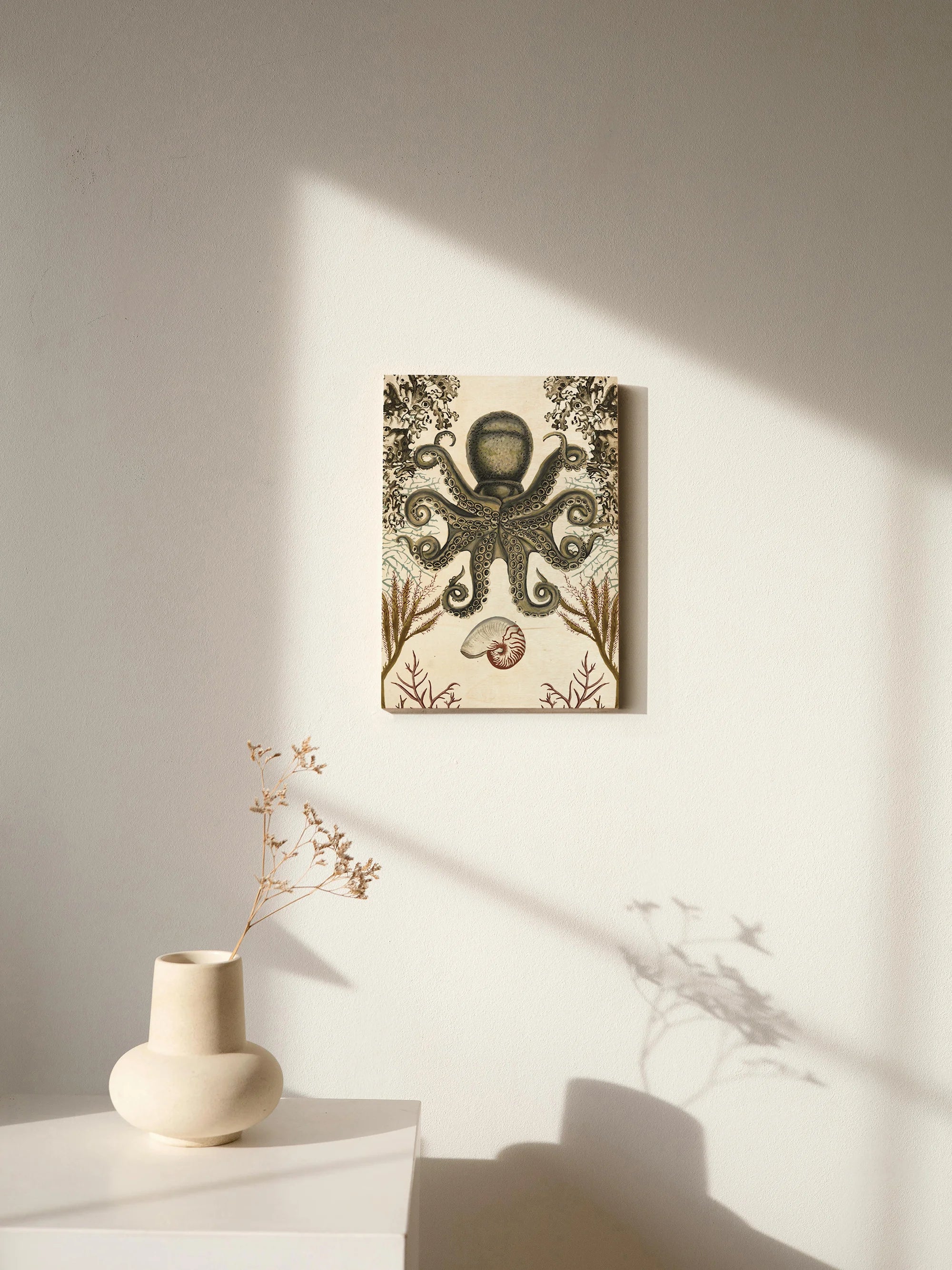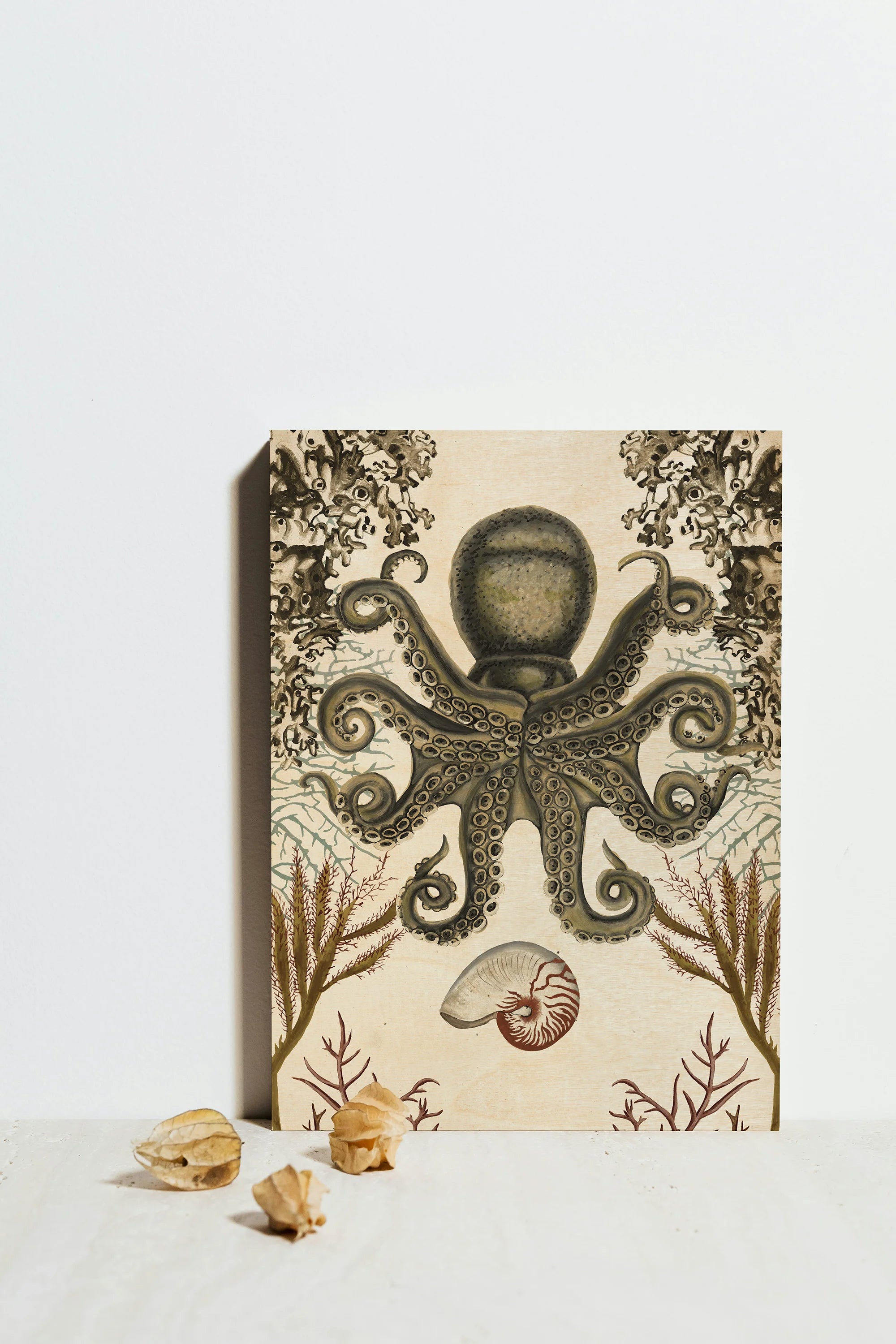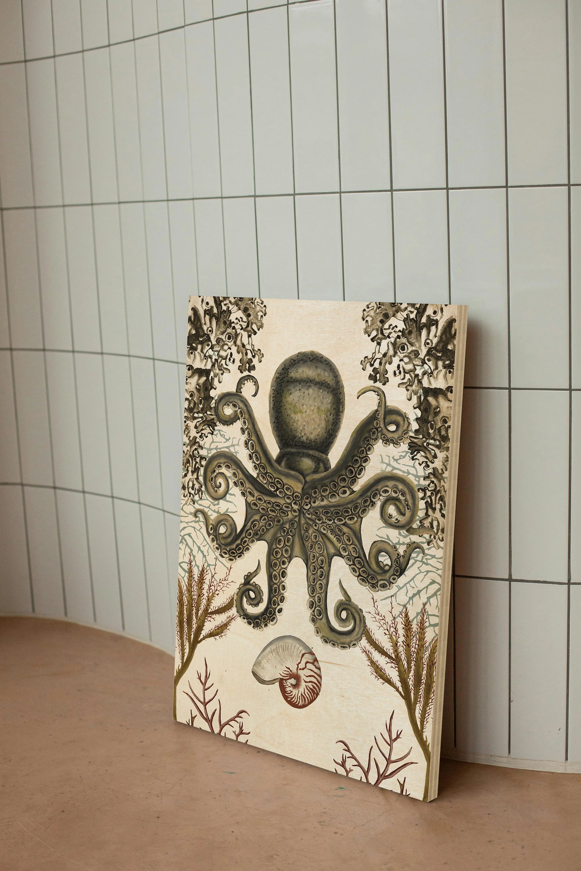 Antiquarian Menagerie - Octopus by Naomi McCavitt is an abstract art print that adds depth and warmth to contemporary home décor. A versatile statement piece, perfect for living spaces, bedrooms, or creative interiors. Printed on premium 12mm Italian Poplar Plywood – finished & printed in Britain.