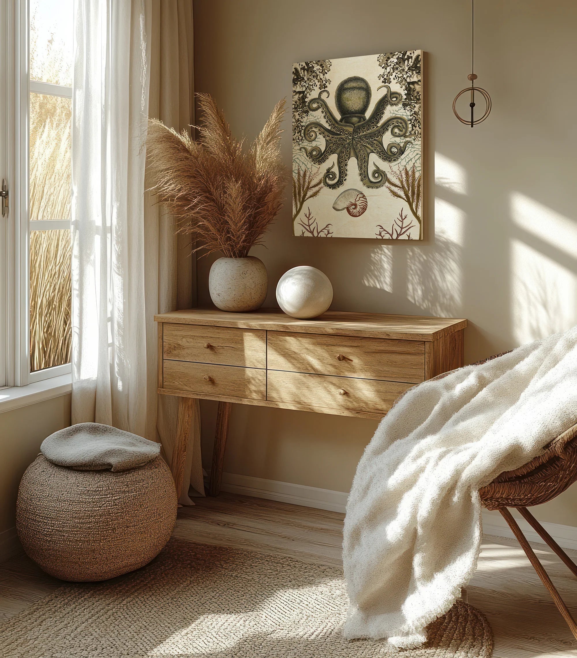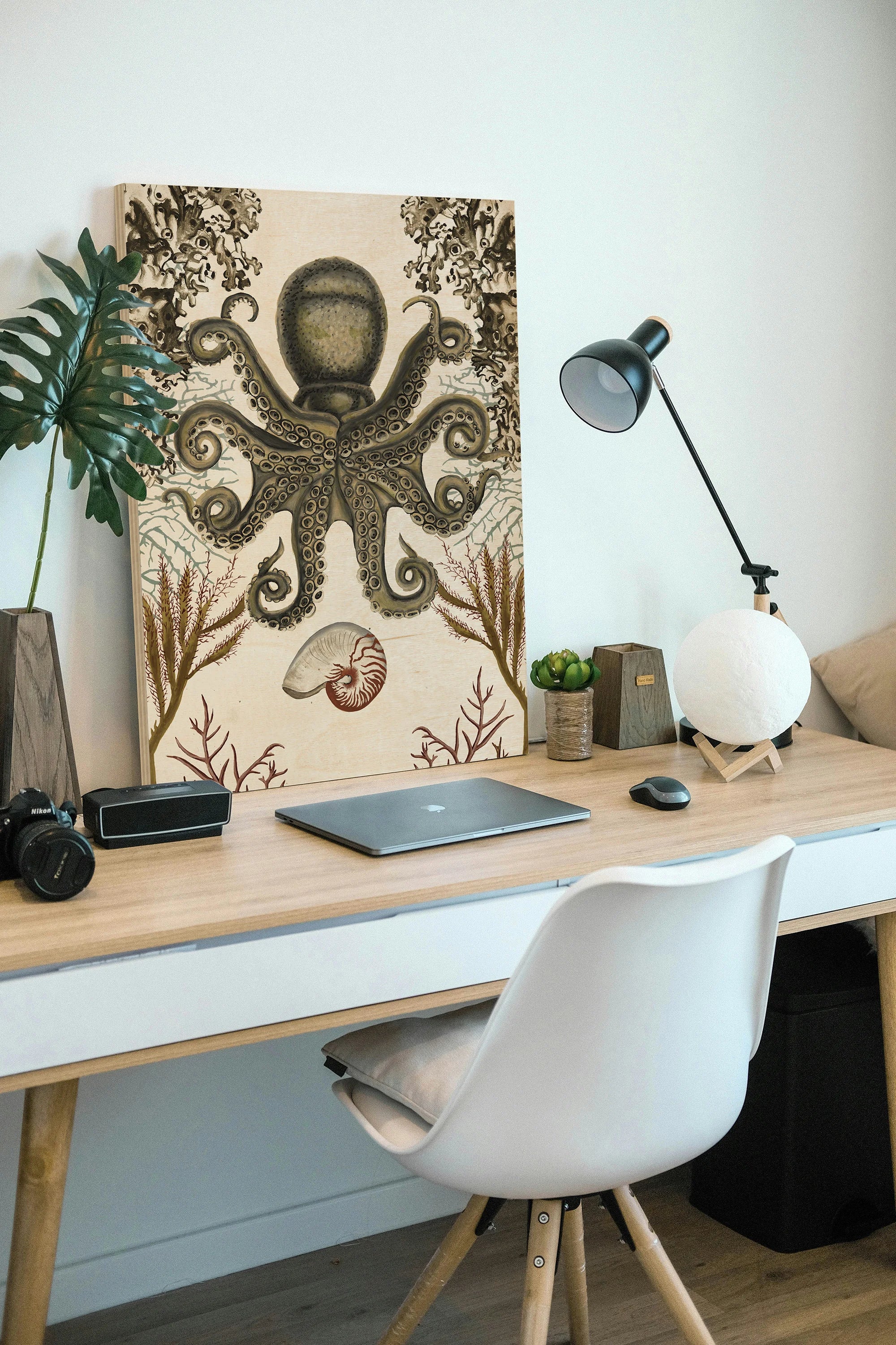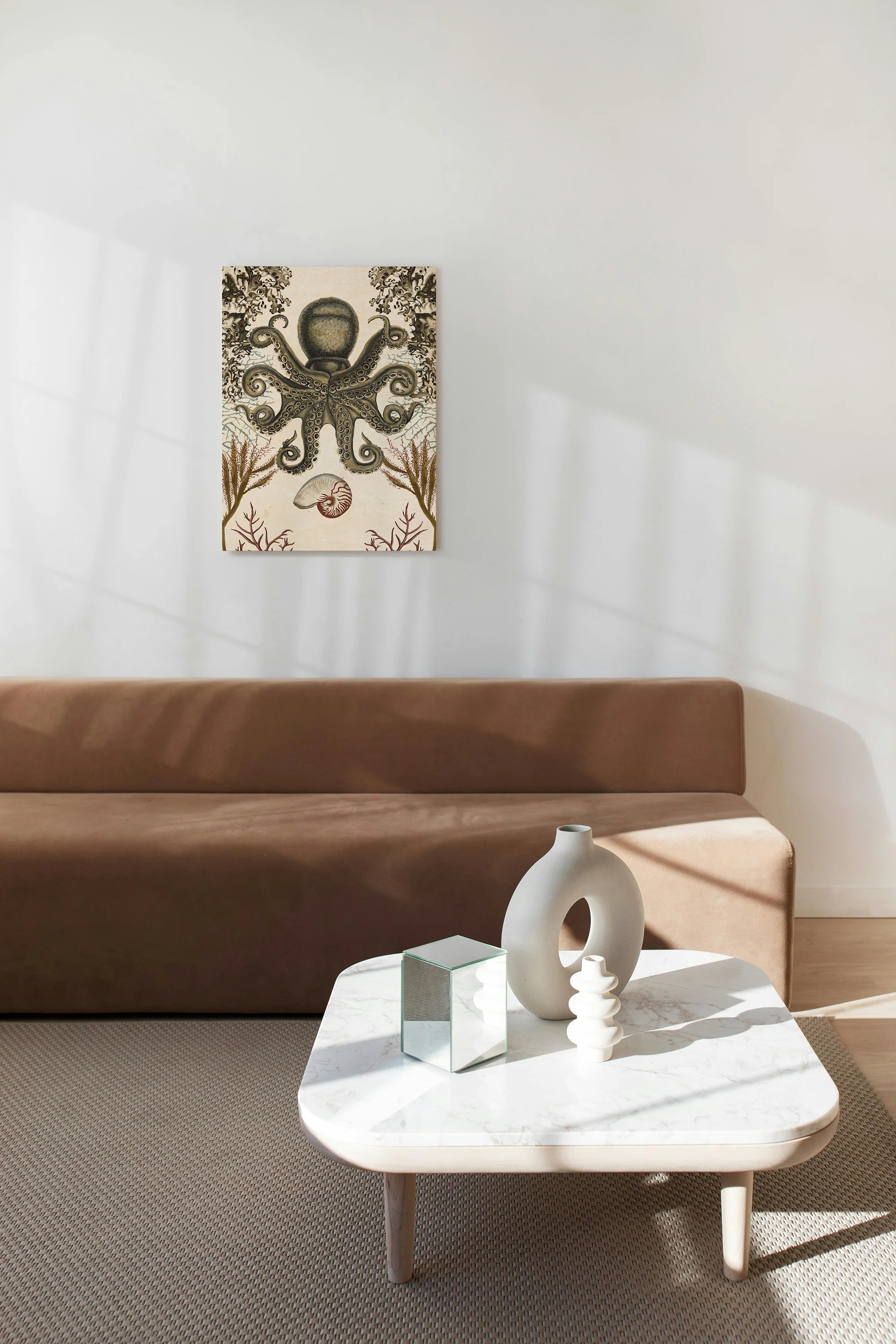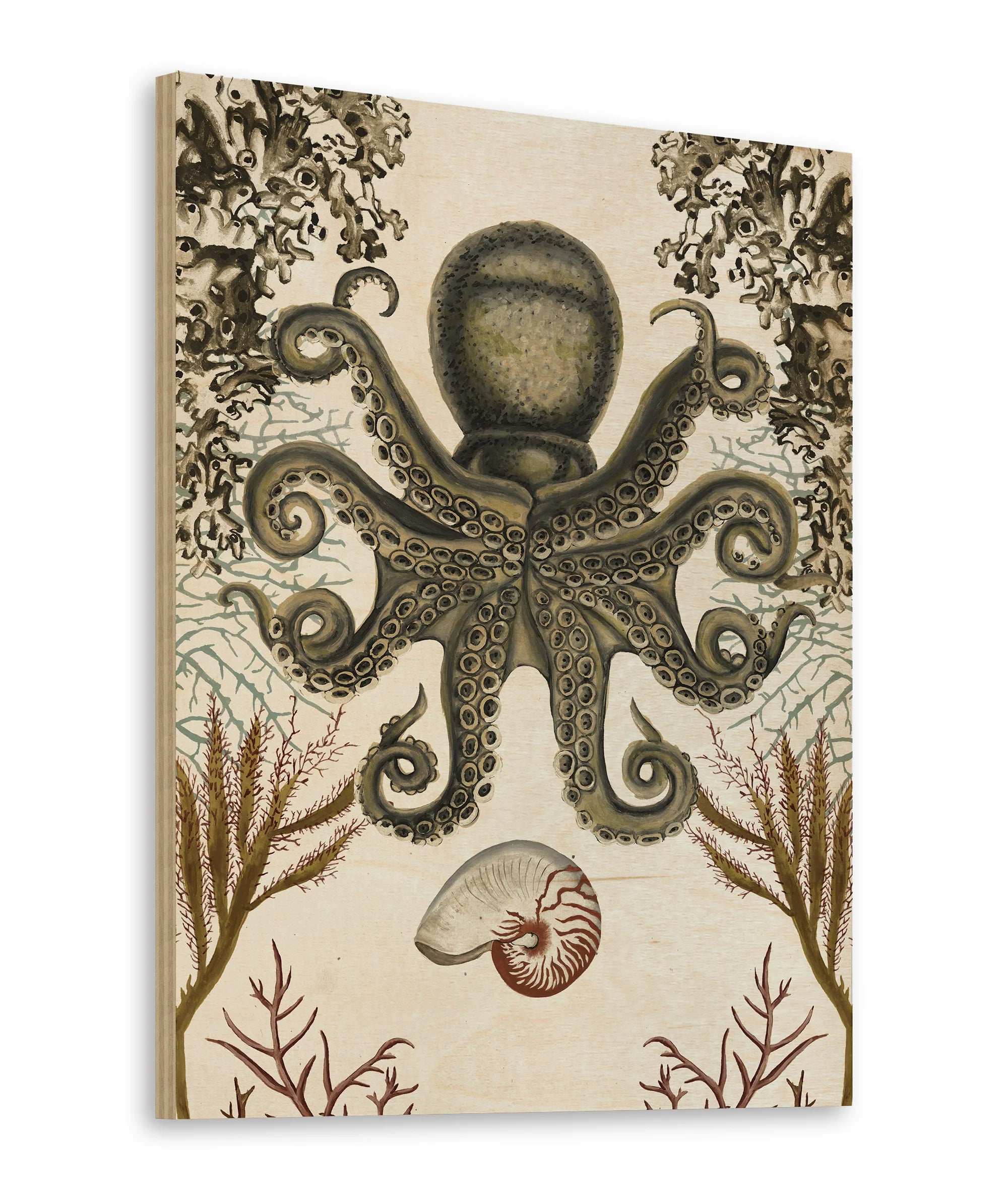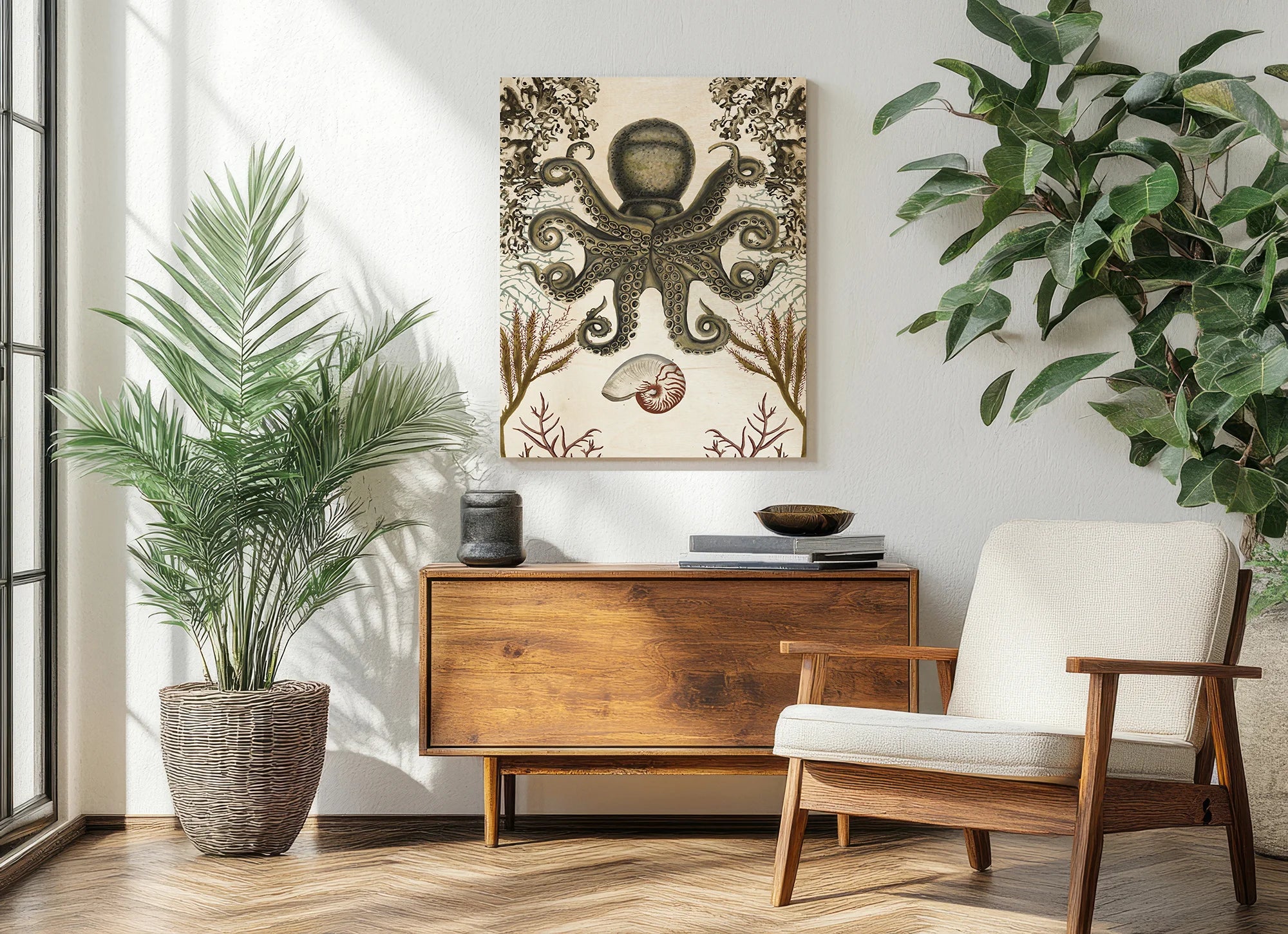 Antiquarian Menagerie - Octopus by Naomi McCavitt is an abstract art print that adds depth and warmth to contemporary home décor. A versatile statement piece, perfect for living spaces, bedrooms, or creative interiors. Printed on premium 12mm Italian Poplar Plywood – finished & printed in Britain.