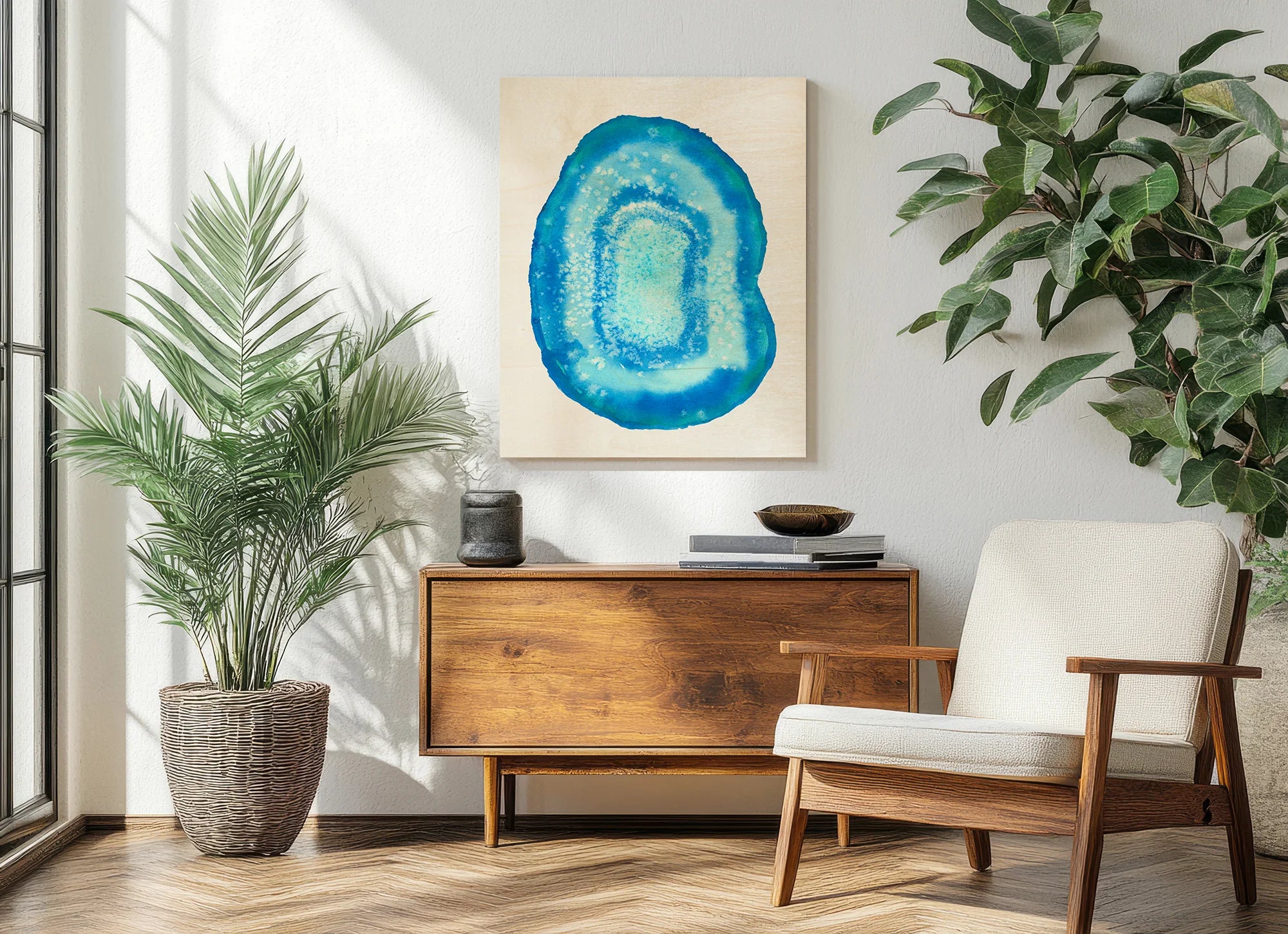 Radiant Geode III by Naomi McCavitt is an abstract art print that adds depth and warmth to contemporary home décor. A versatile statement piece, perfect for living spaces, bedrooms, or creative interiors. Printed on premium 12mm Italian Poplar Plywood – finished & printed in Britain.