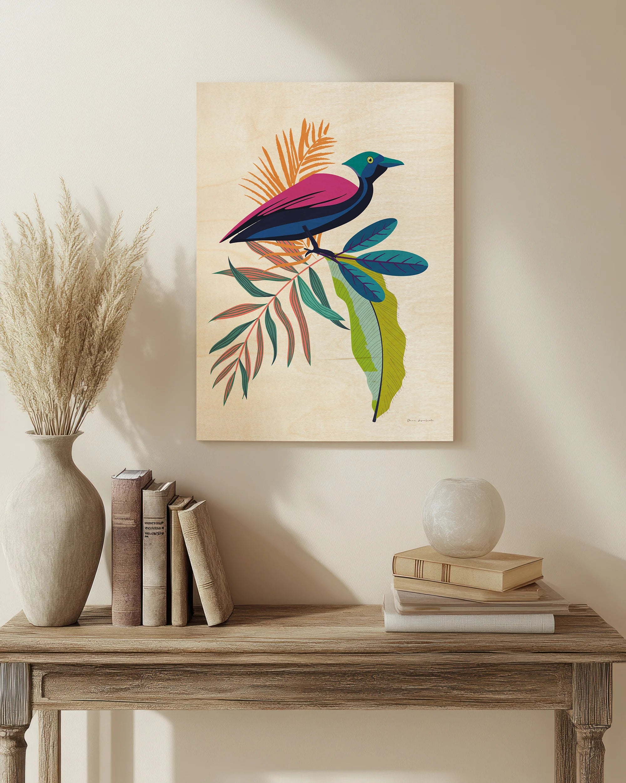 Exotic Birds I Print by Omar Escalante is an abstract art print that adds depth and warmth to contemporary home décor. A versatile statement piece, perfect for living spaces, bedrooms, or creative interiors. Printed on premium 12mm Italian Poplar Plywood – finished & printed in Britain.