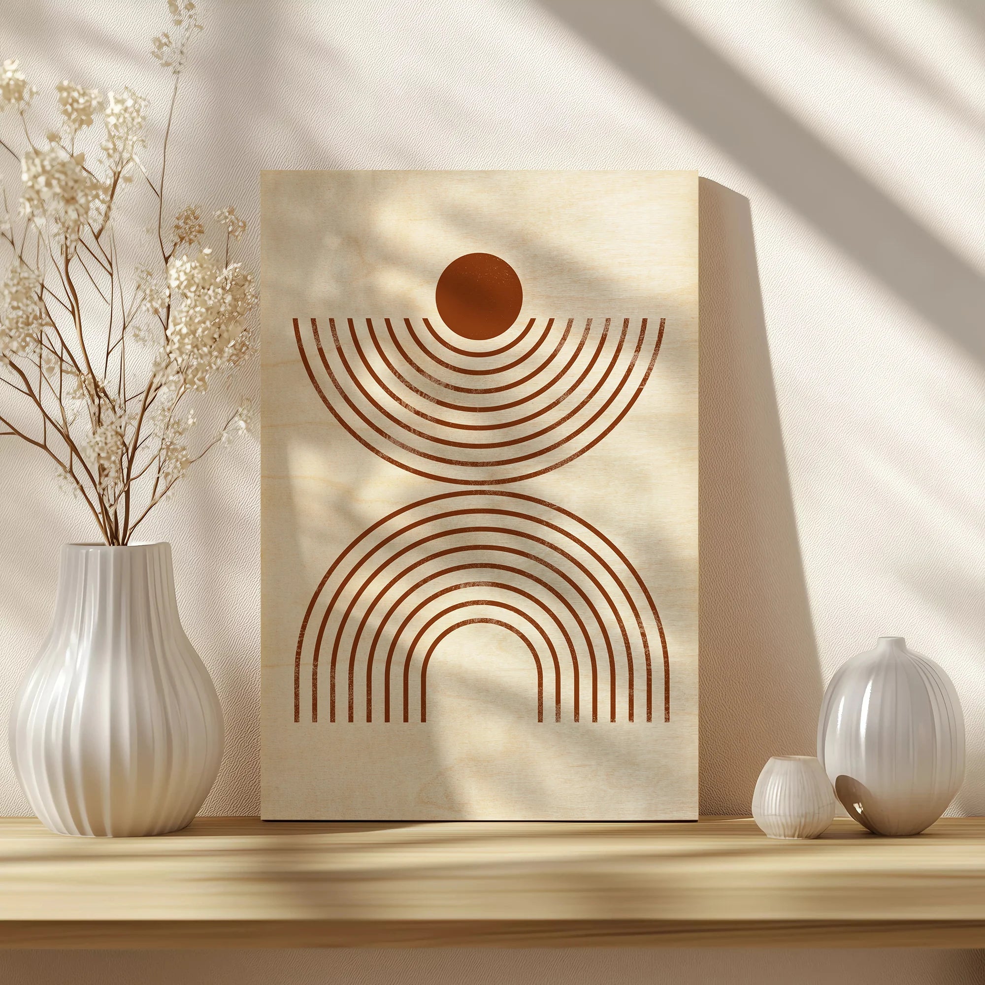 Arches and Orbs II by Victoria Barnes is an abstract art print that adds depth and warmth to contemporary home décor. A versatile statement piece, perfect for living spaces, bedrooms, or creative interiors. Printed on premium 12mm Italian Poplar Plywood – finished & printed in Britain.