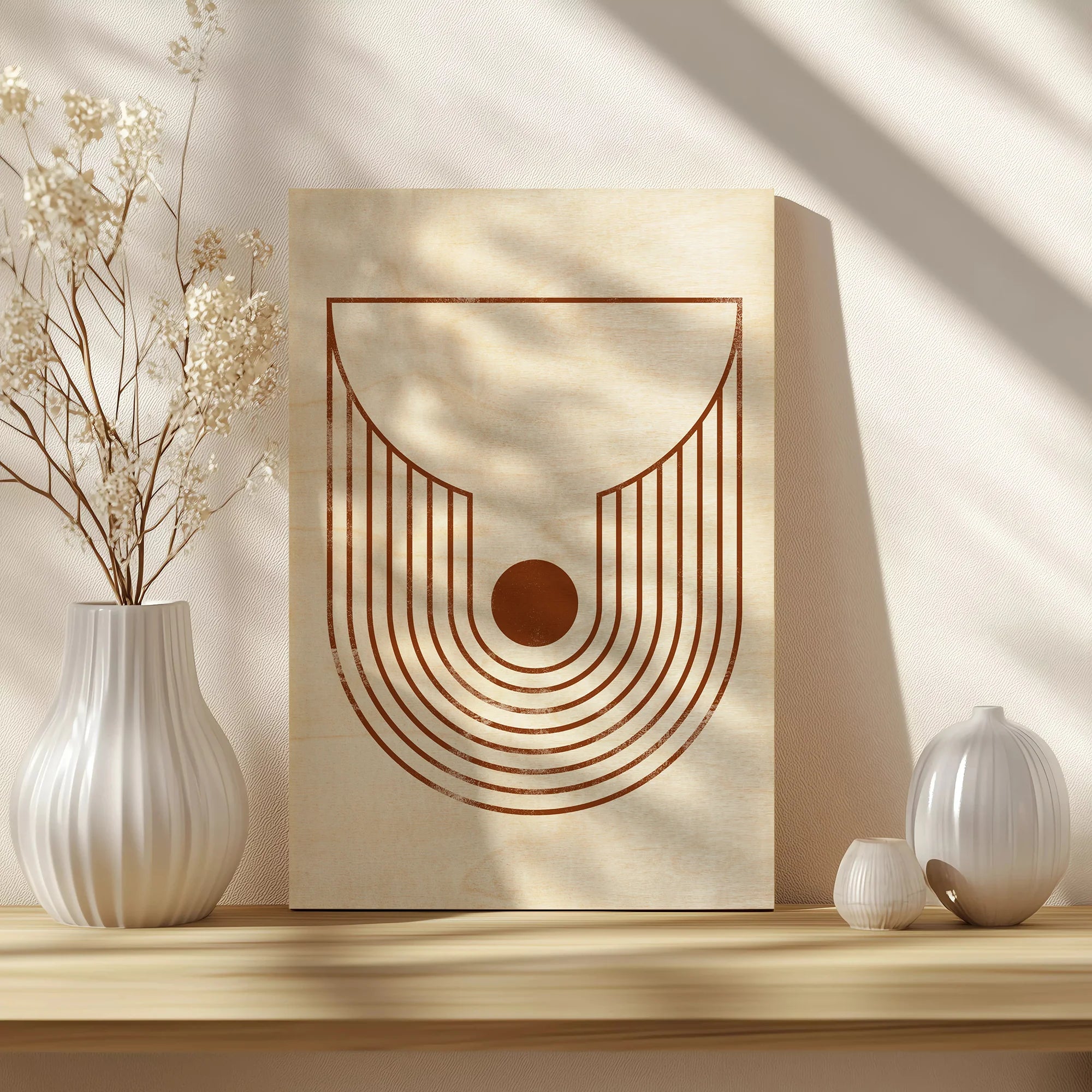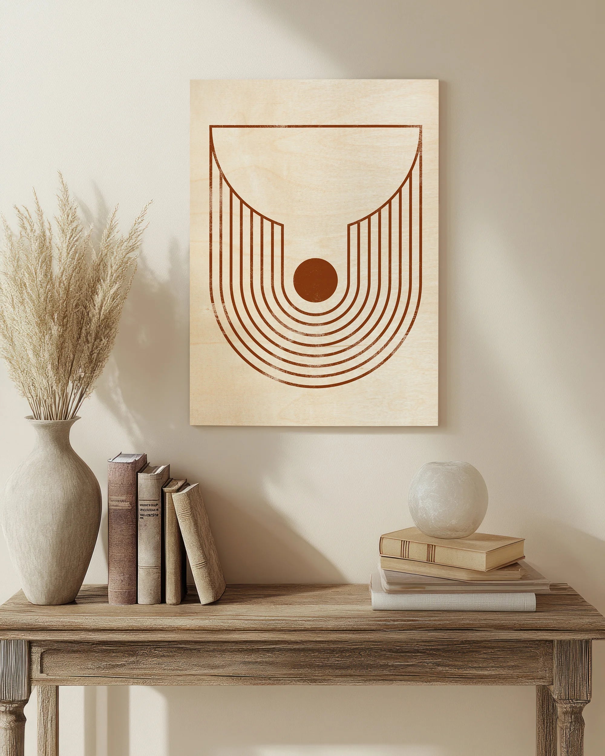 Arches and Orbs IV by Victoria Barnes is an abstract art print that adds depth and warmth to contemporary home décor. A versatile statement piece, perfect for living spaces, bedrooms, or creative interiors. Printed on premium 12mm Italian Poplar Plywood – finished & printed in Britain.