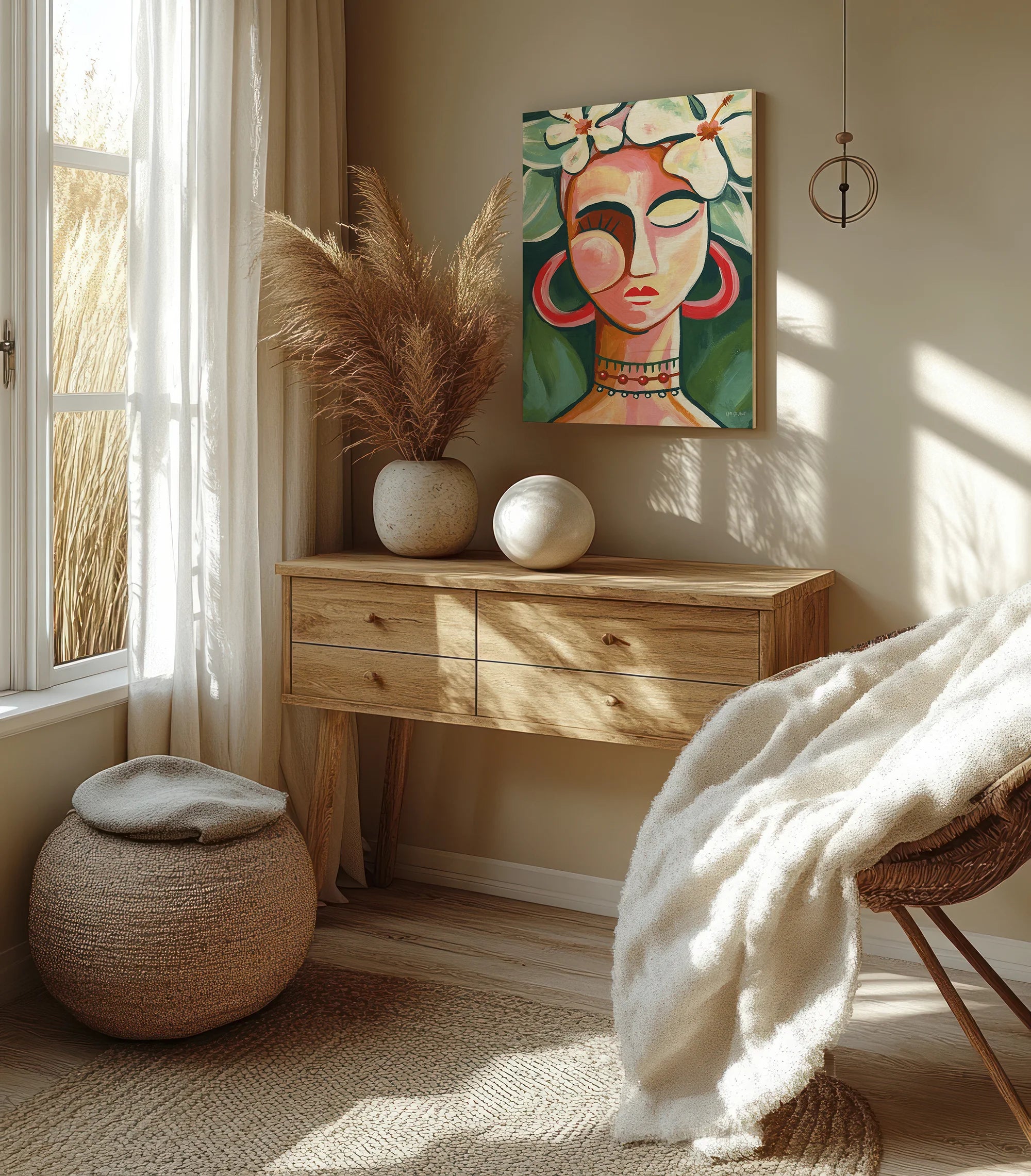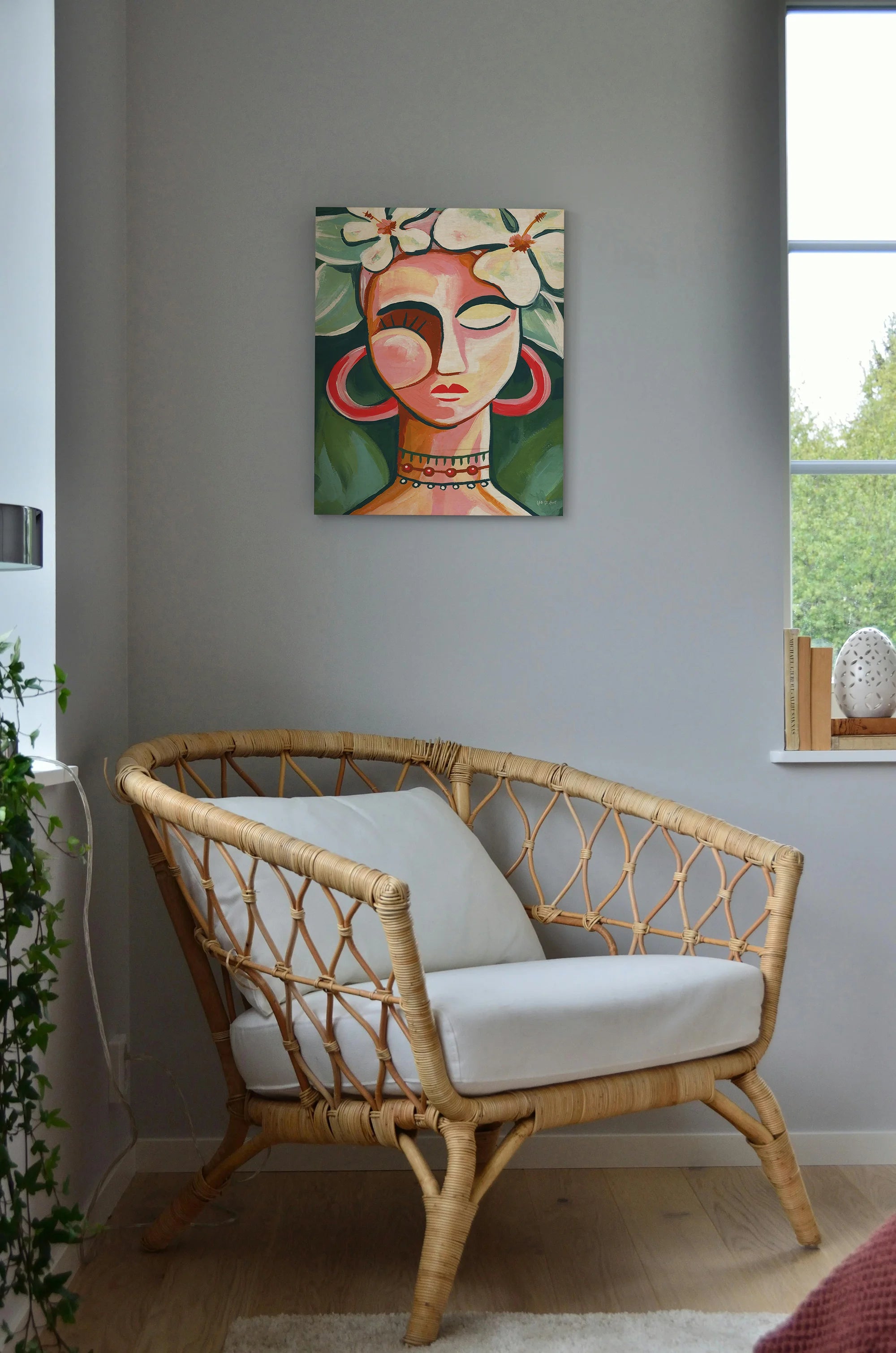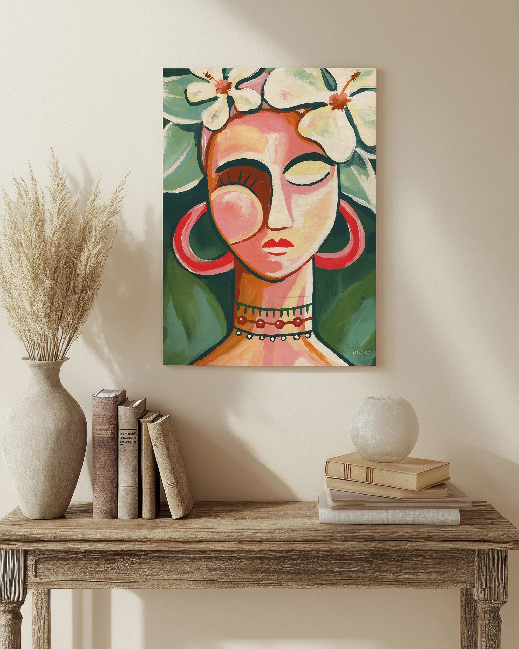 Portrait in the Tropics Print by Yvette St. Amant is an abstract art print that adds depth and warmth to contemporary home décor. A versatile statement piece, perfect for living spaces, bedrooms, or creative interiors. Printed on premium 12mm Italian Poplar Plywood – finished & printed in Britain.