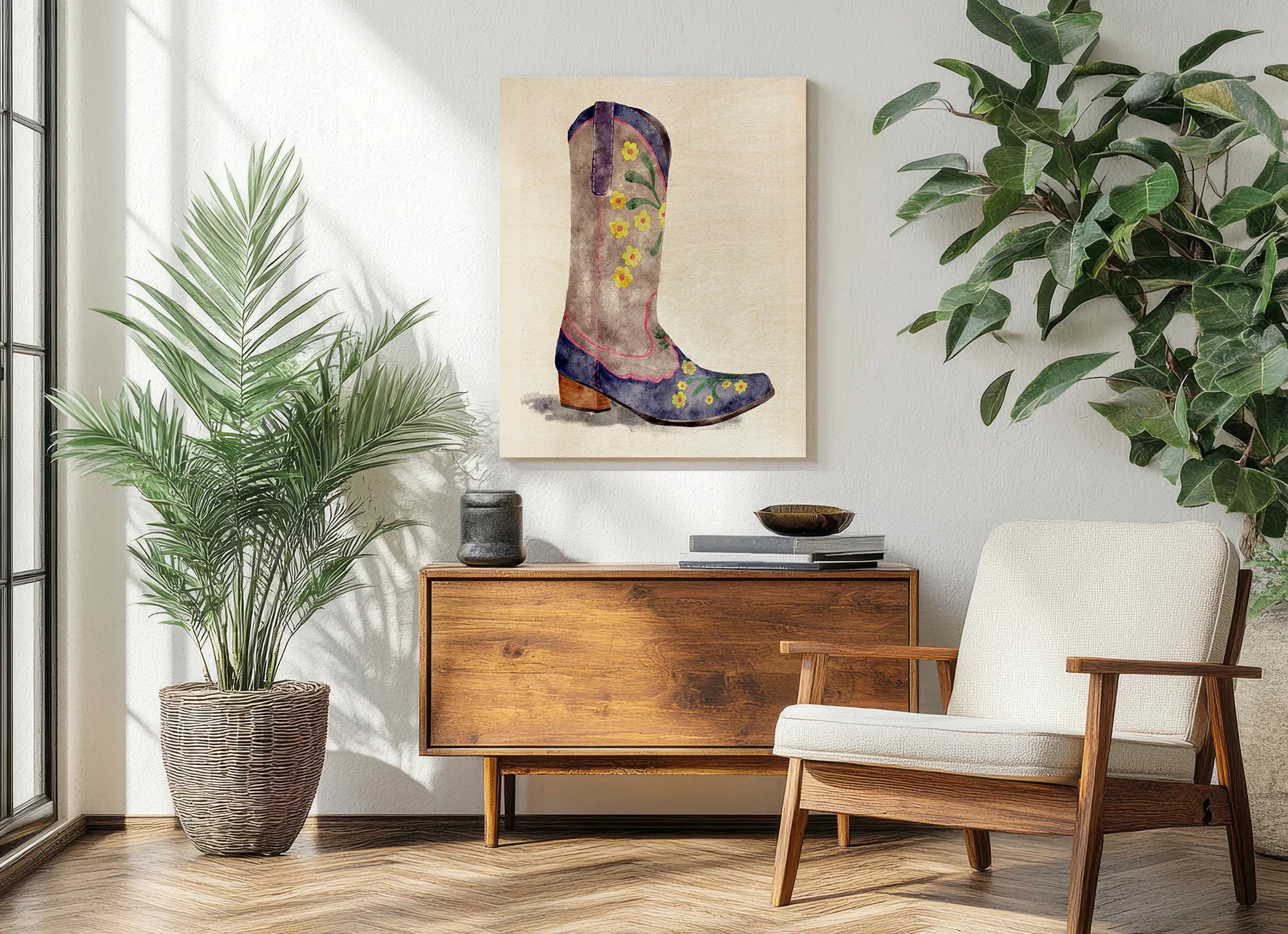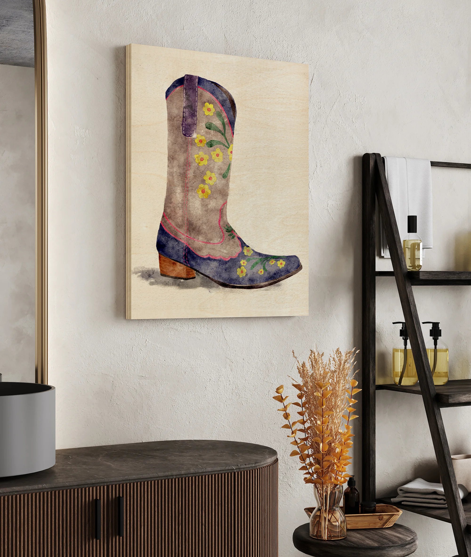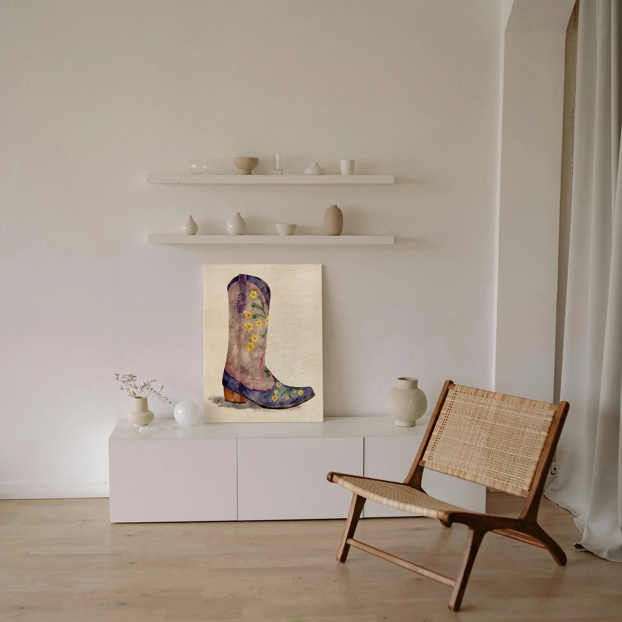 Cowgirl Boot I by Regina Moore is an abstract art print that adds depth and warmth to contemporary home décor. A versatile statement piece, perfect for living spaces, bedrooms, or creative interiors. Printed on premium 12mm Italian Poplar Plywood – finished & printed in Britain.