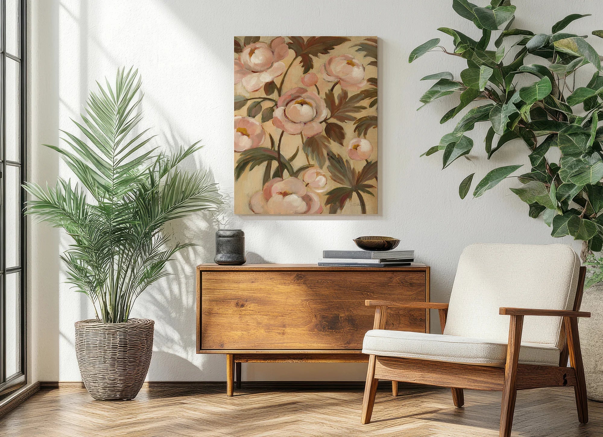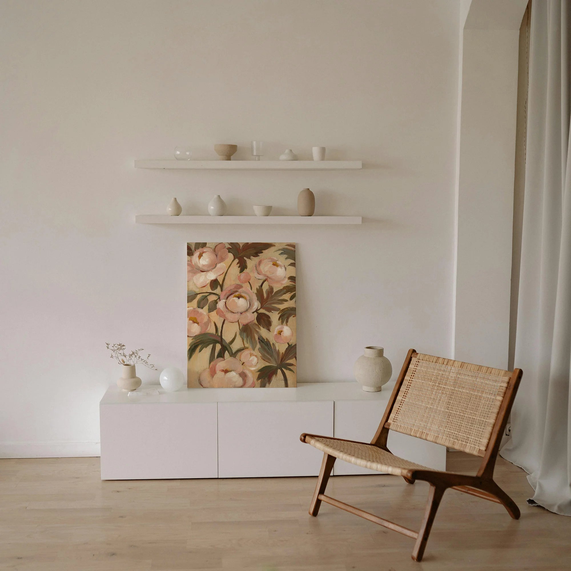 Garden Peonies I Print by Silvia Vassileva is an abstract art print that adds depth and warmth to contemporary home décor. A versatile statement piece, perfect for living spaces, bedrooms, or creative interiors. Printed on premium 12mm Italian Poplar Plywood – finished & printed in Britain.